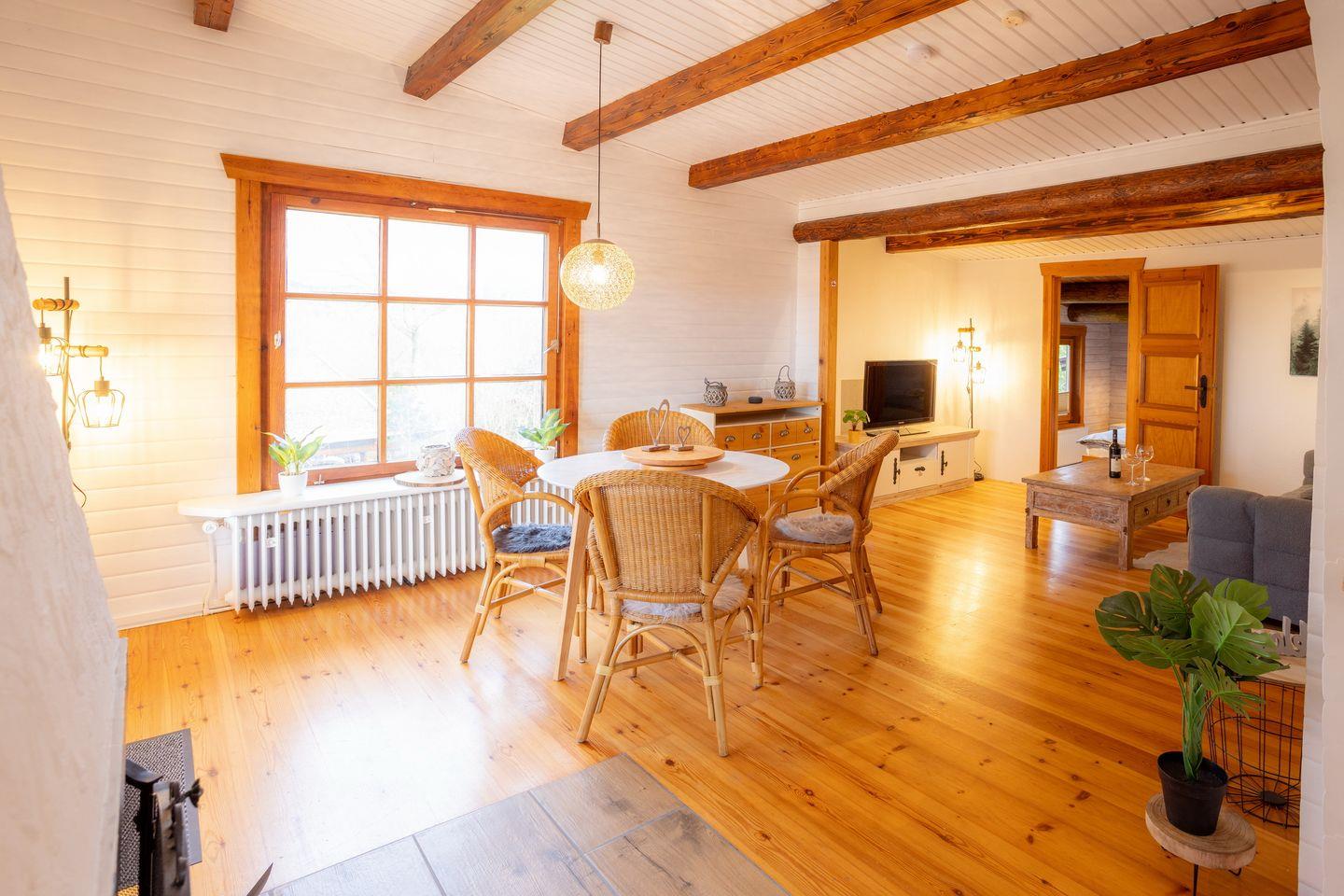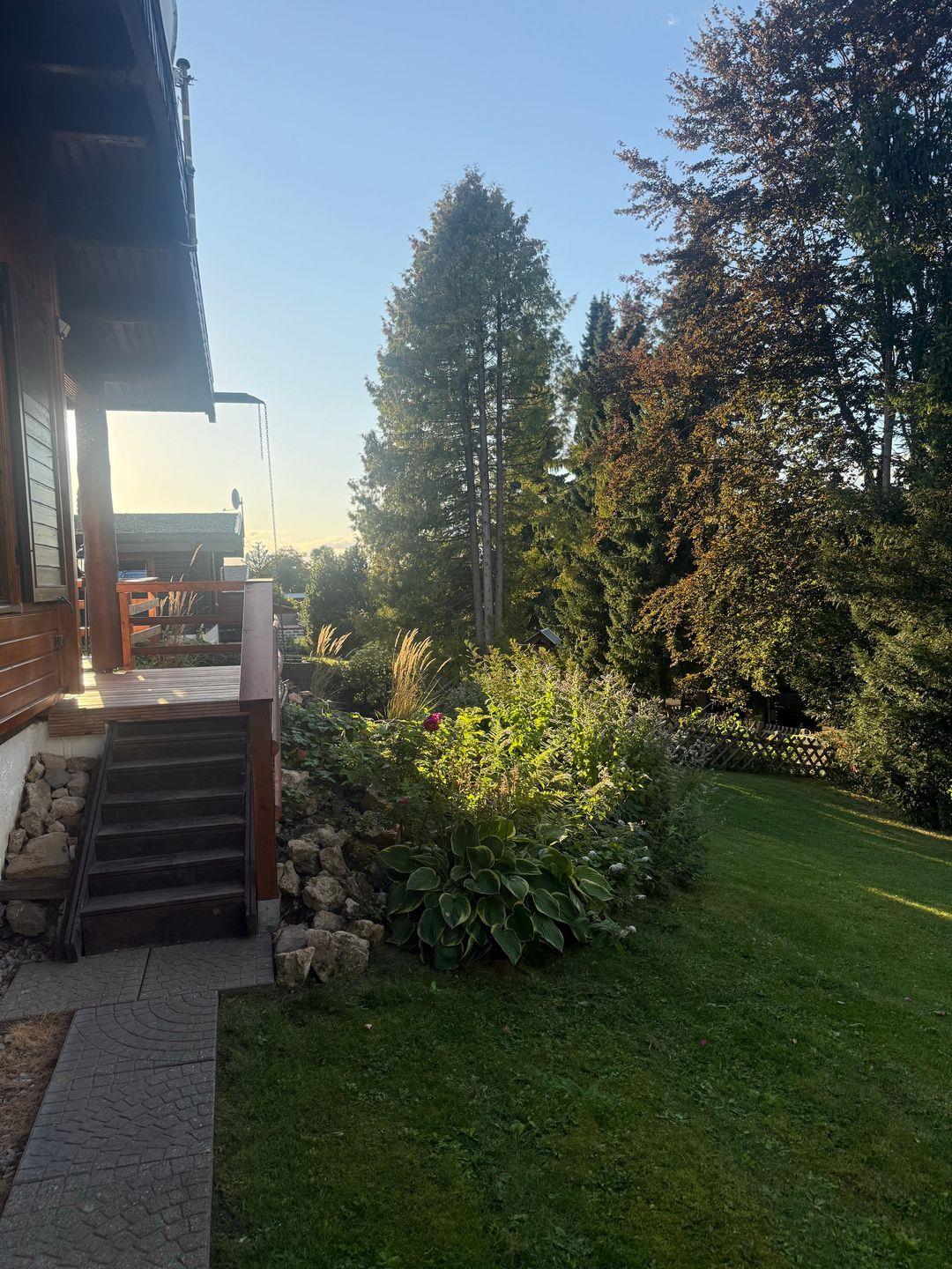 Auch das Haustier ist herzliche Willkommen. Die offene Kamine im Wohnzimmer und auf der großen neuen Holzterrasse laden zu jeder Jahreszeit zu gemütlichen Abenden ein. Wer etwas Wellness möchte, der nutzt die eigene Sauna im Untergeschoß,