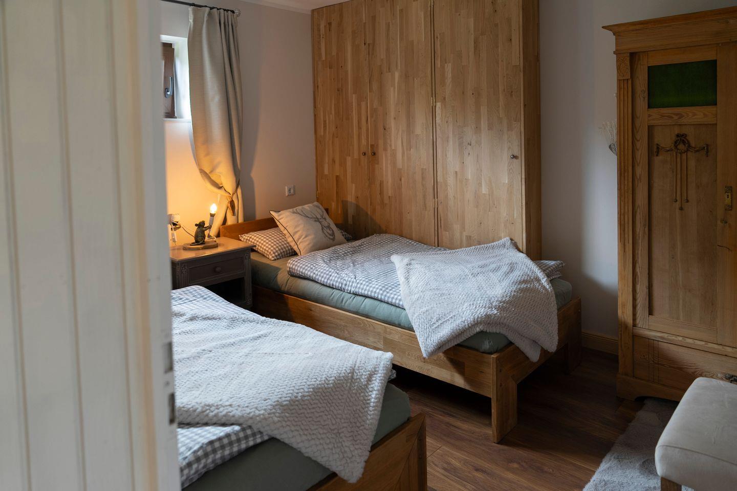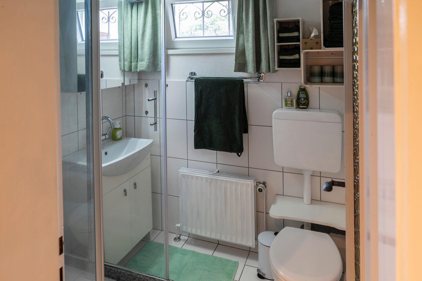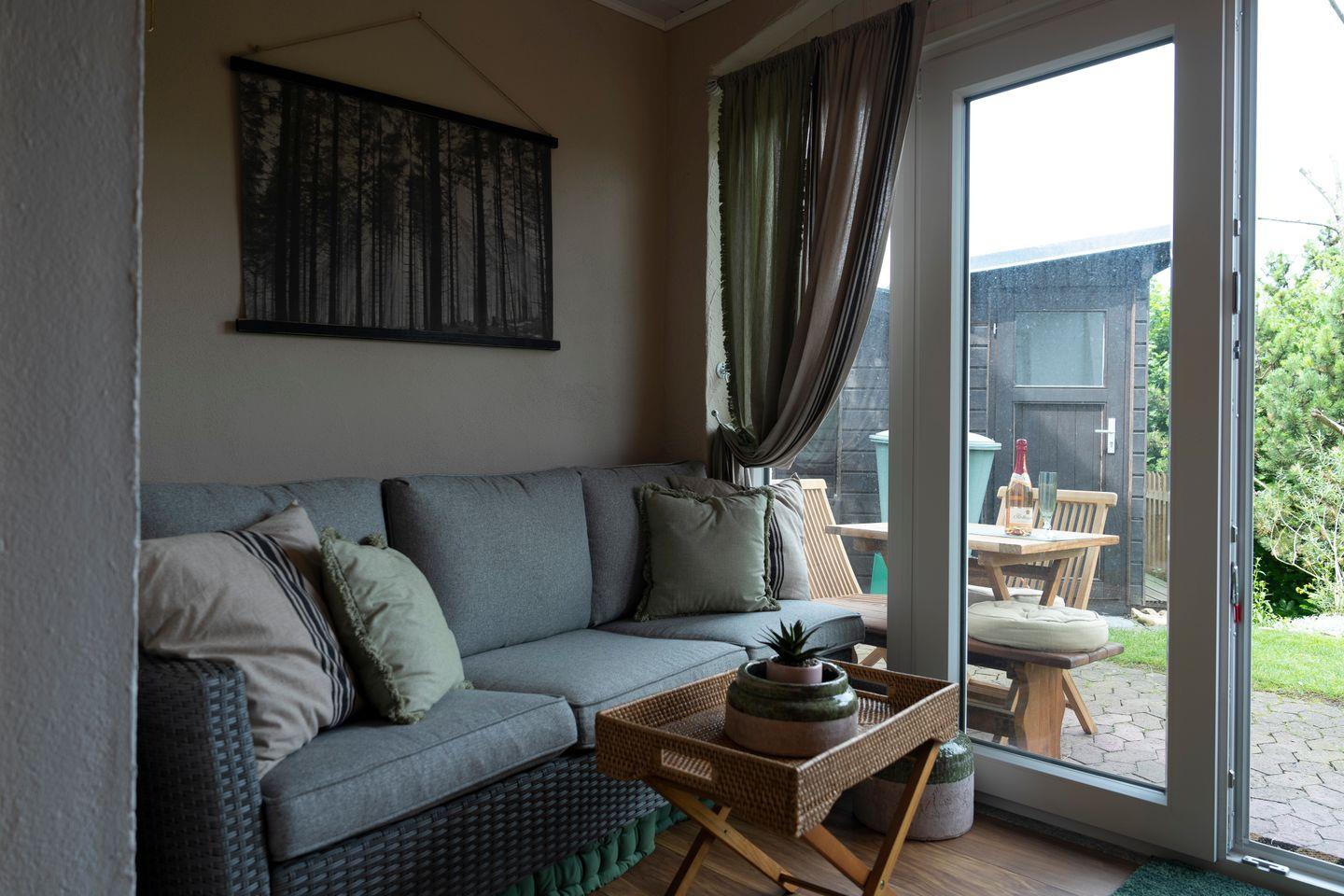 Alle drei Schlafzimmer befinden sich im unteren Bereich des Hauses. Du erreichst sie über eine Außentreppe!!! und einen separaten Eingang. Dort findest Du ein Schlafzimmer mit Doppelbett, eines mit zwei Einzelbetten sowie eines mit Etagenbett und ein weiteres Duschbad. Zusätzlich gibt es eine kleine Küche für den ersten Morgenkaffee oder gesellige Abendrunden; hier befindet sich auch der Waschtrockner. Ein 2. Wohnzimmer mit Kicker, Bar, Sofa, TV, Musikbox und vielen Gesellschaftsspielen läd zum Chillen oder gemeinsamen Spaß für Klein und Groß ein. Von dort geht es in den Wintergarten zum Lesen mit einer Tasse Tee.