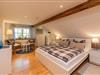 Das historische Ambiente des Hauses wird perfekt ergänzt durch den modernen Komfort der Wohnung. Zwei komfortable Schlafzimmer mit großzügigen Doppelbetten sorgen für erholsame Nächte. Das großzügige Tageslichtbad bietet eine Dusche, eine Badewanne und ein WC – ideal für einen entspannten Start oder ein erholsames Ende des Tages.