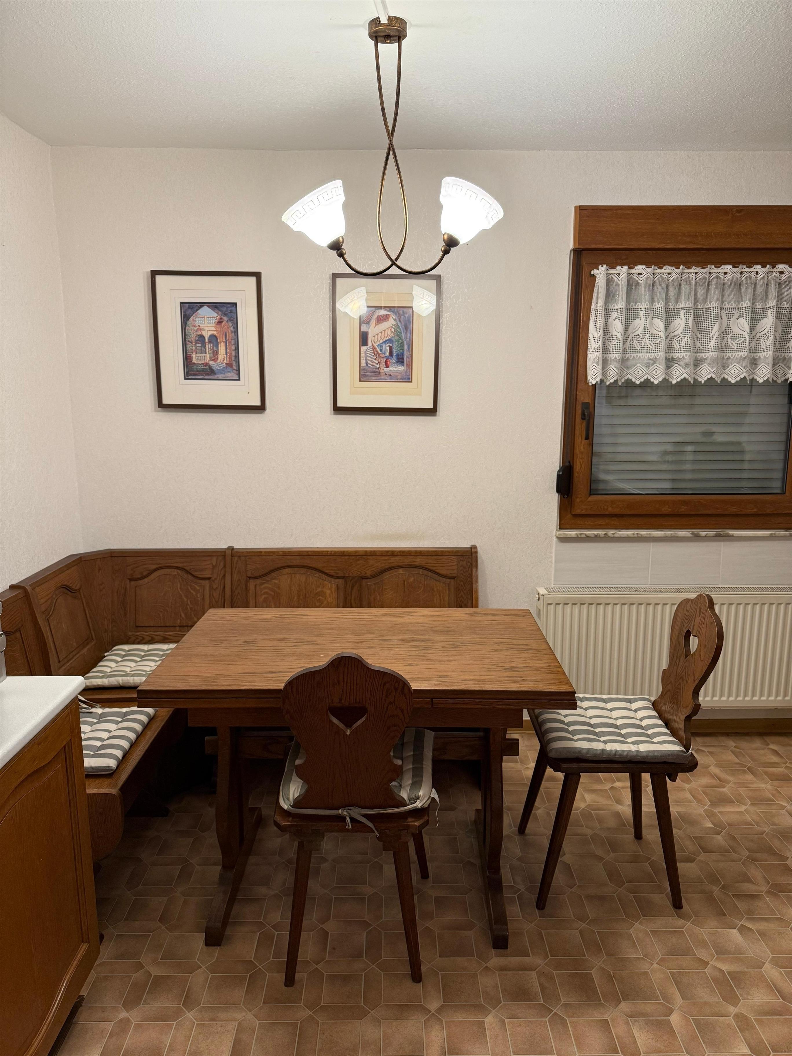 Die Küche war wirklich super gut ausgestattet und ließ keine Wünsche offen. Von modernen Küchenutensilien bis hin zu einer Vielzahl von Geschirr war alles vorhanden, was man für die Zubereitung von Mahlzeiten benötigt. Die gemütliche, aber ältere Ausstattung verlieh der Küche einen besonderen Charme und machte das Kochen zu einem Vergnügen.