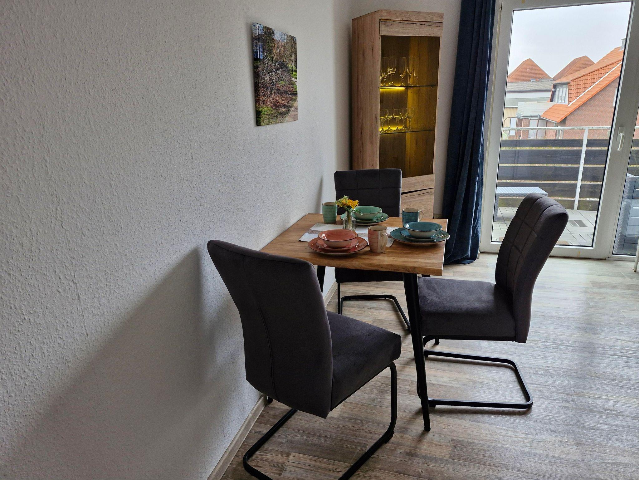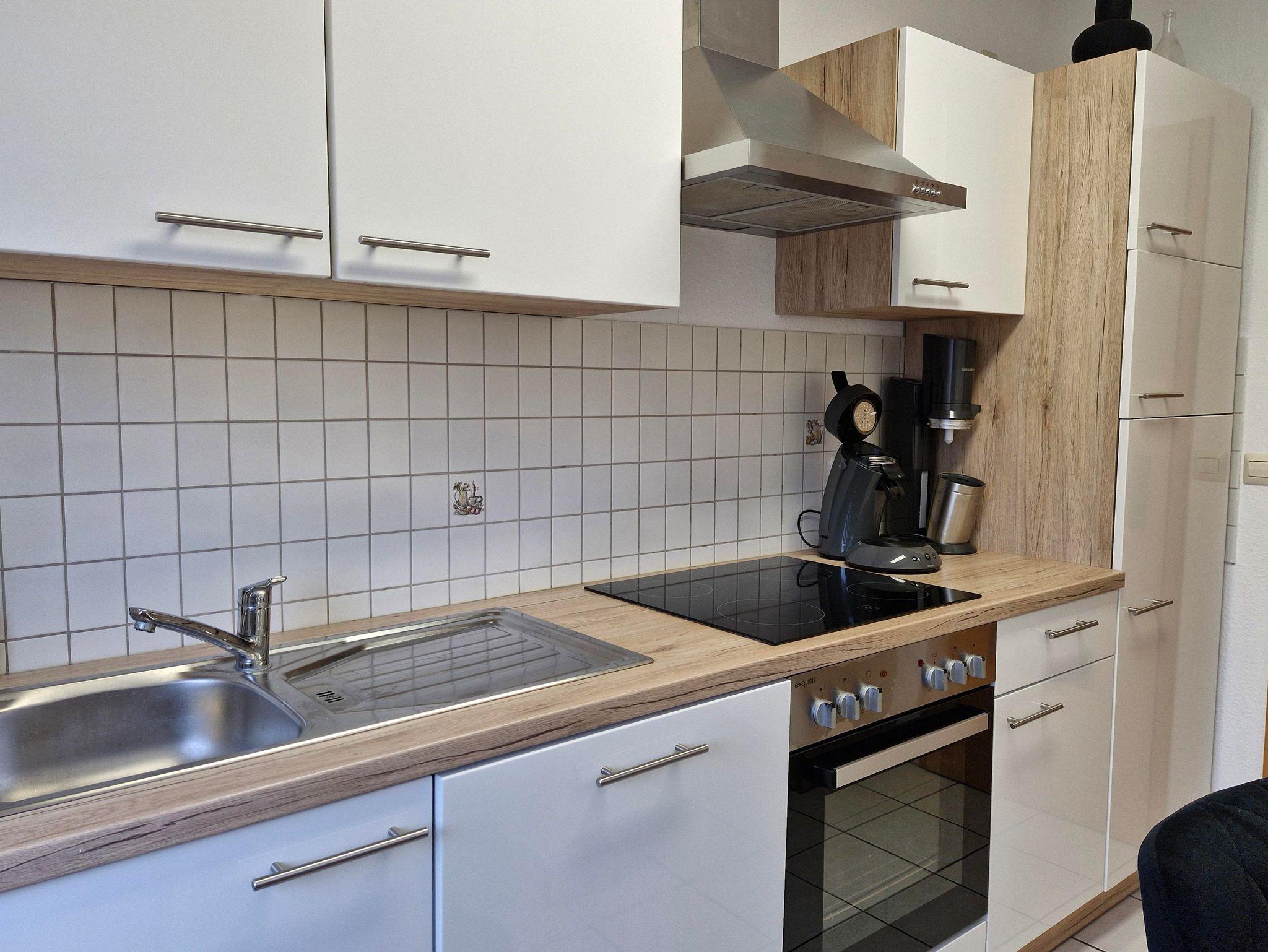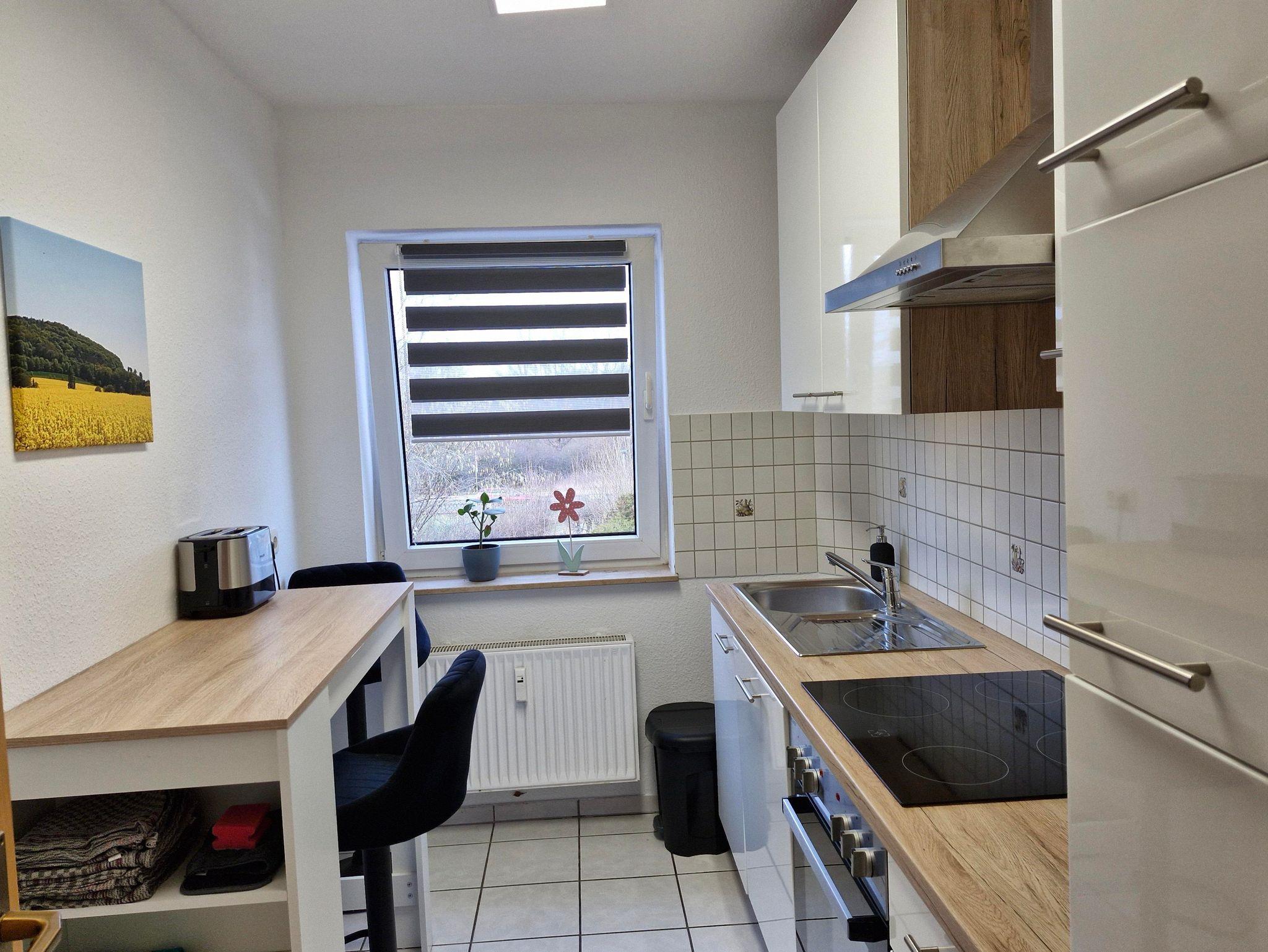 Die Ferienwohnung bietet auf 56 Quadratmetern Platz für 2 Erwachsene. Auf Anfrage kann noch ein weiteres Kind zugebucht werden. Die 3 Zimmer Ferienwohnung wurde im Februar 2024 neu eingerichtet. Das Wohnzimmer verfügt über Kabel TV, Radio, eine Couch mit Schlaffunktion, welche als Schlafplatz für die 3. Person dient, und einen Essbereich. Die seperate Küche verfügt über einen Bartresen mit Sitzhockern und ist mit Backofen, Herd, Spülmaschine, Kühl - Gefrierkombination und Wasserkocher voll ausgestattet. Das separate Schlafzimmer ist mit einem neuen Boxspringbett 200cm x 180cm ausgestattet. Das Tageslichtbadezimmer verfügt über Waschbecken, WC, Duschbadewanne und Haarföhn und besitzt ein Fenster. Der Balkon ist vom Wohzimmer aus begehbar, liegt südwestlich und bietet eine Sitzgruppe. Ein PKW Stellplatz ist hinter dem Haus vorhanden. Sie haben die Möglichkeit, Fahrräder im Keller abzustellen. Auch eine Waschmaschine ist vorhanden.