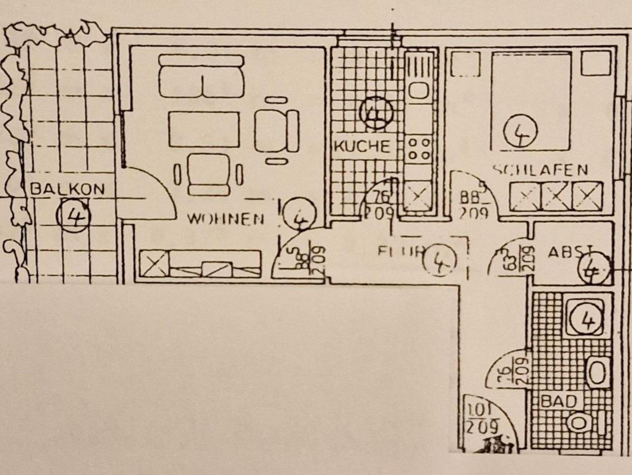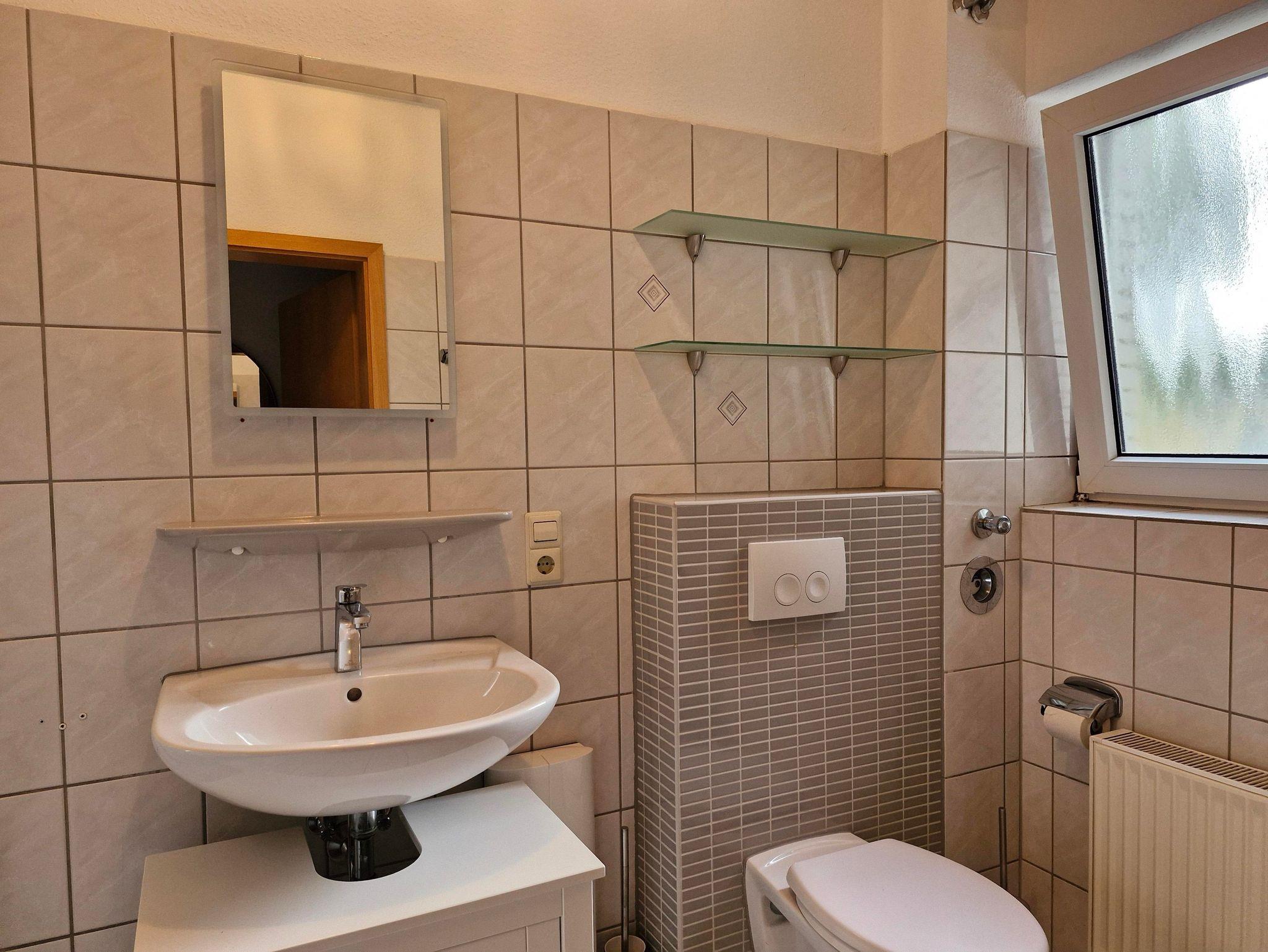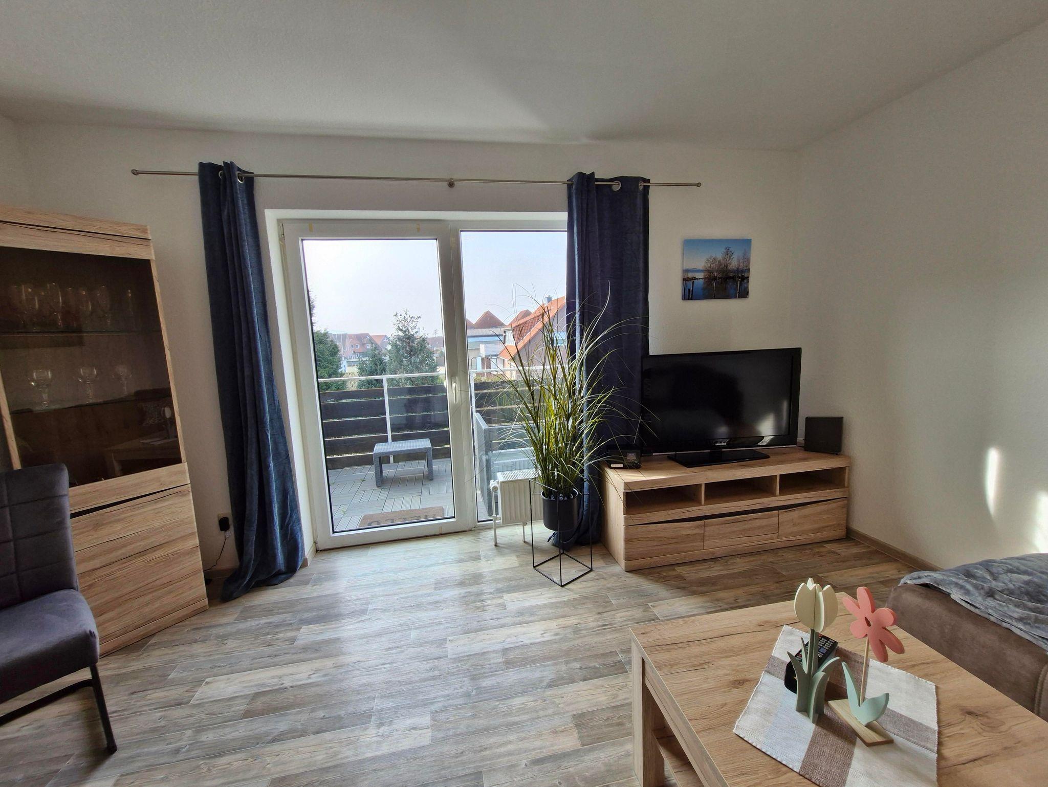 Die Ferienwohnung bietet auf 56 Quadratmetern Platz für 2 Erwachsene. Auf Anfrage kann noch ein weiteres Kind zugebucht werden. Die 3 Zimmer Ferienwohnung wurde im Februar 2024 neu eingerichtet. Das Wohnzimmer verfügt über Kabel TV, Radio, eine Couch mit Schlaffunktion, welche als Schlafplatz für die 3. Person dient, und einen Essbereich. Die seperate Küche verfügt über einen Bartresen mit Sitzhockern und ist mit Backofen, Herd, Spülmaschine, Kühl - Gefrierkombination und Wasserkocher voll ausgestattet. Das separate Schlafzimmer ist mit einem neuen Boxspringbett 200cm x 180cm ausgestattet. Das Tageslichtbadezimmer verfügt über Waschbecken, WC, Duschbadewanne und Haarföhn und besitzt ein Fenster. Der Balkon ist vom Wohzimmer aus begehbar, liegt südwestlich und bietet eine Sitzgruppe. Ein PKW Stellplatz ist hinter dem Haus vorhanden. Sie haben die Möglichkeit, Fahrräder im Keller abzustellen. Auch eine Waschmaschine ist vorhanden.