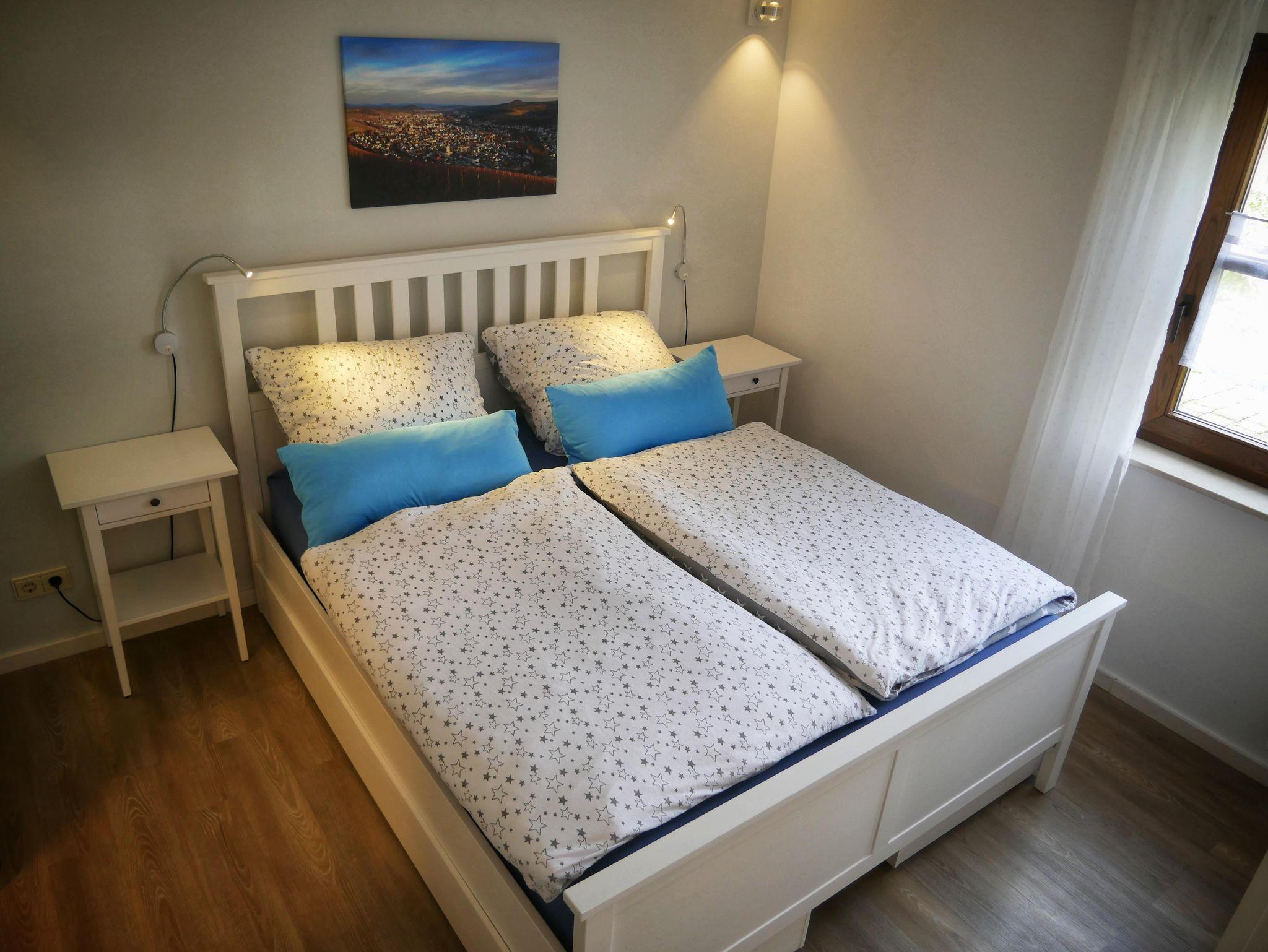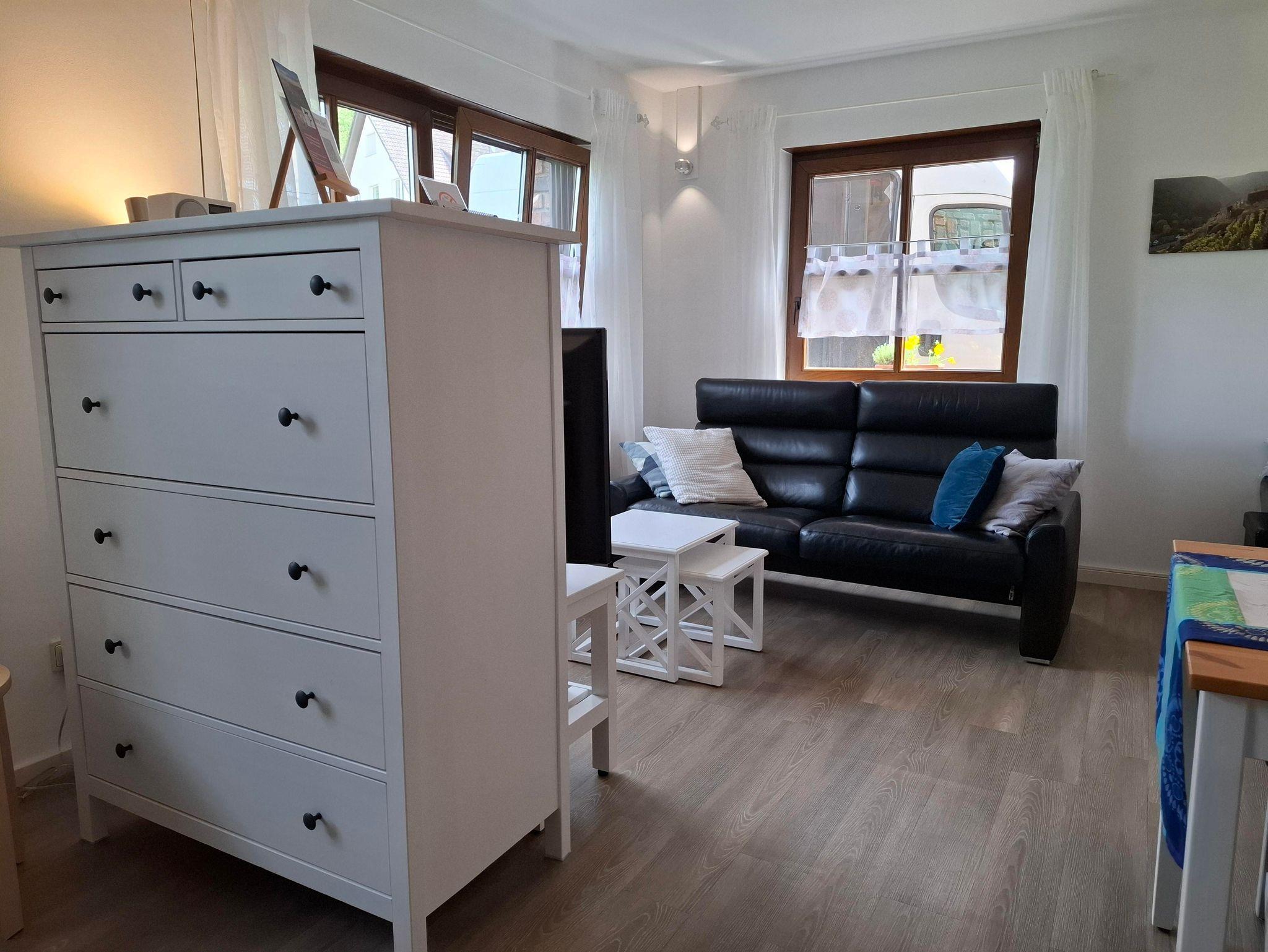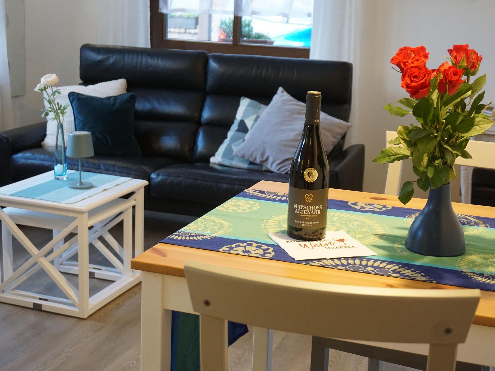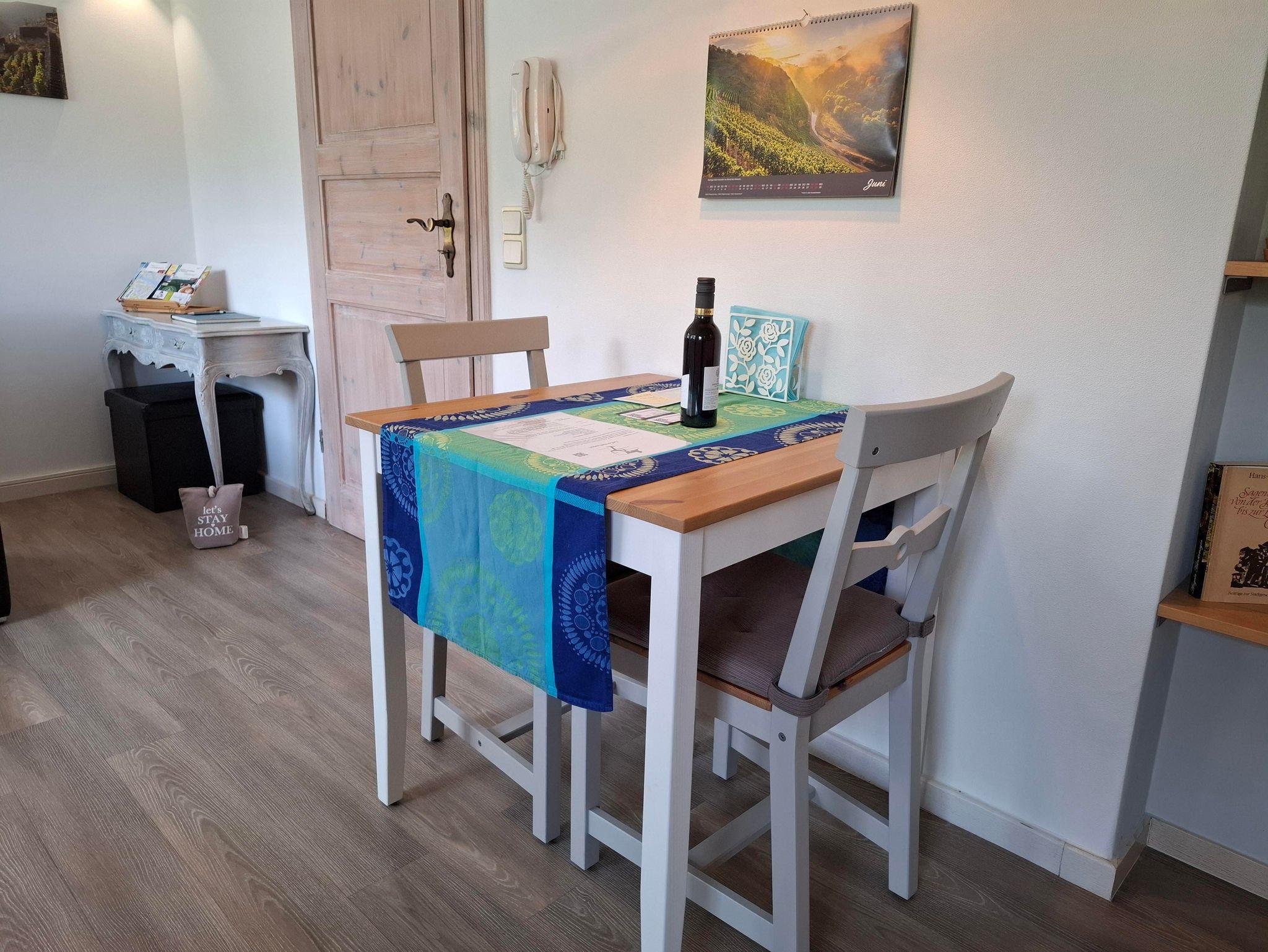 Die gut ausgestattete und geschmackvoll eingerichtete Ferienwohnung liegt unterhalb der Burgruine Landskrone direkt am Rotweinwanderweg und bietet auf ca. 38 m² Wohnfläche Platz für 1–2 Personen.