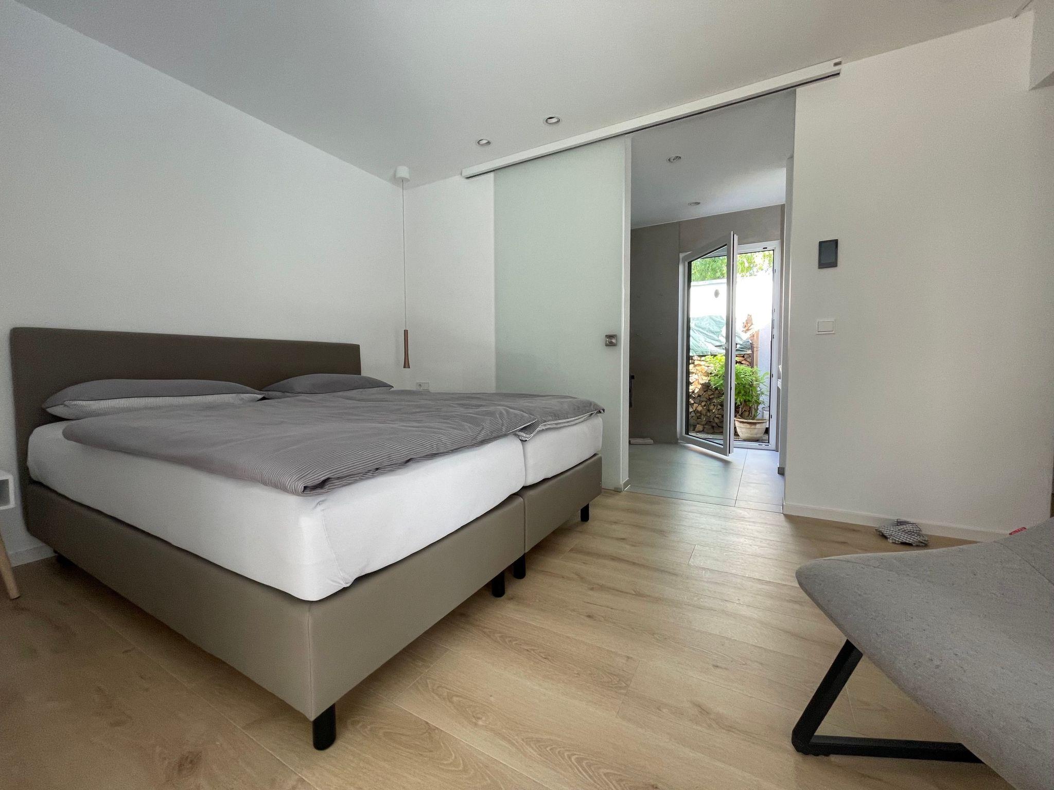 Low-rise building accessible at ground level with 48 square metres of living space. Completion 2023 Floor-to-ceiling windows offer plenty of light and can be darkened with electric blinds. Laminate flooring (allergy-friendly) with underfloor heating, TV (43 inch); wall cupboard with safe, kitchen with dishwasher, fridge including freezer compartment, convection bonnet, fully automatic coffee machine, toaster and kettle. Enjoy a good night's sleep in the cosy box-spring double bed. A pull-out couch is available if required. Fully equipped bathroom with barrier-free accessible rain shower, WC, washbasin and hairdryer. A washing machine and tumble dryer can be used in the flat for an additional charge. Bed linen and towels are included in the price.