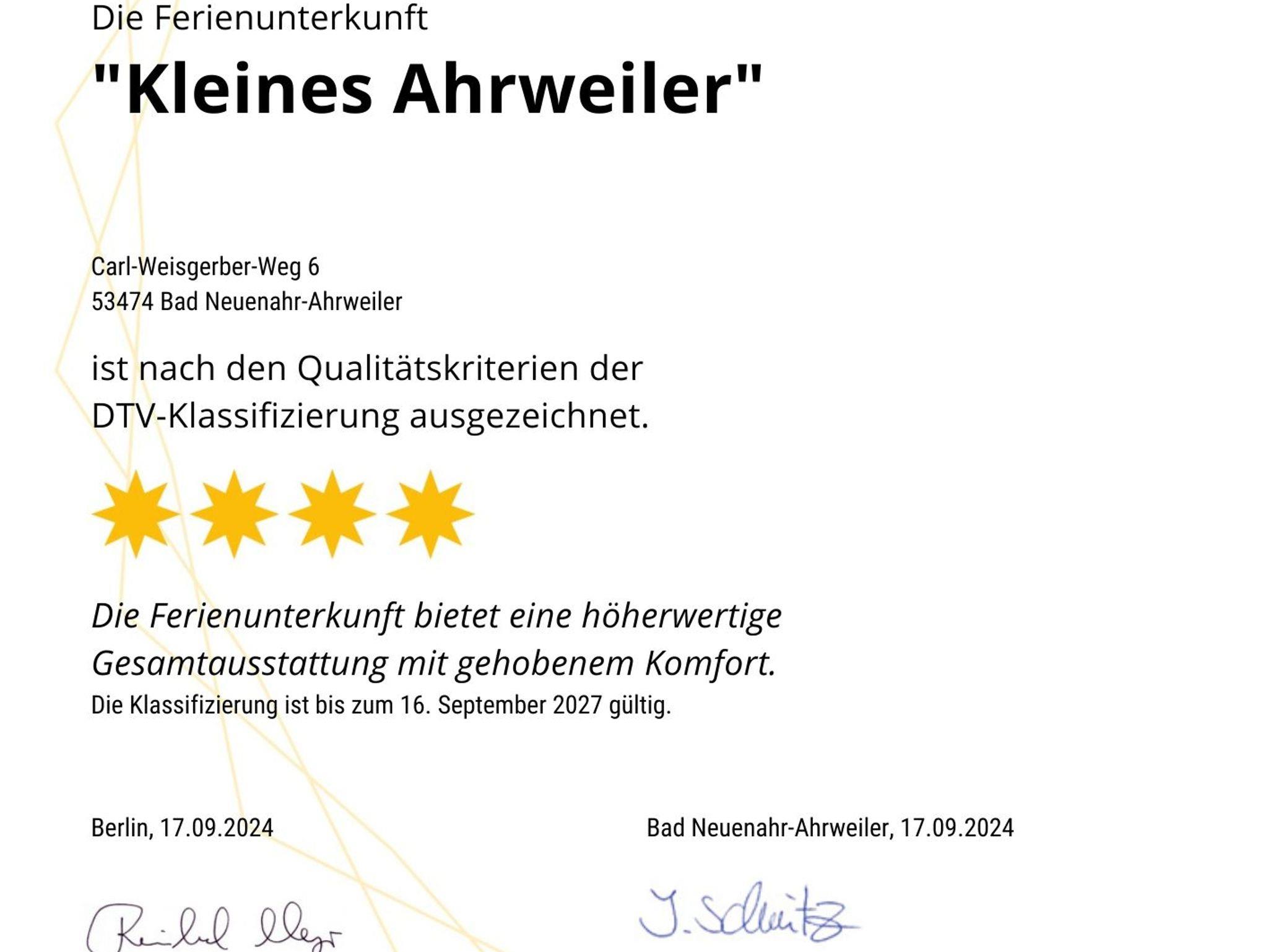 Unsere zertifizierte 4-Sterne-Ferienwohnung „Kleines Ahrweiler“ liegt inmitten der Rotweinmetropole Ahrweiler. Sie ist der ideale Ausgangspunkt für Ihren Urlaub in Bad Neuenahr-Ahrweiler und dem Ahrtal. Genießen Sie den Ahrwein in der historischen Altstadt von Ahrweiler, erkunden Sie aktiv den Rotweinwanderweg und lassen Sie es sich bei uns einfach gut gehen.