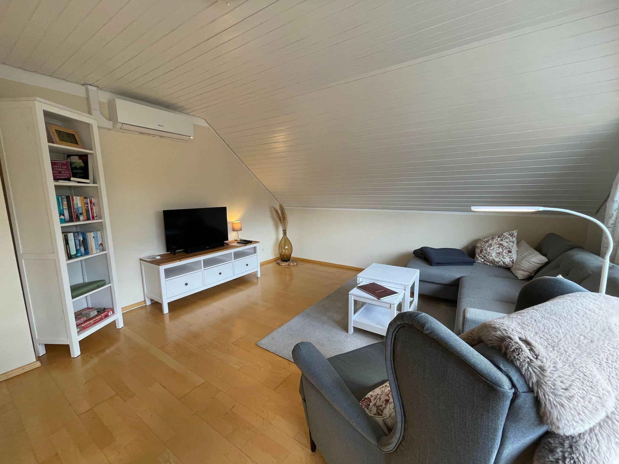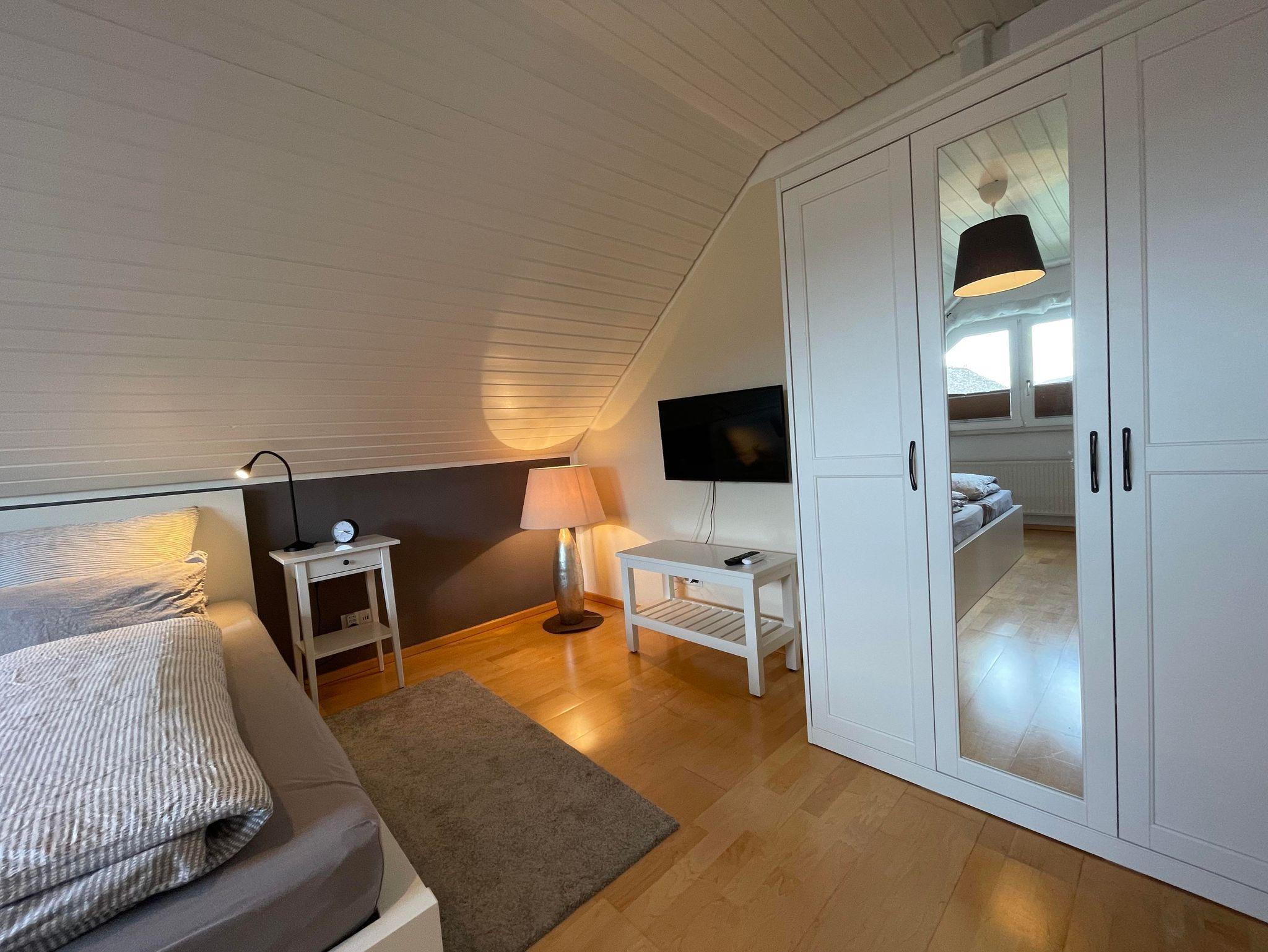 Auf knapp 65qm klimatisiertem Dachgeschoss, aufgeteilt in Schlaf-, Bade- und Wohn-/Esszimmer sowie eine Küche, einen geräumigen Flur, eine Abstellkammer und einen Balkon, bietet sie genügend Platz, um zwei Personen für mindestens drei Nächte je Aufenthalt aufzunehmen. Eine Anreise mit Kindern ist auf Grund der ausziehbaren Couch und eines Gitterbettes möglich. Haustiere sind leider nicht gestattet.