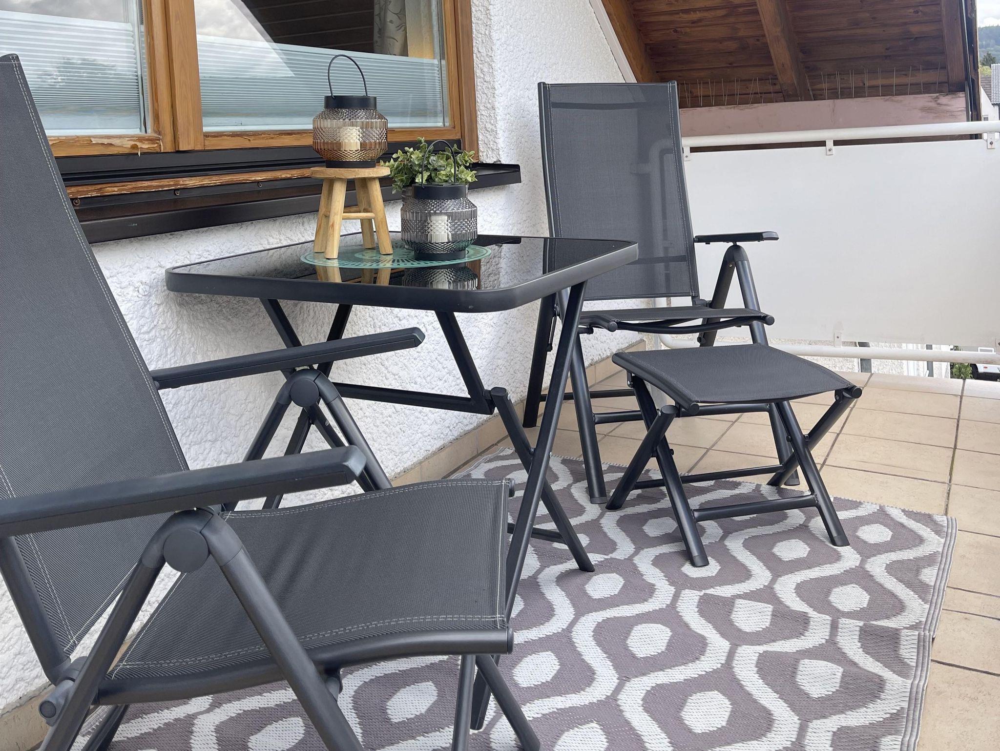 Das Schlafzimmer bietet ein bezogenes Doppelbett, einen Kleiderschrank und ein Sideboard sowie eine Klimaanlage und einen TV. Die Fenster können mittels Verdunklungsrollos abgedunkelt werden. Im Wohn-/Esszimmer finden Sie neben einem Esstisch für vier Personen eine auf 1,40m ausziehbare Schlafcouch, einen TV und eine Klimaanlage. Der Zugang zum Südbalkon erfolgt hierüber, die große Fensterfront lässt sich mit Hitzeschutzrollos abdunkeln. Der Ausblick vom Balkon in die Weinberge ist wunderschön!