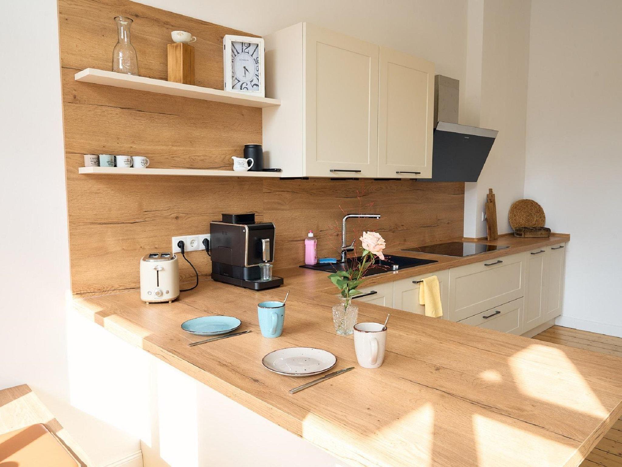 Die liebevoll eingerichtete und frisch sanierte Ferienwohnung befindet sich im ersten OG und bietet Ihnen alles, was Sie für einen angenehmen Aufenthalt benötigen. Im nach Norden ausgerichteten Schlafzimmer mit Blick auf die Weinberge finden Sie ein komfortables Doppelbett mit Allergikerbettwäsche, einen großzügigen Kleiderschrank und eine Kommode- ausreichend Platz um ihr Reisegepäck zu verstauen. Die ganze Wohnung verfügt über einen wunderschönen Dielenboden. Das gemütliche und lichtdurchflutete Wohnzimmer mit Schlafcouch (1,40m Liegefläche - hier können gerne 1 zusätzlicher Erwachsener oder 2 Kinder nächtigen) und Sessel verfügt über einen Flachbildfernseher für gemütliche Filmeabende. Den großzügigen Südbalkon mit ausreichend Sitzgelegenheiten können Sie sowohl vom Wohnzimmer als auch von der Küche betreten. Das helle Duschbad ist mit frischen Handtüchern, Handseife, Kosmetikspiegel und Haarföhn ausgestattet. In der großzügigen, voll ausgestatteten Küche mit Ceranfeld, Backofen, Kühl-Gefrierkombination, Mikrowelle, Toaster, Wasserkocher und einem Kaffeevollautomat sollten keine Wünsche offen bleiben. Hier finden Sie auch eine Sitzgelegenheit für bis zu 4 Personen und auch einen kleinen Fernseher. Kleine Wäschemalheure sind im Nu mit der Waschmaschine eigens für die Ferienwohnung beseitigt. In der Waschküche finden Sie auch einen Wäscheständer. Falls es Ihnen an irgendetwas fehlen sollte, zögern Sie nicht uns zu kontaktieren. Eine dritte Person oder bis zu 2 Kinder können gerne auf Anfrage mit in die Buchung aufgenommen werden. Pro Person und Nacht kommen dann 30 Euro Mehrkosten dazu. Tiere sind bei uns in der Wohnung nicht gestattet, ebenso wie das Rauchen.