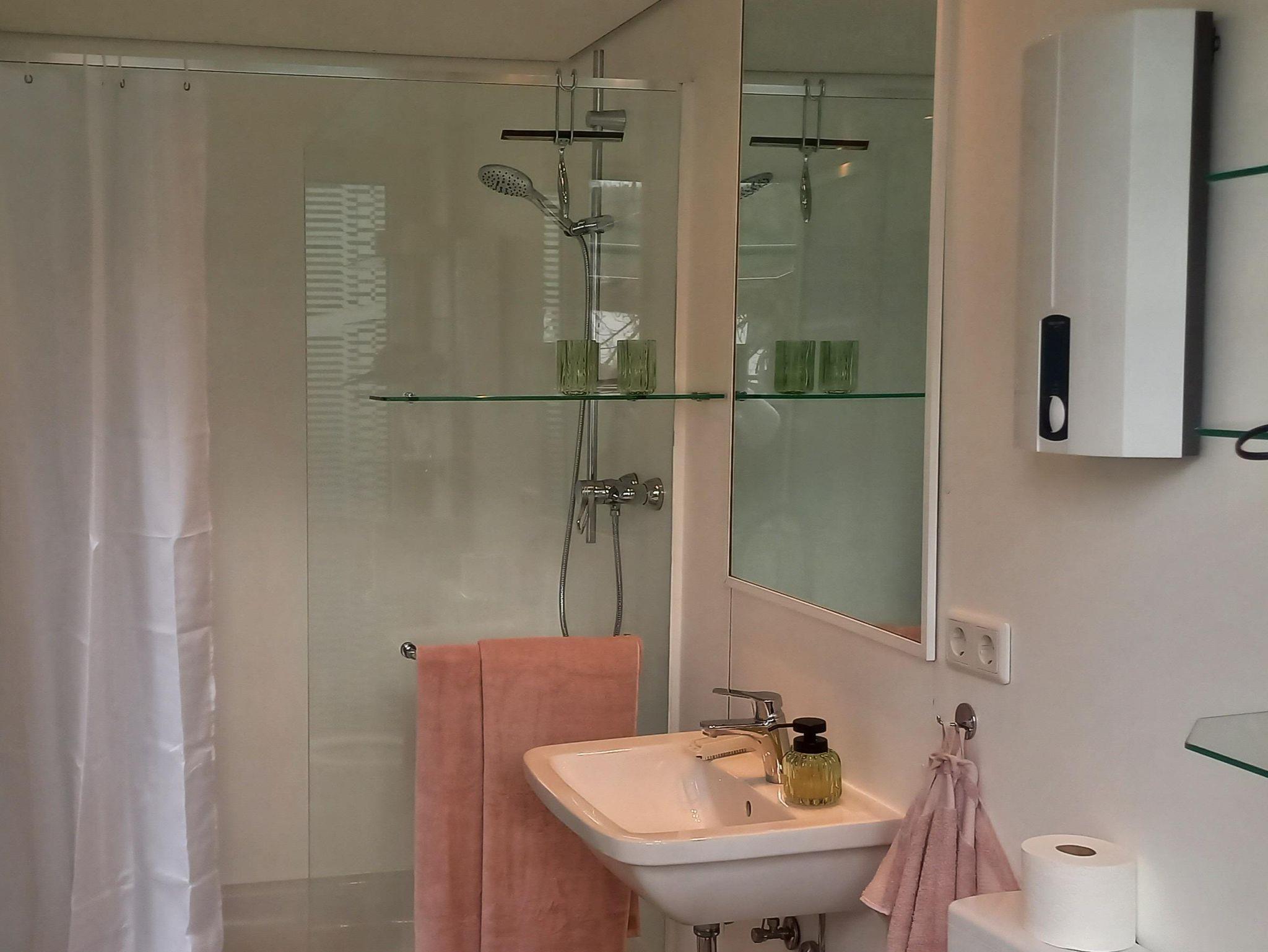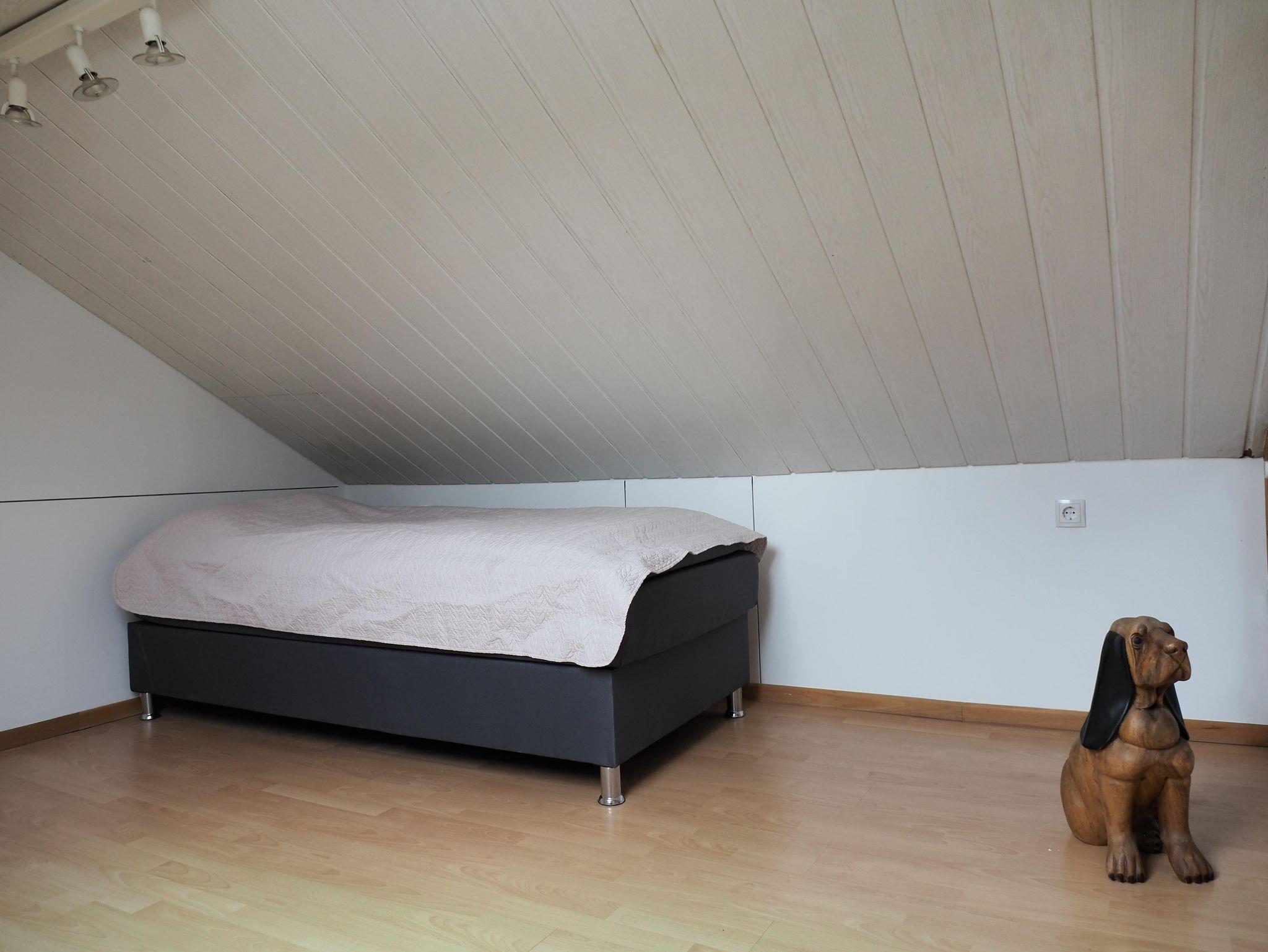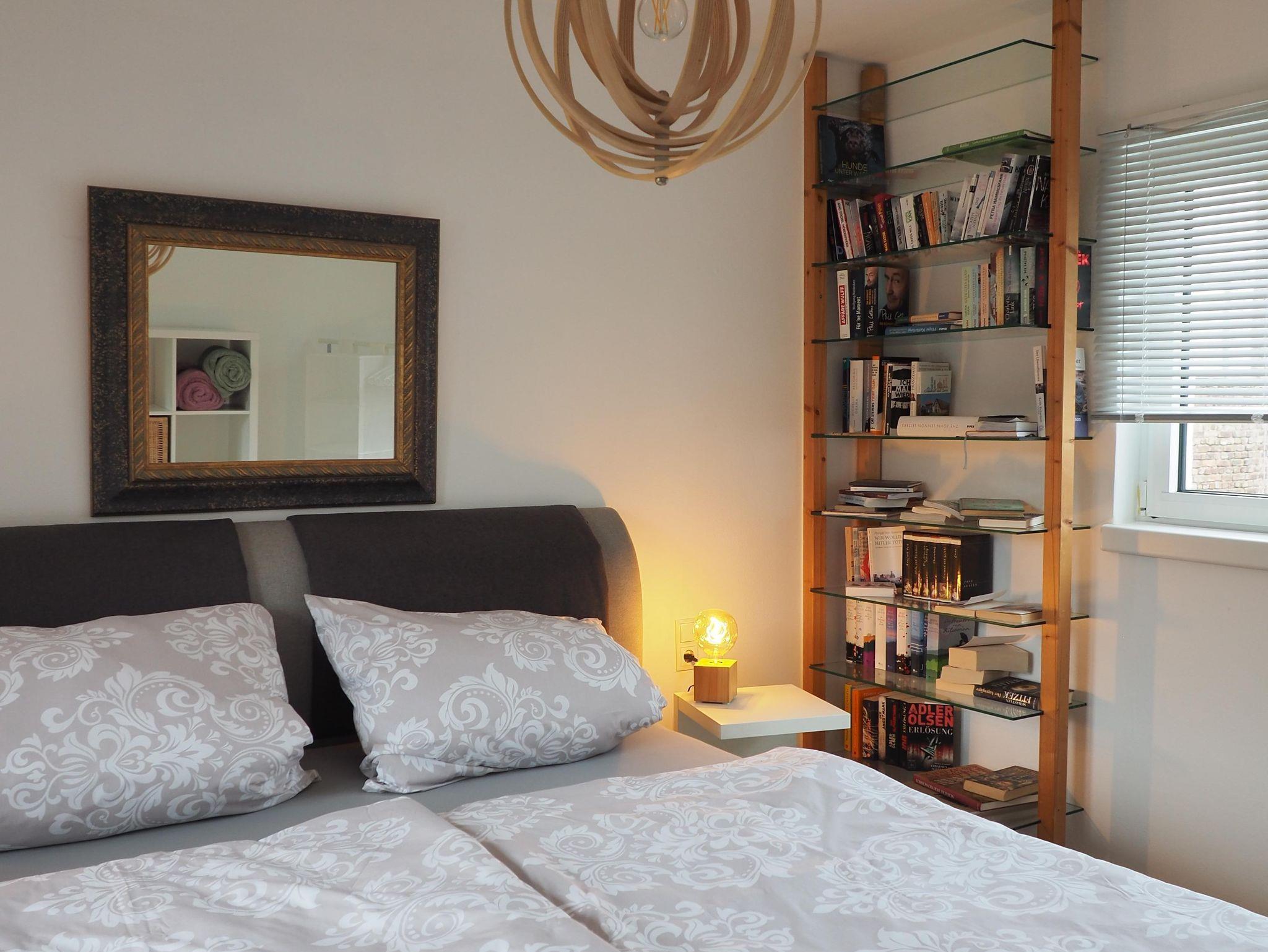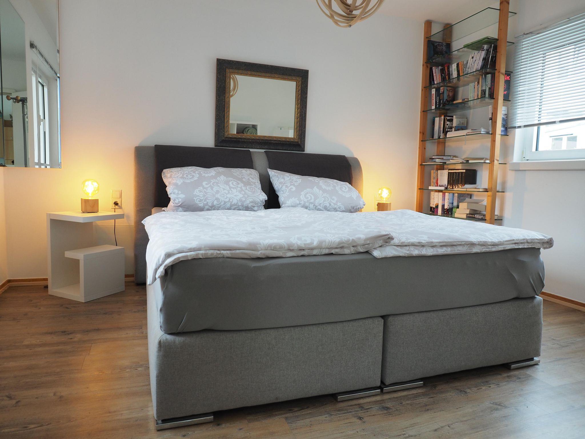 Wohnen überm Atelier ist eine helle und liebevoll eingerichtete Wohnung geeignet für 1-3 Personen.Sie bietet ein geräumiges helles Schlafzimmer mit Boxspring-Doppelbett 180 x 200 cm , Nachttische mit Beleuchtung , Steckdosen am Bett und einem Regal mit einigen gut erhaltenen spannenden Büchern. Über eine steile Treppe erreicht man den Raum mit einen Einzelbett.Die offene Wohnküche ist mit Mikrowelle, Herd mit Ceranfeld und Kühl-Gefrierschrank ausgestattet. Ebenso stehen viele Gewürze, Essig,Öl, Zucker, Süßstoff,Küchentücher und Spülmittel zur Benutzung bereit.Im Tageslicht-Bad befindet sich eine große Dusche , sowie Föhn , Badetücher sowie Besen und Staubsauger. Kabel-TV und freies WiFi sind ebenso vorhanden. Der Balko ist windgeschützt und auf ihm dürfte geraucht werden. Für den Hund stehen Näpfe bereit.