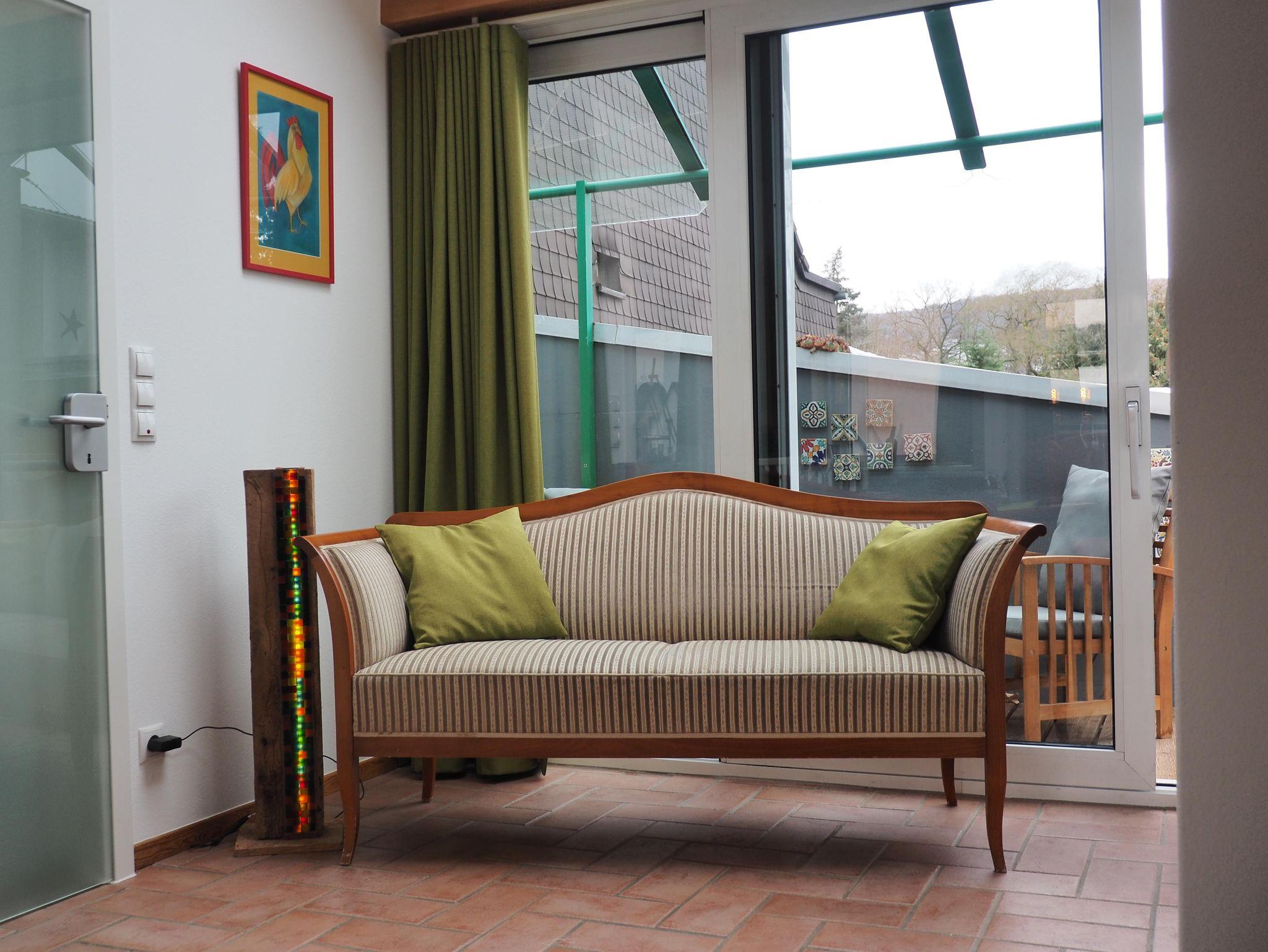 Wir heißen Sie herzlich willkommen in unserer Ferienwohnung Wohnen überm Atelier. Sie können bequem mit dem Auto bis vor die Außentreppe fahren, die Sie auf die erste Etage in unsere lichtdurchflutete Wohnung führt.