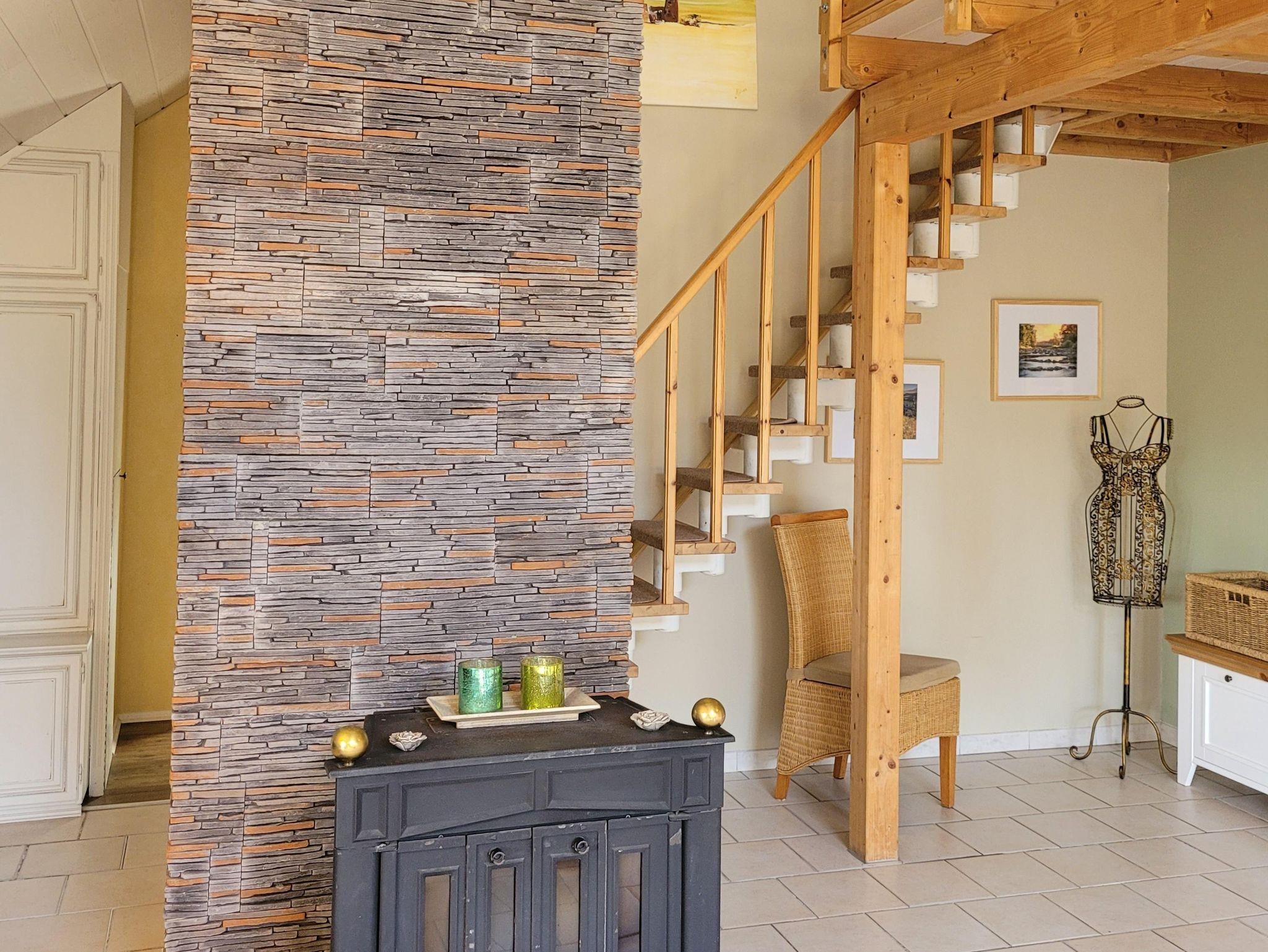 Fußbodenheizung und ein Schwedenofen schaffen eine behagliche Atmosphäre.