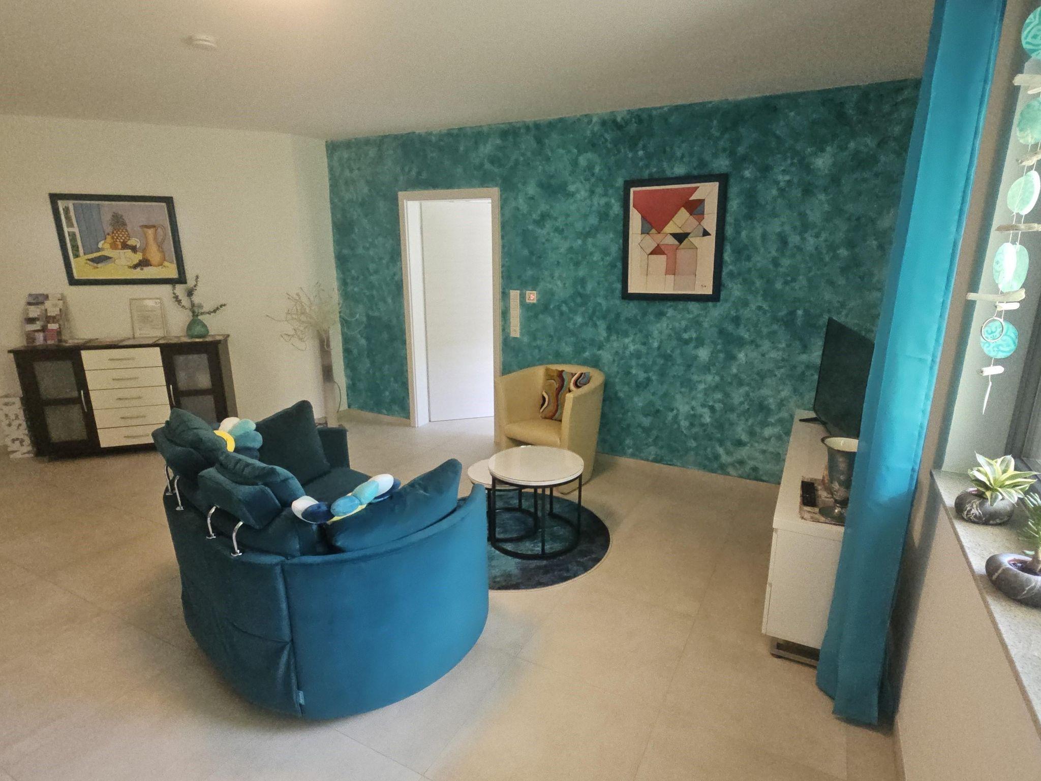 Unsere liebevoll eingerichtete Ferienwohnung mit einer Größe von 45 Quadratmetern bietet Ihnen alles, was Sie für einen entspannten Aufenthalt benötigen. Das helle Wohn-Esszimmer lädt mit einem bequemen 2er-Schaukel-/Liege-Sofa, einem gemütlichen Sessel und zwei Couchtischen zum Verweilen ein. Ein moderner LCD-Fernseher mit Satellitenempfang sorgt für beste Unterhaltung, während die voll ausgestattete Küche mit Kühl- und Gefrierschrank sowie einer praktischen Ess-Bar mit zwei Barhockern keine Wünsche offenlässt.