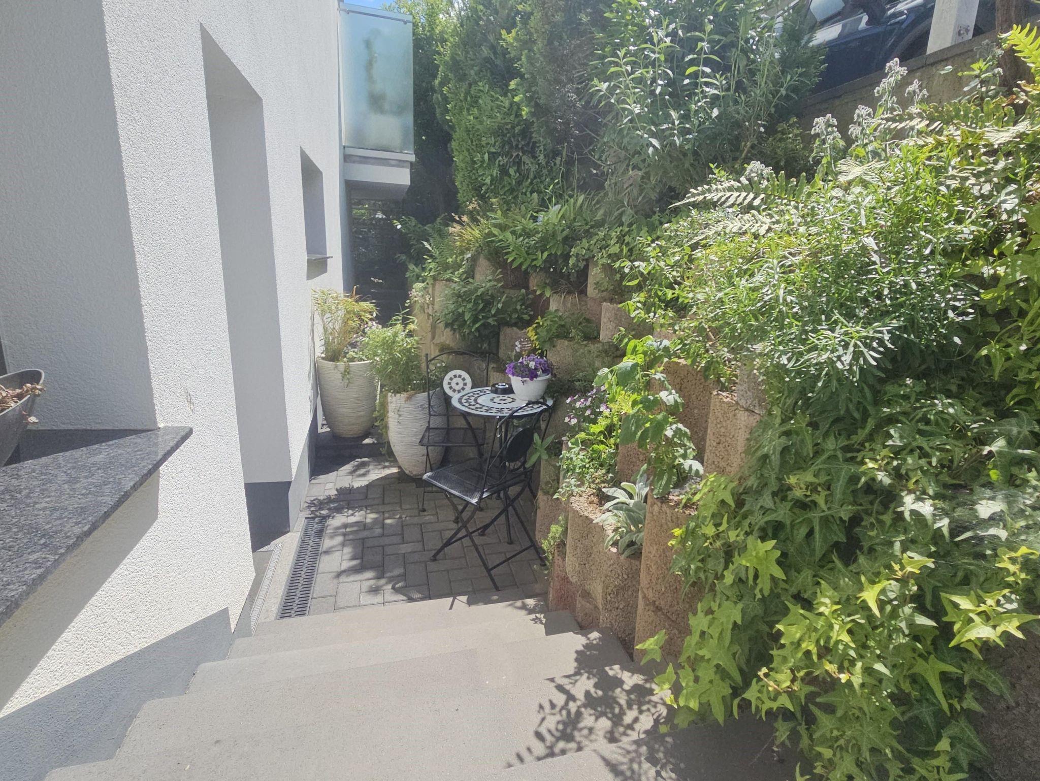 Im Außenbereich laden zwei wunderschöne Sitzgelegenheiten, umgeben von duftenden Kräutern, Bäumen und Sträuchern, zum Verweilen ein. Hier können Sie die Ruhe genießen und den Tag entspannt ausklingen lassen. Bettwäsche, Handtücher, Spülmittel, Spültücher und Toilettenpapier sind bereits im Preis inbegriffen. WLAN steht Ihnen kostenlos und bequem mit Passwort zur Verfügung, ebenso wie ein privater Parkplatz direkt am Haus.