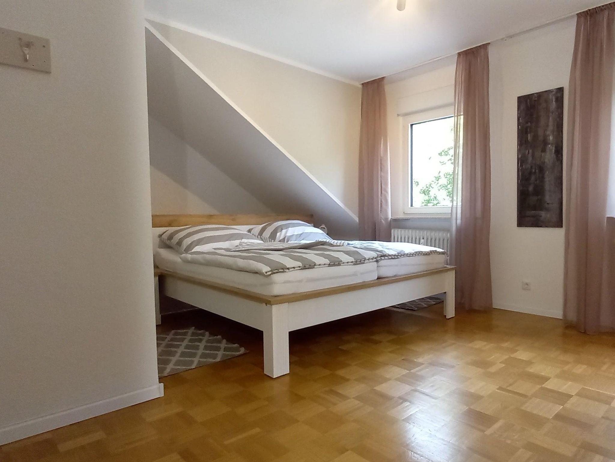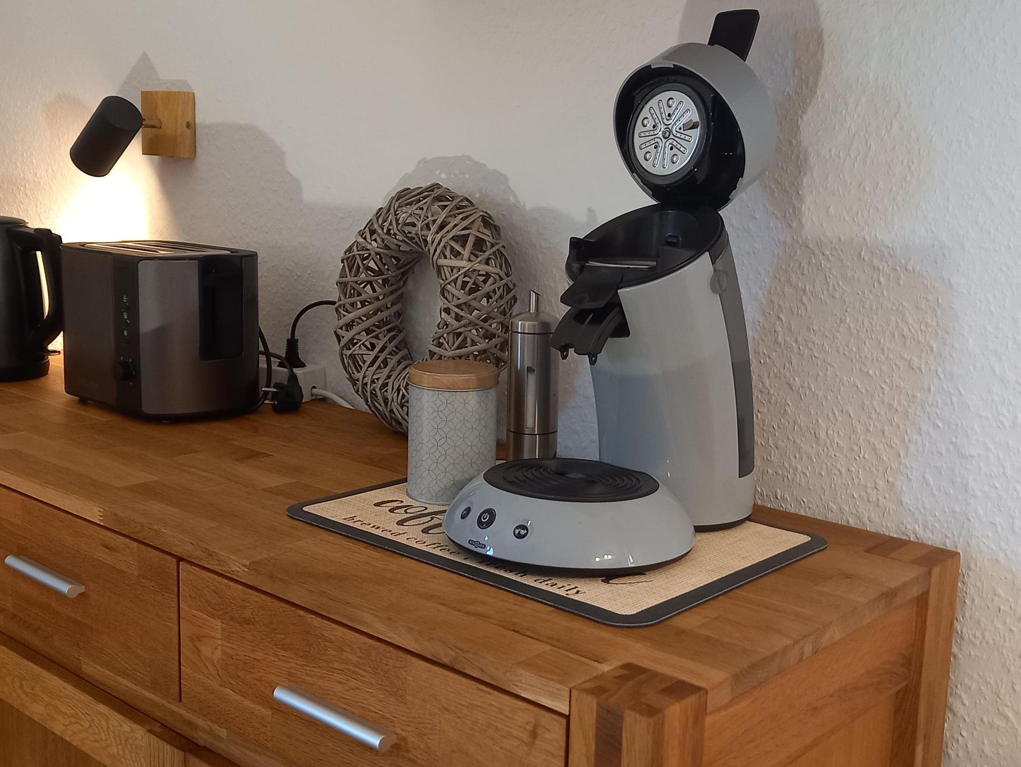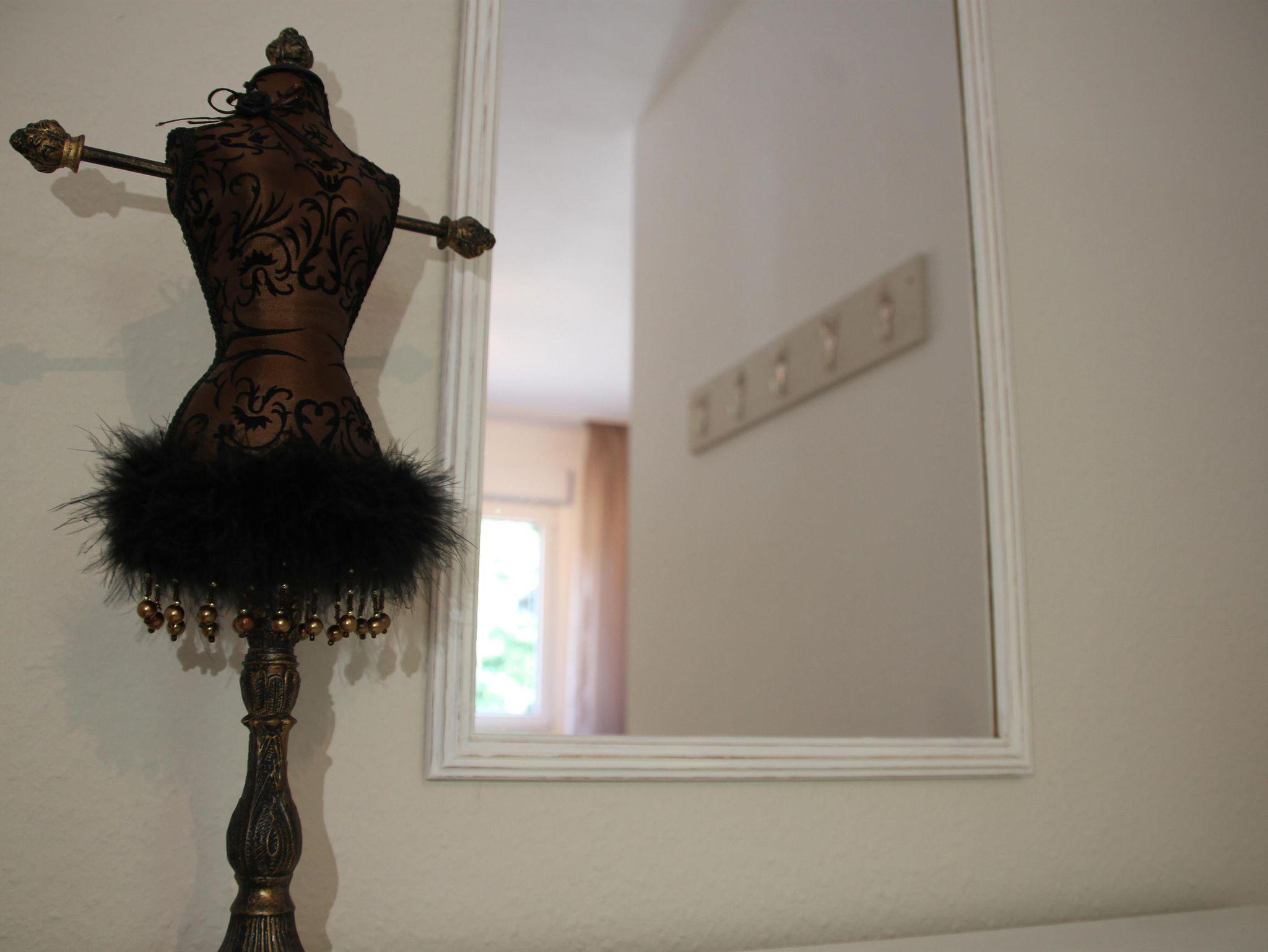 The apartment is 50 square meters and consists of a hallway, a large bedroom with a double bed (180x200 cm), a make-up table, a wardrobe and a cozy little seating area by the window. Living room, dining area and kitchenette are housed in a separate large room. The sofa is extendable (130 x 200 cm). From there it goes into the bathroom with sink, toilet and shower including hair dryer. You will find everything you need for your holiday in the small kitchen. A large refrigerator with freezer compartment, a 2-ring ceramic hob, a microwave, a toaster, a kettle and a coffee machine (Senseo) are also available. Tea, some coffee pats, canned milk and a bottle of water are ready for you. From the south-facing living room you can access a small balcony with a wonderful view of nature and the spa park/the town of Bad Orb. The price includes bed linen, towels, 2 bathrobes and laundry for the kitchen. You can park your vehicle free of charge in the courtyard (depending on the size, please ask when booking) directly in front of the front door. Smoking in the apartment is not permitted.