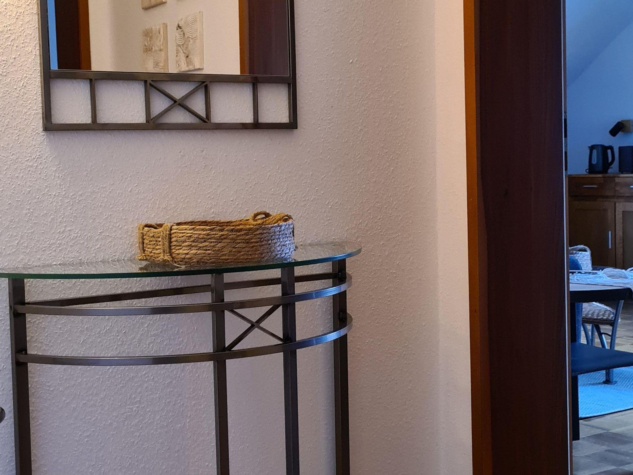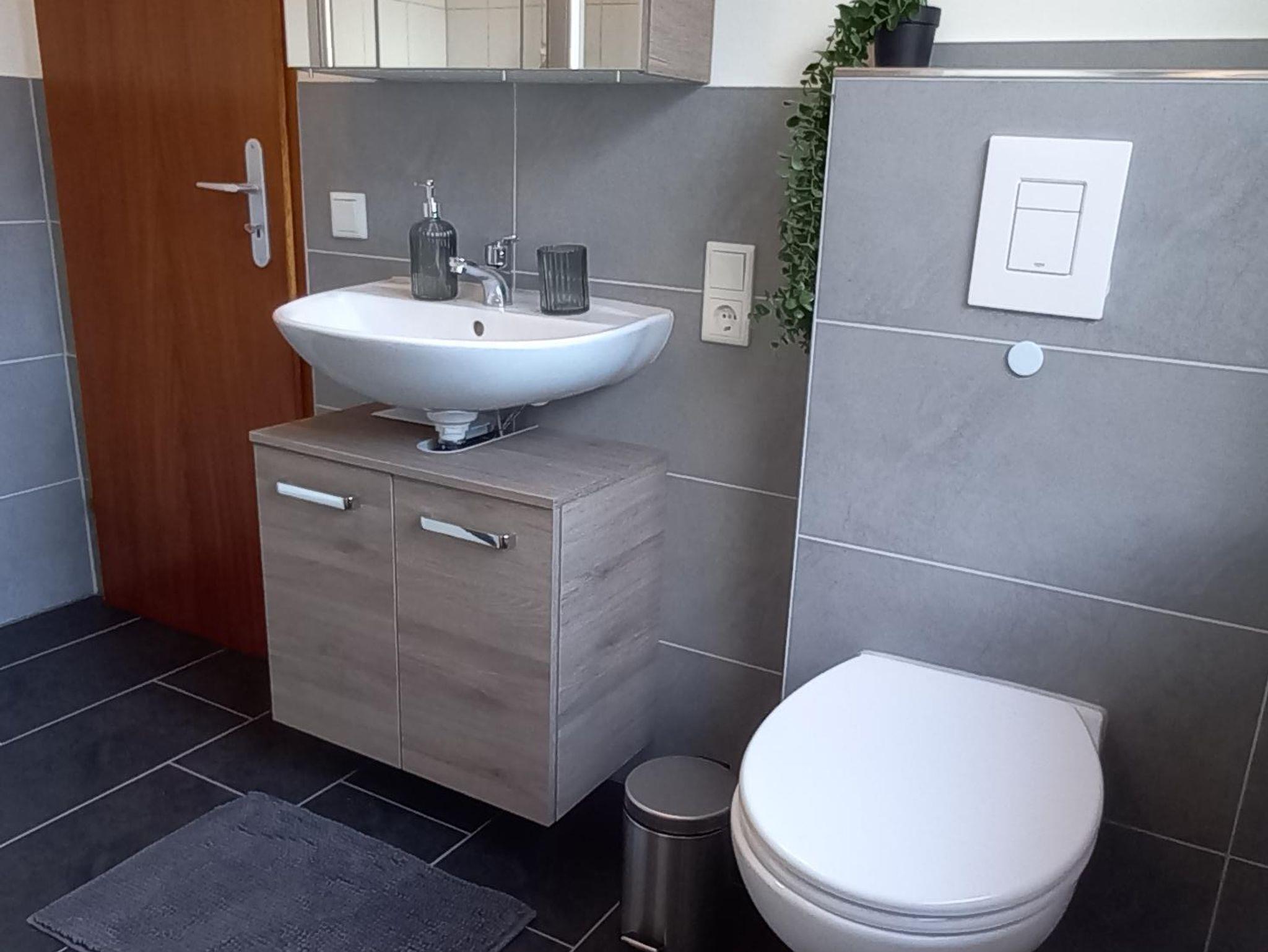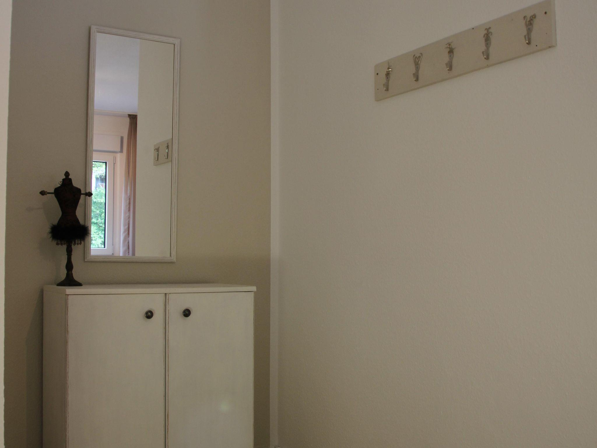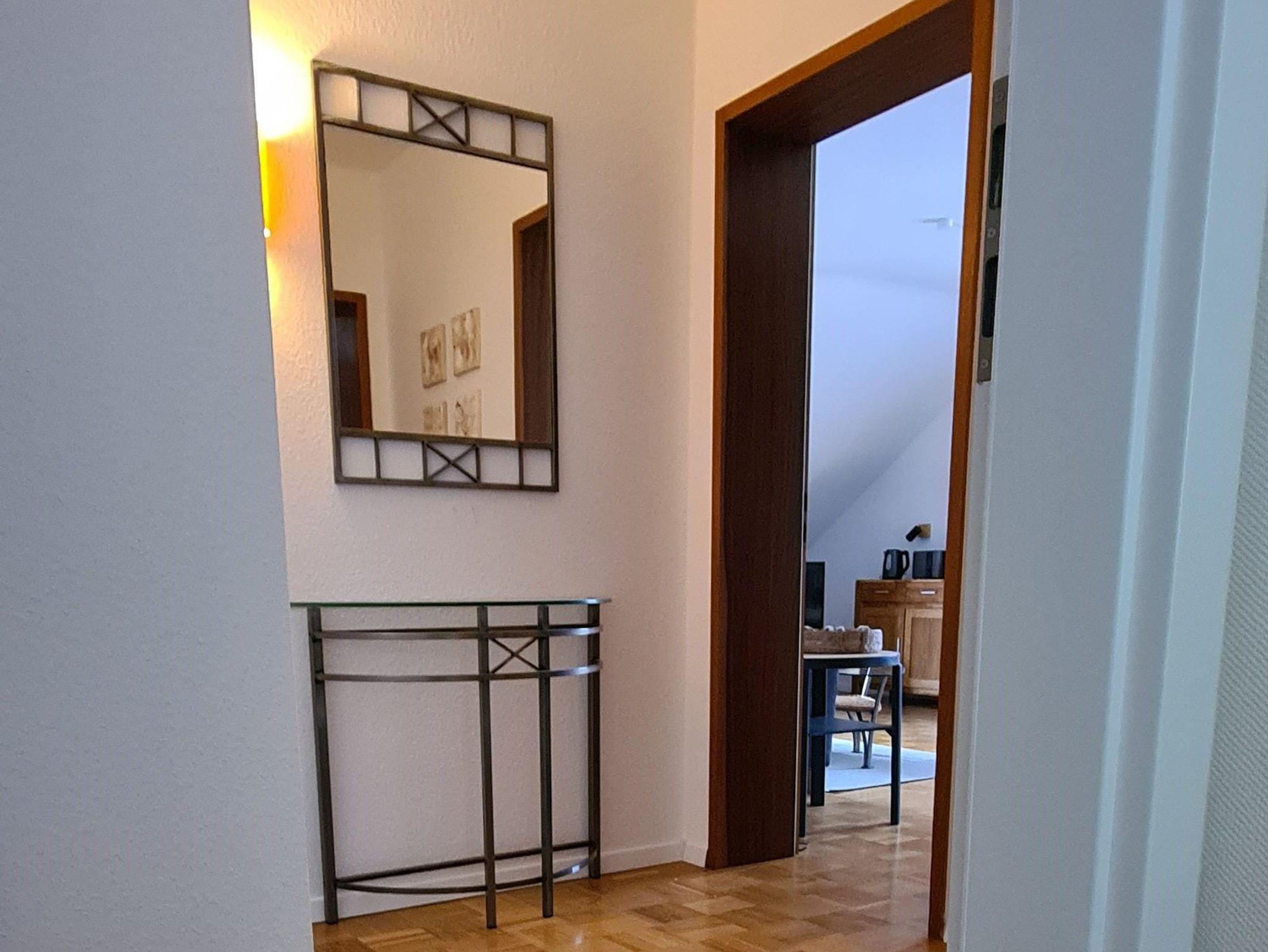 The apartment is 50 square meters and consists of a hallway, a large bedroom with a double bed (180x200 cm), a make-up table, a wardrobe and a cozy little seating area by the window. Living room, dining area and kitchenette are housed in a separate large room. The sofa is extendable (130 x 200 cm). From there it goes into the bathroom with sink, toilet and shower including hair dryer. You will find everything you need for your holiday in the small kitchen. A large refrigerator with freezer compartment, a 2-ring ceramic hob, a microwave, a toaster, a kettle and a coffee machine (Senseo) are also available. Tea, some coffee pats, canned milk and a bottle of water are ready for you. From the south-facing living room you can access a small balcony with a wonderful view of nature and the spa park/the town of Bad Orb. The price includes bed linen, towels, 2 bathrobes and laundry for the kitchen. You can park your vehicle free of charge in the courtyard (depending on the size, please ask when booking) directly in front of the front door. Smoking in the apartment is not permitted.