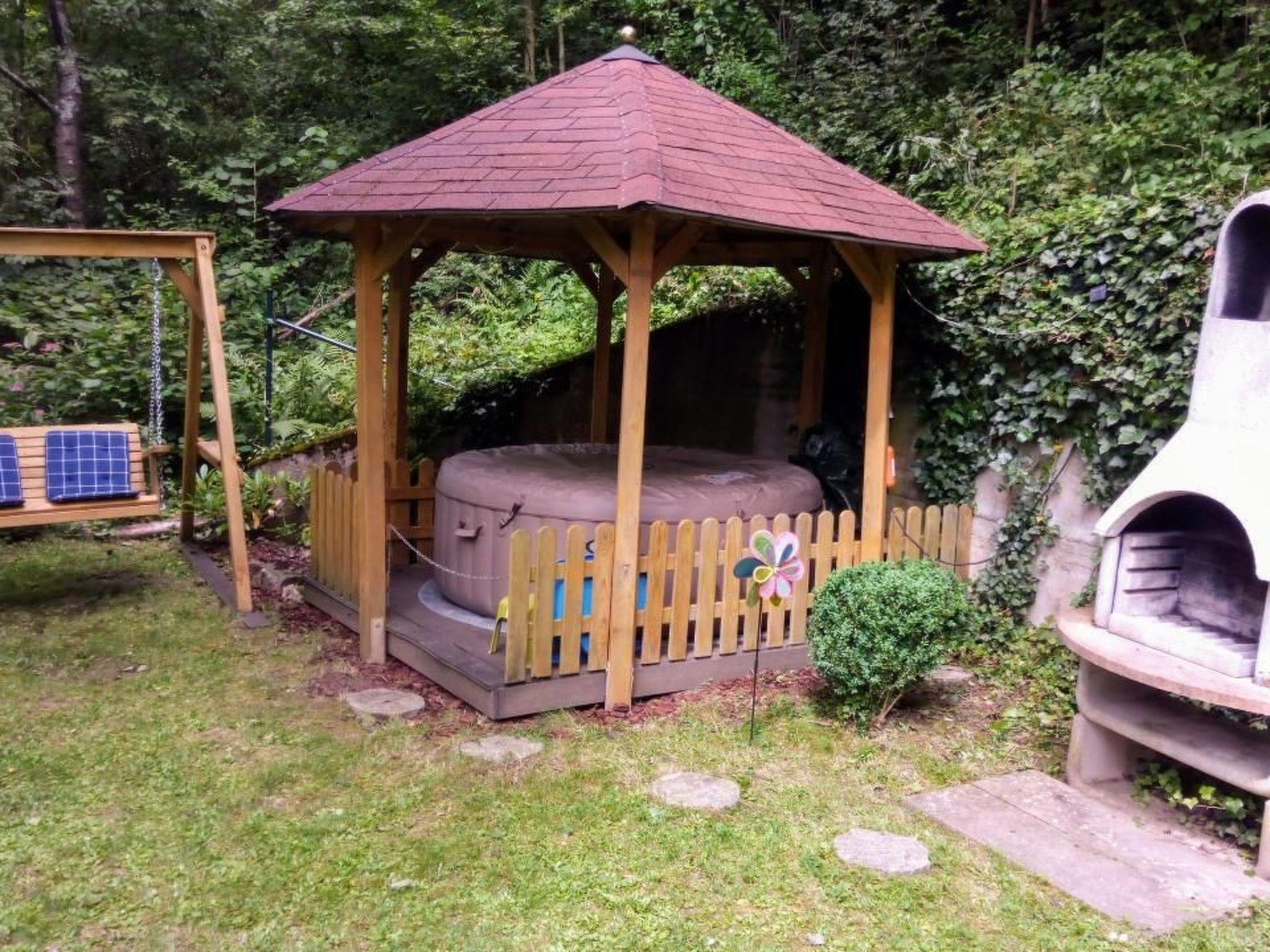 The CHALET (log cabin) is suitable for romantics, lovers, wedding couples, small families as well as young-at-heart retired couples. The outdoor whirlpool offers a special experience with a water temperature of up to 38 degrees. The whirlpool offers unbelievable pure relaxation, far away from everyday life and stress. Haus Wilhelmstal was honoured in the years 2015 to 2021. Green valleys and streams, old trees offer many opportunities for nature-loving holidaymakers to spend an unforgettable holiday in the nature-rich Weserbergland.garden furniture, STRANDKORB, where you can end the day in the evening sun. There is also a car park, natural grounds, stairs, lockable BIKE HOUSE (for a fee). The terrace is equipped with garden furniture and parasol / private terrace, garden loungers, bench, whirlpool (bookable May - Sept.), beach chair, garden grill (charcoal), wooden Hollywood swing and pavilion. Garden and outdoor facilities Leisure facilities at the property: whirlpool (for a fee) Garden equipment: garden shed, garden furniture, beach chair, barbecue (charcoal), gazebo, swing, garden loungers. The holiday home is detached and fenced with a fence or hedge.