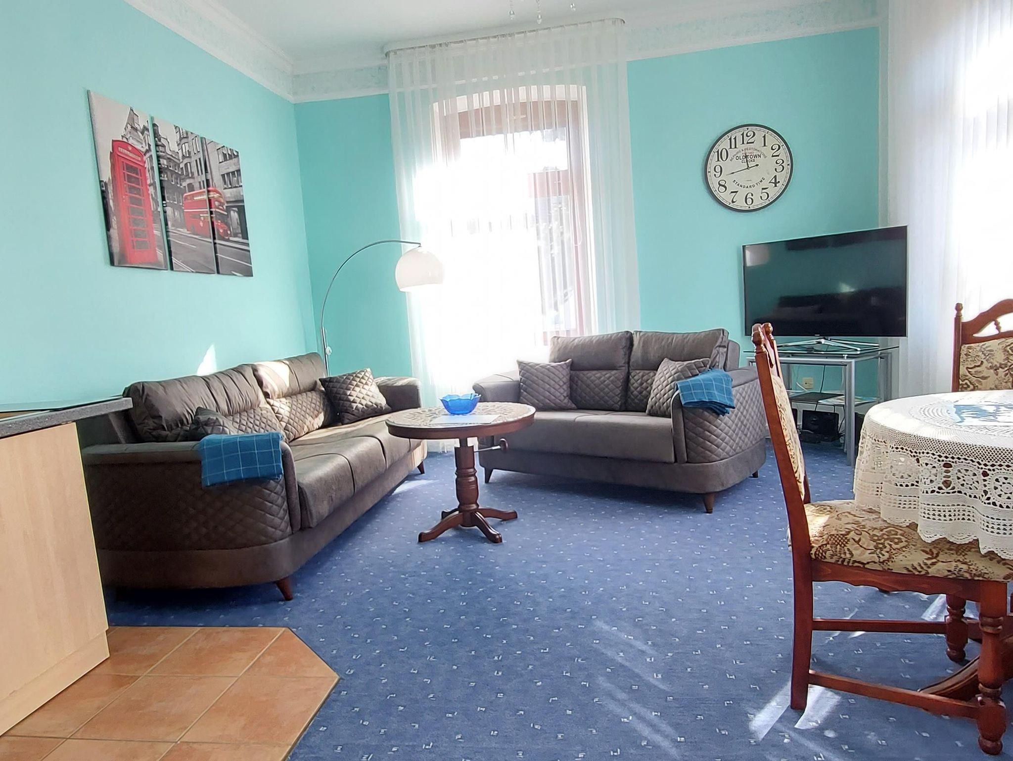 Die 2-Raum-Komfort-Fereinwohnung ist 55qm groß und bestens geeignet für bis zu 2 Personen. Im Flur befindet sich die Garderobe. In der Wohnküche finden Sie eine voll ausgestattete Single-Küchenzeile mit Kühlschrank, Herd, Kaffeemaschine, Wasserkocher, Mikrowelle und Esstisch. Gemütliche Abende verbringen Sie auf der gemütlichen Couch mit Smart-TV. Das Schlafzimmer verfügt über ein Doppelbett. Im Badezimmer finden Sie Dusche mit WC. WLAN und Parkplatz stehen kostenfrei zur Verfügung. Bettwäsche, Handtücher, sowie Tisch- und Küchenwäsche sind vorhanden. Ein Highlight ist der große Süd-Balkon.