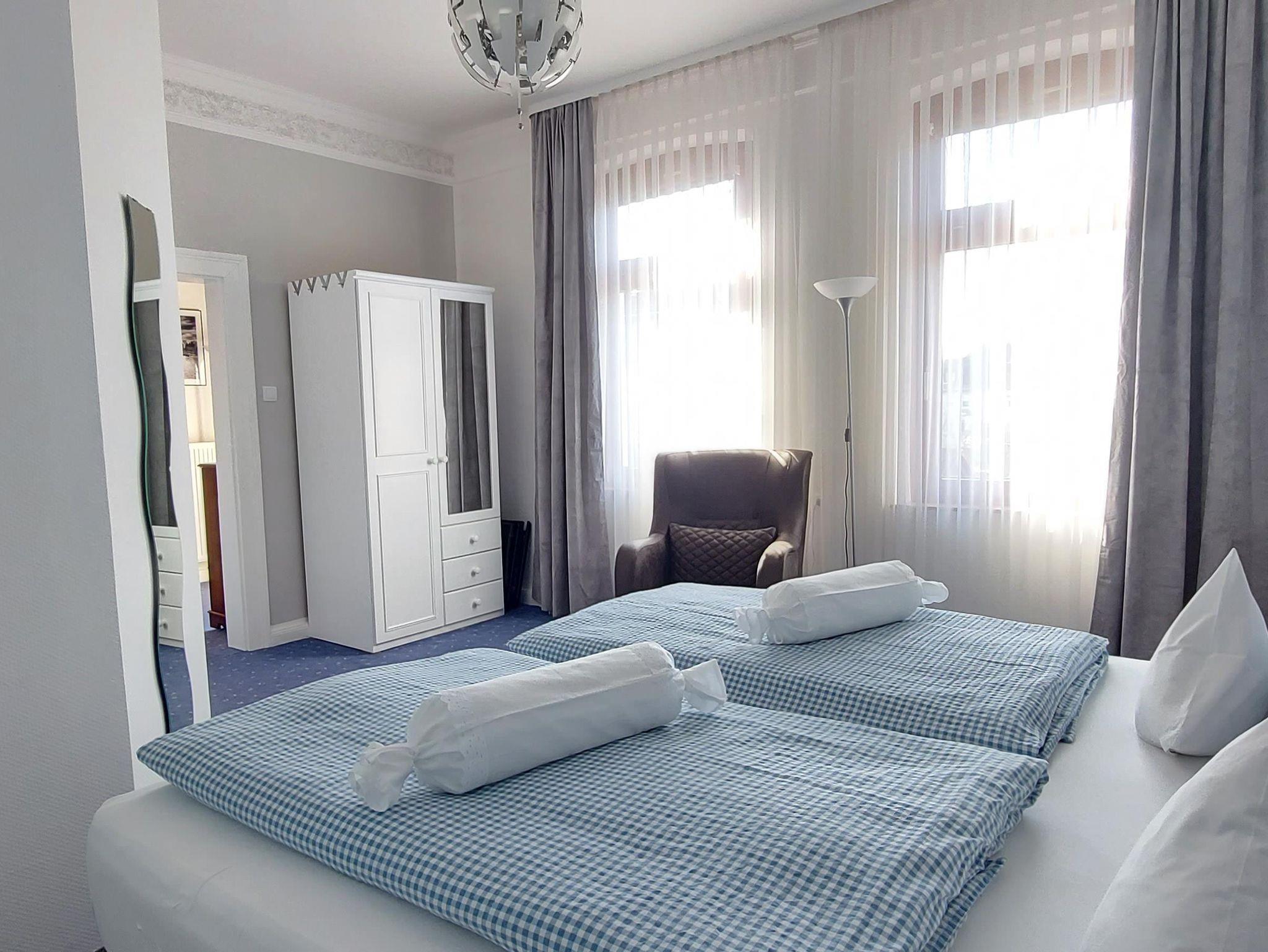 Die 2-Raum-Komfort-Appartements liegen direkt im Kurzentrum in einer ruhigen Umgebung. Zum Kurpark, Hauptallee und der Fußgängerzone sind es nur wenige Minuten. Sie verfügen über eine Küchenzeile, Kabel-LCD-TV, Radio, Bad mit Wanne oder Dusche/WC, kostenloses W-Lan und Wäsche-sorglos-Paket. Ein schöner Garten mit Liegewiese lädt zur Erholung ein. Kostenlose Parkplätze am Haus.