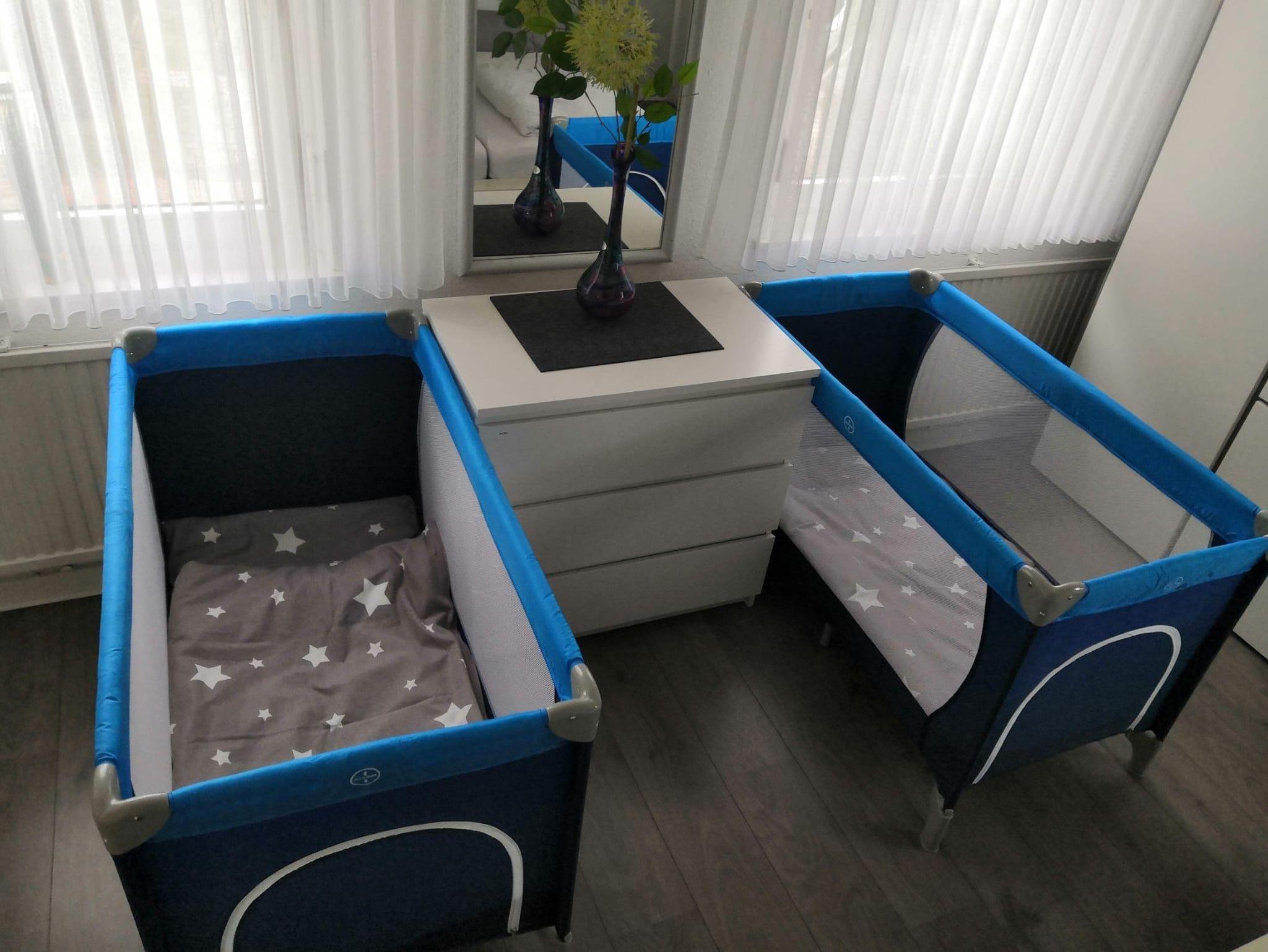 Betten für 2 Personen: ein Doppelbett/Boxspringbett (180x200) im Schlafzimmer. Beim Bedarf kann auf Nachfrage 1 Babyreisebett mit Decke, Kissen und Bettwäsche (0-3 Jahre) mit einmaligem Aufpreis von 15€ zur Verfügung gestellt werden.