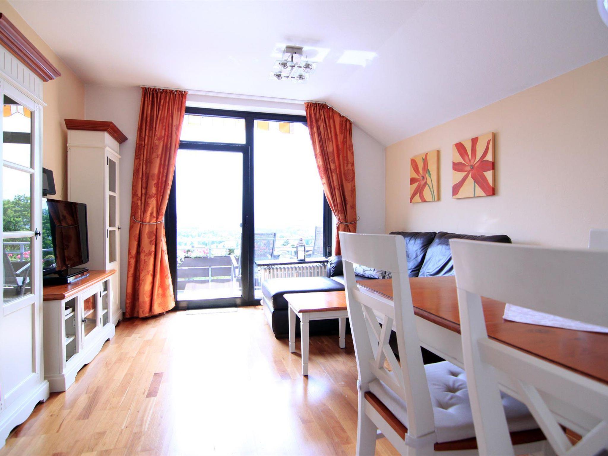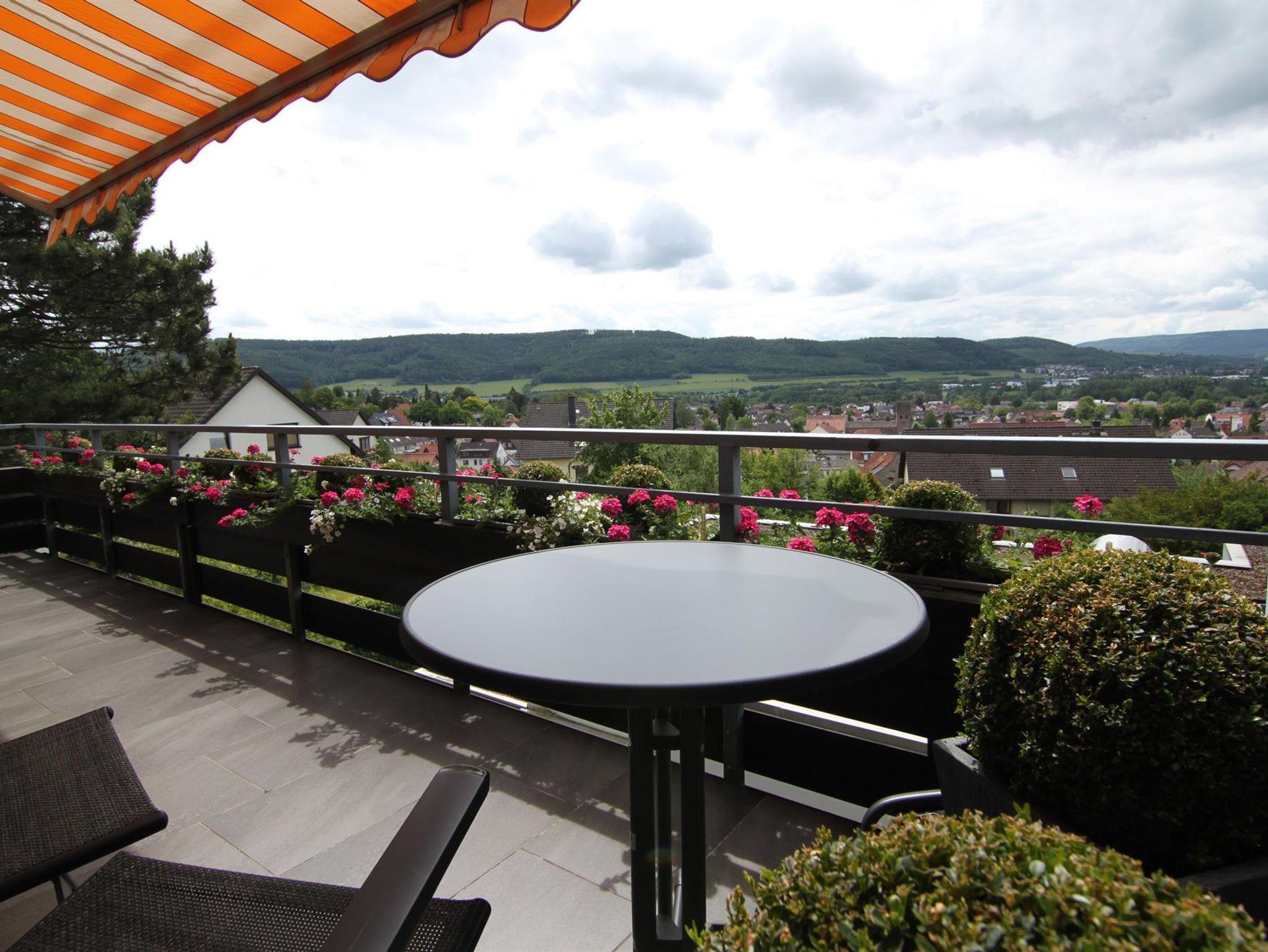 Die attraktive, modern eingerichtete ca. 50 qm große 4*Ferienwohnung hat einiges zu bieten: Panoramablick über das gesamte Pyrmonter Tal, eine hochwertige Einrichtung, WLAN und Telefon kostenlos, Kirschbaum-Echtholzparkett, LED-Falch-TV, Stereo-Anlage, Granit-Bad mit Dusche/Whirlpoolwanne, einen ca. 14 qm-Südbalkon, Einbauküche mit Geschirrspüler, Schlafzimmer mit Doppelbett, Bettdecken in der Komfortgröße 155 x 220 u.v.m.