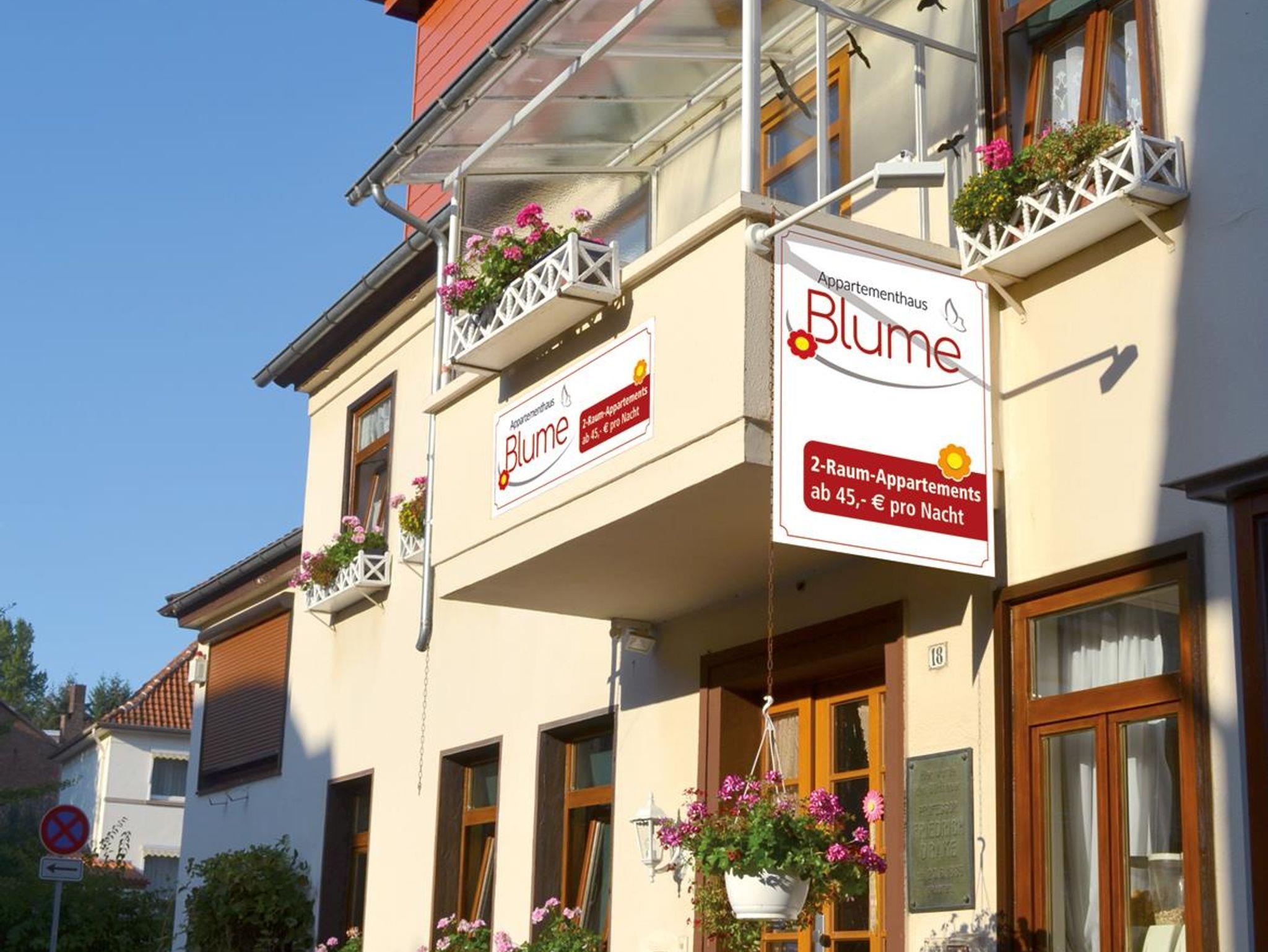 Fühlen Sie sich wohl in modern und individuell eingerichteten 2-Appartements mit DU oder Bad/WC, TV, Schlafzimmer, Wohnzimmer und teilweise Balkon. Erleben Sie unsere herzliche Willkommenskultur und das besondere Ambiente der Blume. Trotz zentraler Lage können Sie bei uns herrlich ruhig schlafen, denn die Blume liegt in einer Sackgasse ohne Durchgangsverkehr. Drei Cafés für ein gutes Frühstück in unmittelbarer Nähe. Parkplätze vorhanden.
