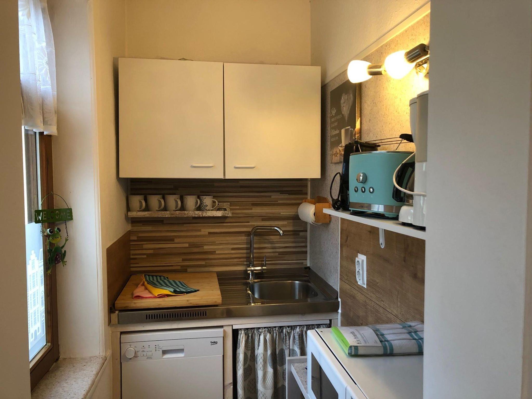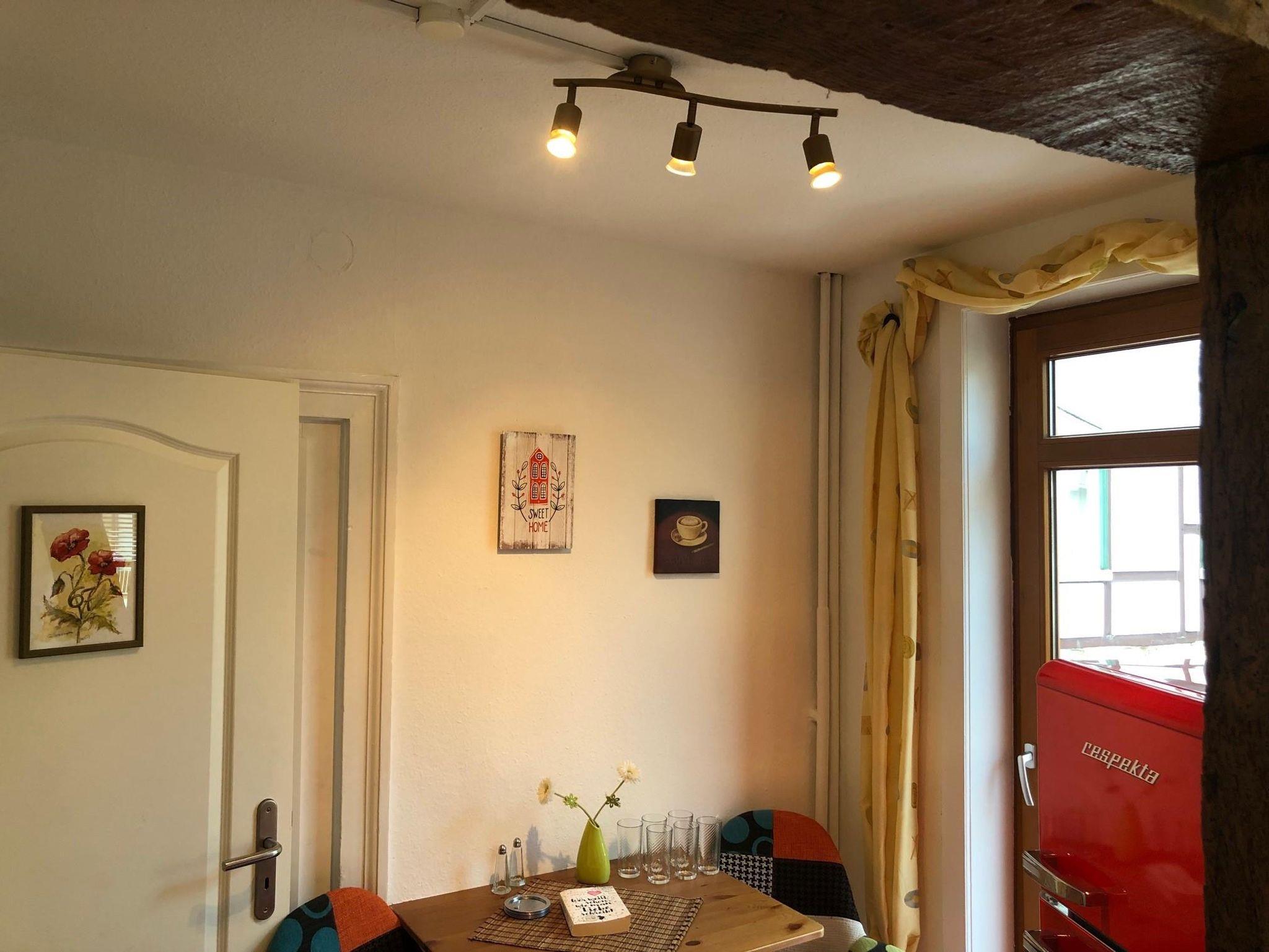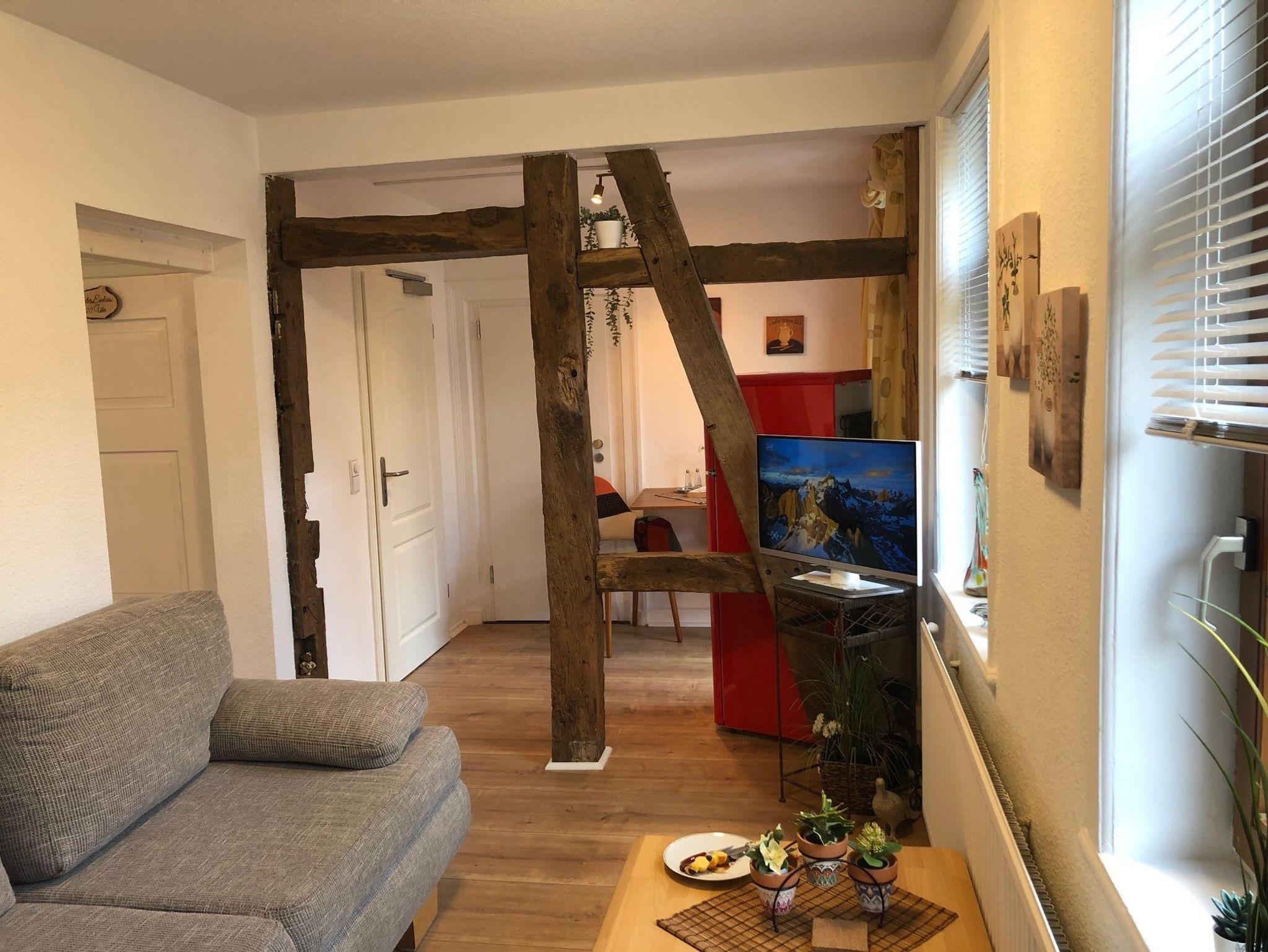 Das 2-Raum Appartement Nr. 67 liegt in der 1. Etage und verfügt über ein großes Schlafzimmer mit Doppelbett, einen Wohnraum, einen Essplatz, eine kleine Küche mit Geschirrspüler, ein Badezimmer mit Du/WC und zwei Balkone mit Gartenmöbeln. TV im Wohnzimmer und auch im Schlafzimmer bieten Abwechslung. Das Appartement wurde Anfang 2022 fertiggestellt und ist komplett neu eingerichtet. Es besticht durch sein offenes Fachwerk im Wohnraum, seine behagliche Atmospähre und der mit sehr viel Liebe zum Detail gewählten Einrichtung. Die Balkone sind überdacht und können daher auch bei einem leichten Sommerabend genutzt werden. Ideal für einen Kur- oder Urlaubsaufenthalt oder auch für eine längere Geschäftsreise gibt es im Appartementhaus Blume eine Waschmaschine sowie einen Trockner zur eigenen Benutzung gegen eine kleine Gebühr. Ihr Auto steht auf den hauseigenen Parkplätzen entweder direkt am oder hinter dem Haus.
