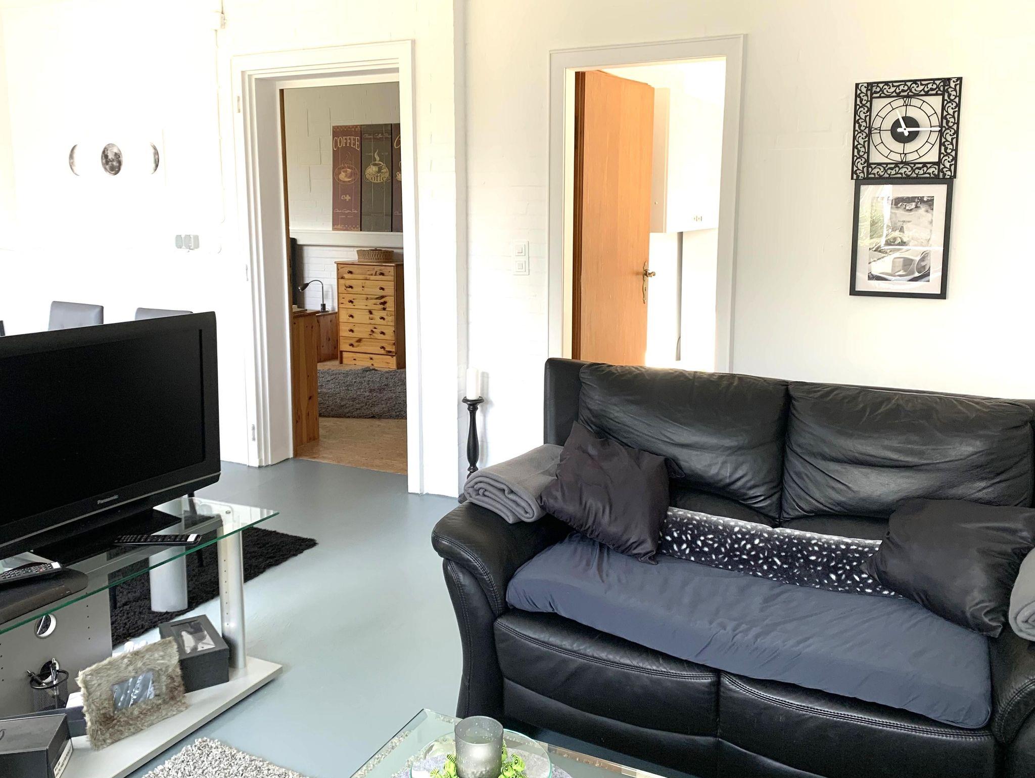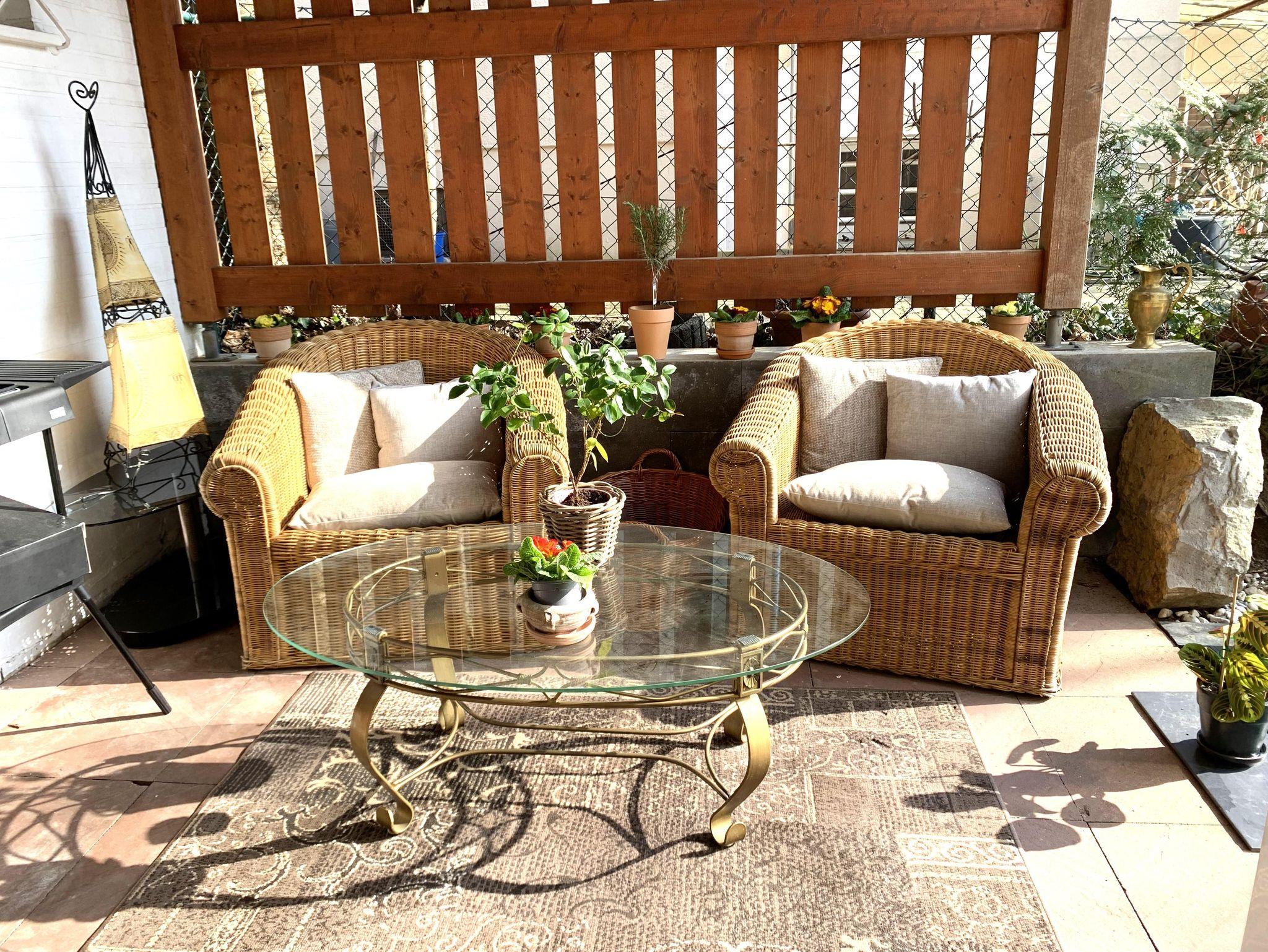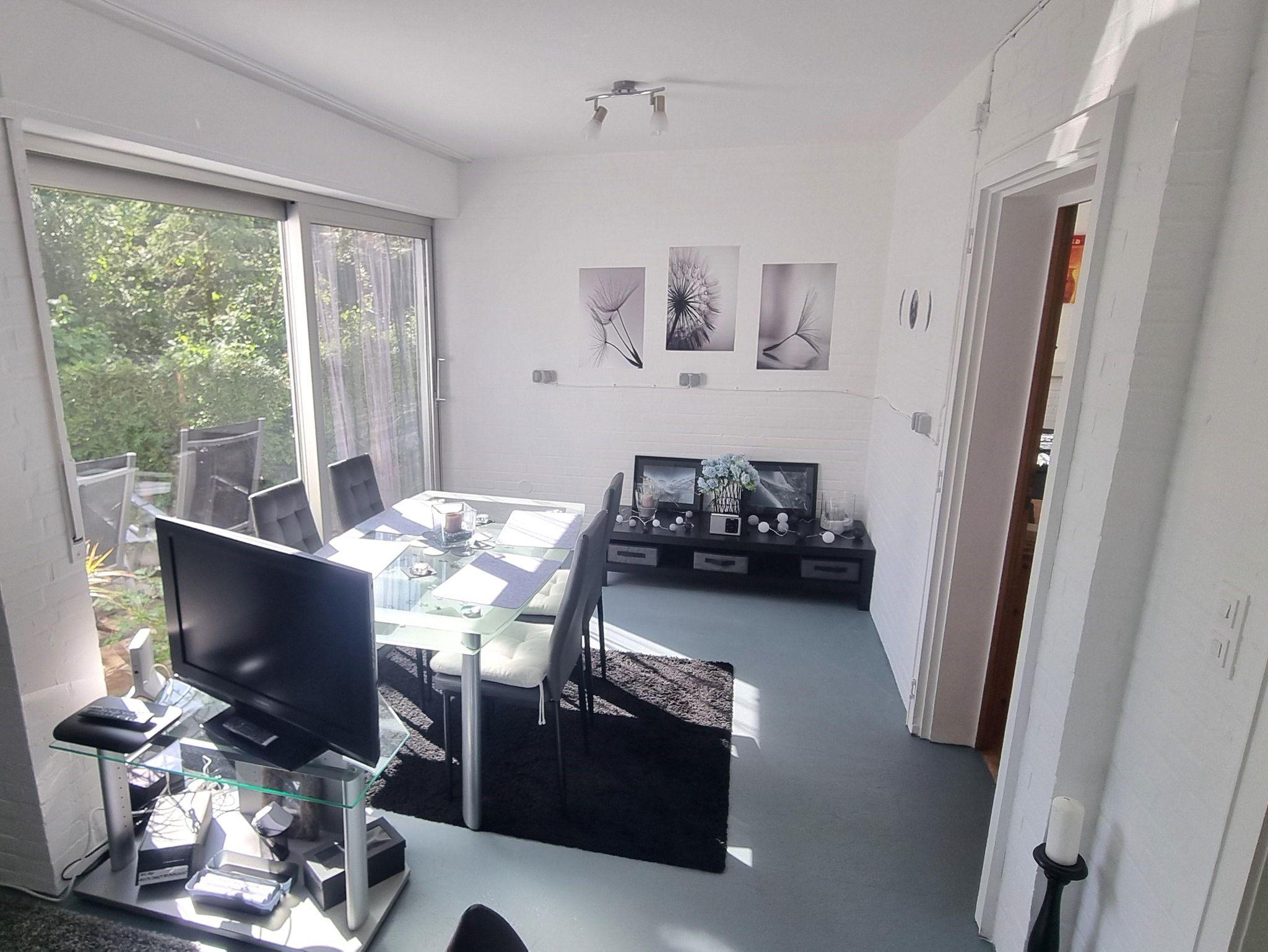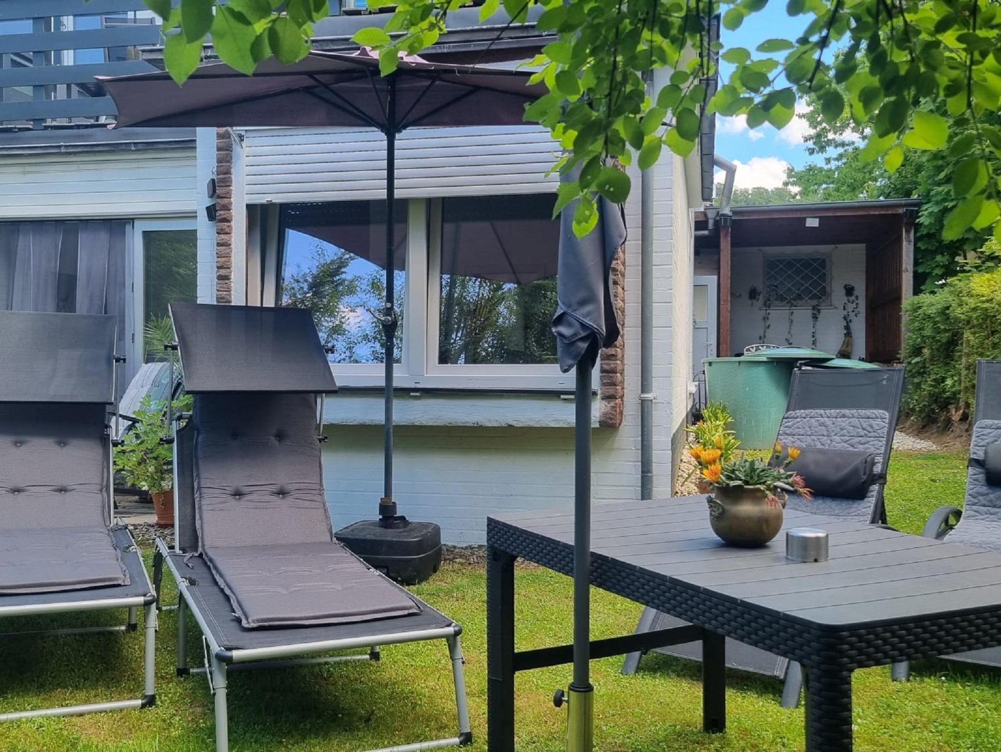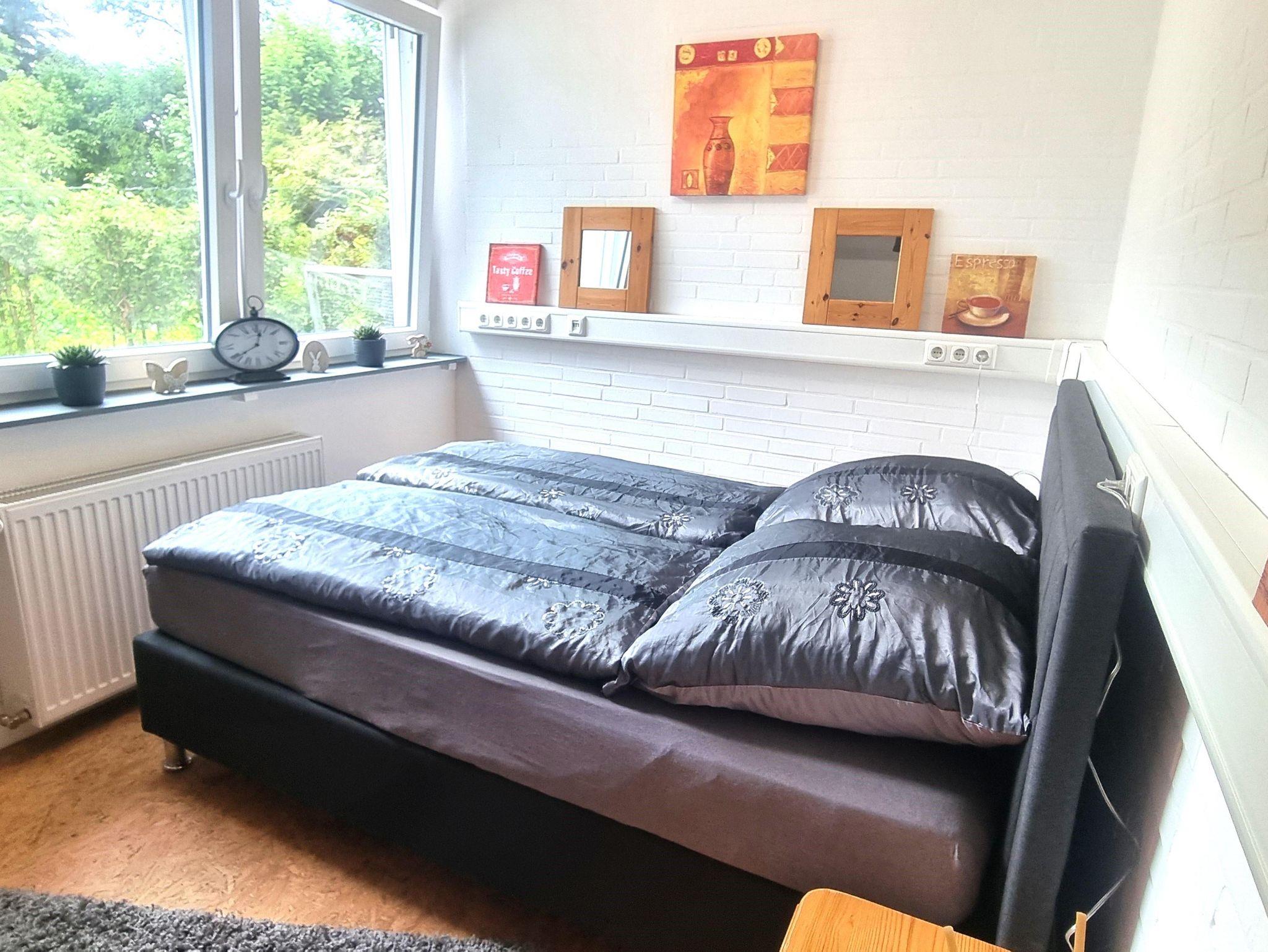 Die liebevoll und modern eingerichtete Parterrewohnung empfängt Sie mit einem separaten Eingang, den Sie über einige Treppenstufen erreichen. Beim Betreten gelangen Sie in den Eingangsbereich mit Garderobe, wo auch Reinigungsmittel, ein LAN-Anschluss für Ihren Laptop, ein Kinderhochstuhl sowie zwei mobile Zustellbetten für den 3. und 4. Gast bereitstehen. Direkt anschließend befindet sich das Badezimmer mit Dusche. Über eine Treppenstufe führt der Weg in das helle Schlafzimmer mit großem Fenster. Hier sorgt ein hochwertiges 1,40 x 2 m Boxspringbett für erholsamen Schlaf. Die Betten sind frisch bezogen, Hand- und Geschirrtücher liegen für Sie bereit. Vom Schlafzimmer aus gelangen Sie entweder in die maßgefertigte, voll ausgestattete Küche mit großem Fenster oder in das lichtdurchflutete Wohn-/Esszimmer.Die Küche bietet alles, was Sie zum Kochen brauchen: Spülmaschine, Herd, Mikrowelle, Kühl-Gefrier-Kombi, zahlreiche Küchenutensilien sowie Kaffeemaschine, Wasserkocher, Standmixer und Toaster. Ein Mülltrennungssystem, Handstaubsauger und Feuerlöscher sind ebenfalls vorhanden. Das großzügige Wohn-/Esszimmer ist der hellste Raum der Wohnung. Ein doppelflügeliges Fenster und eine bodentiefe Glasschiebetür zur Sonnenseite lassen viel Licht herein. Die mobilen Zustellbetten können flexibel platziert werden – im Esszimmer, im Vorraum oder zusätzlich im Schlafzimmer. Im Wohnzimmer laden zwei bequeme Ledersofas mit weichen Auflagen zum Entspannen ein. Ein Couchtisch, ein TV , ein Radio, sowie ein Standventilator sorgen für zusätzlichen Komfort. Ein Essbereich mit großem Glastisch für alle Gäste ist auch vorhanden. Dank des ebenerdigen Zugangs zur eigenen Terrasse und dem angrenzenden Garten fühlt sich die Wohnung wie ein kleines Ferienhaus an. Von etwa 10:00 bis 17:00 Uhr genießen Sie hier auf den Gartenliegen entspannte Sonnenstunden. Die ruhige, nach hinten gelegene Lage garantiert Erholung inmitten der Natur.