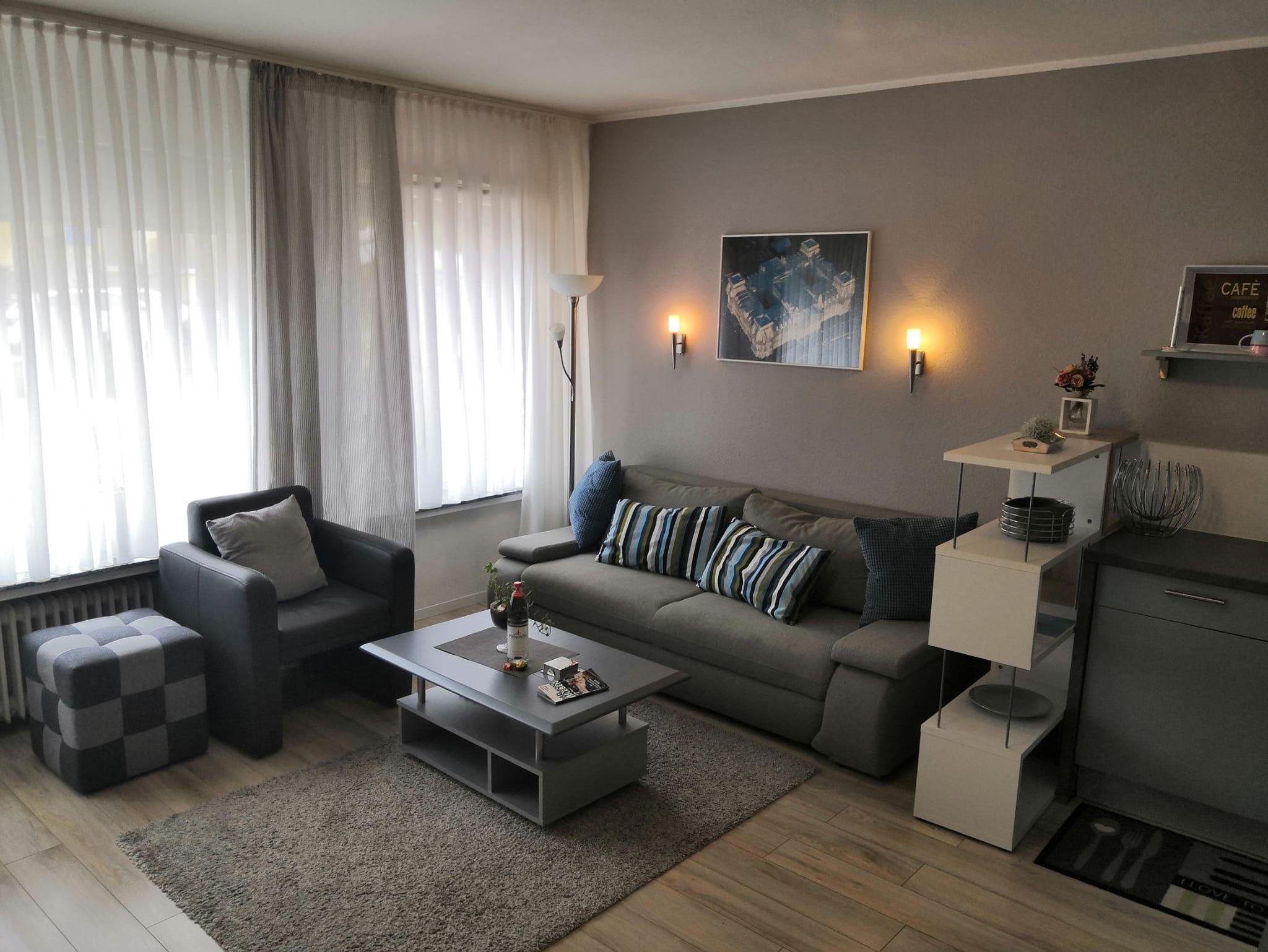 Appartement 1 Diese von jüngeren und älteren Gästen, sowie Familien beliebte Ferienwohnung 2 ZiB (43 qm) mit Schlaf-&Wohnzimmer, Wohnküche befindet sich im Erdgeschoß. Ist zusätzlich barrierefrei durch den Hofeingang zu erreichen. Sie gelangen zunächst ins große Wohnzimmer, in dem sich eine etwas größere Wohnküche mit einem Essplatz für 4 Personen befindet.