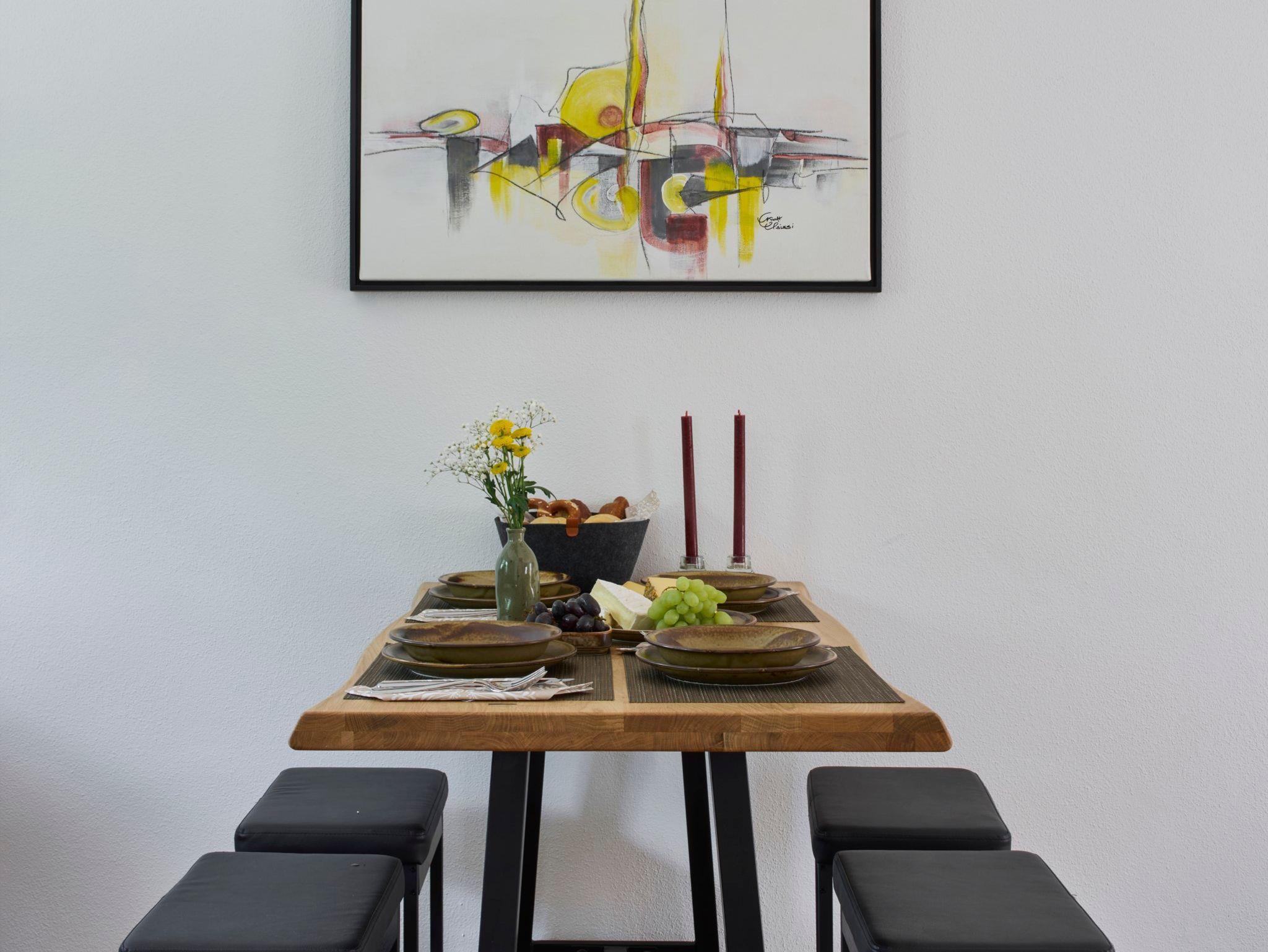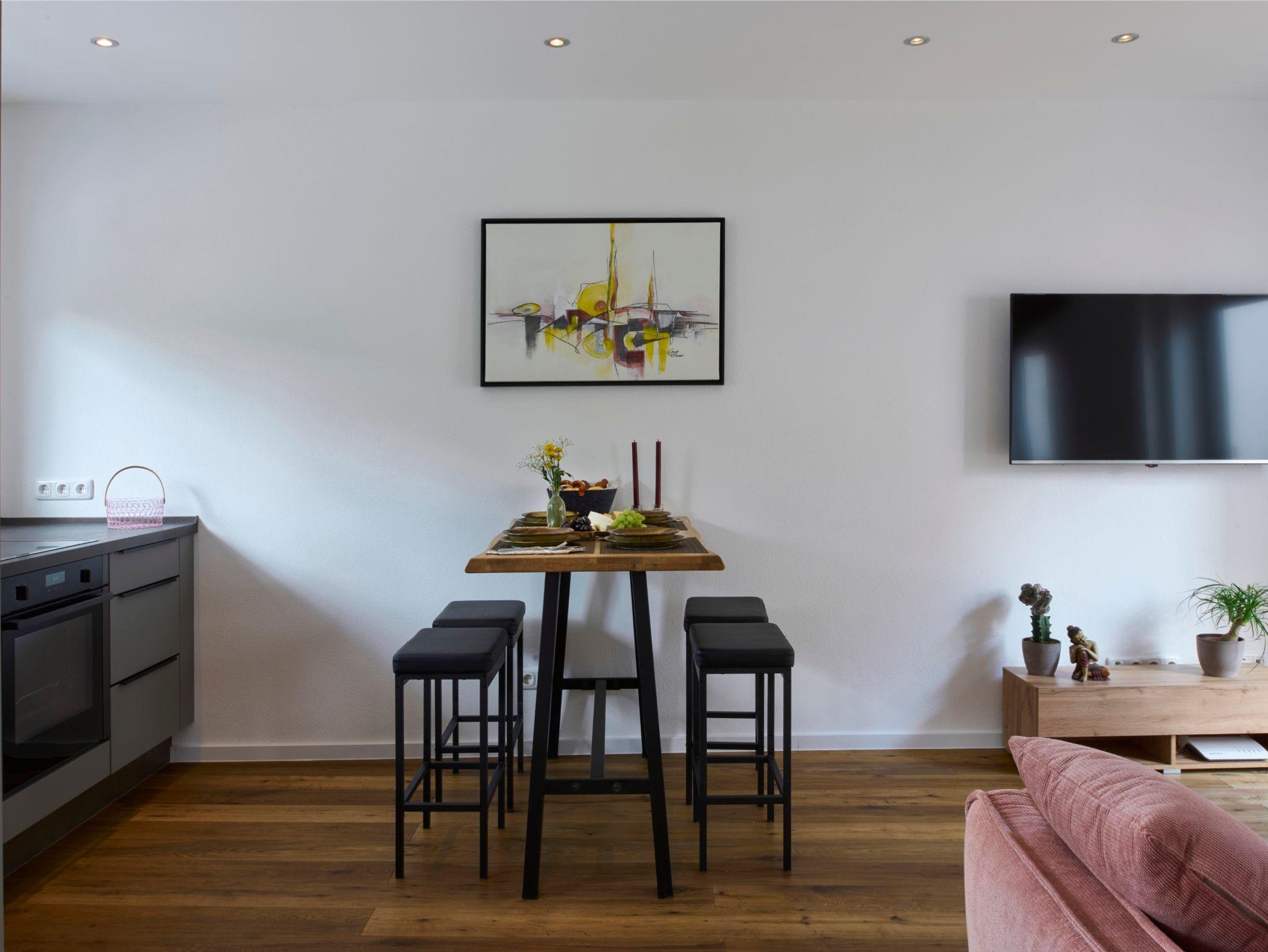 Willkommen in unserem gemütlichen und voll ausgestatteten Ferienhaus! Dieses Haus verfügt über Fußbodenheizung, die in jedem Raum individuell regulierbar ist. Die Böden sind mit Echtholzparkett ausgestattet, mit Ausnahme des Badezimmers. Im Erdgeschoss finden Sie eine moderne Einbauküche mit Geschirrspüler, Backofen und Kühl-Gefrierkombination. Im Wohnzimmer steht eine komfortable 3-Sitzer-Boxspring-Couch zur Verfügung. Von hier aus gelangen Sie auf die schöne Holzterrasse mit Tisch, Stühlen und Sonnenliegen. Im Wohn. und im Schlafzimmer befindet sich ein Flachbildfernseher. Im ersten Stock befindet sich das Badezimmer mit ebenerdiger Regenbrause, Handbrause, WC, Waschtischanlage und Föhn. Das Schlafzimmer verfügt über ein gemütliches Boxspringbett (180x200 cm) und einen kleinen Balkon mit herrlichem Bergblick, von dem aus Sie sogar die Predigtstuhlbahn sehen können. Willkommen in Ihrem perfekten Rückzugsort in den Bergen!