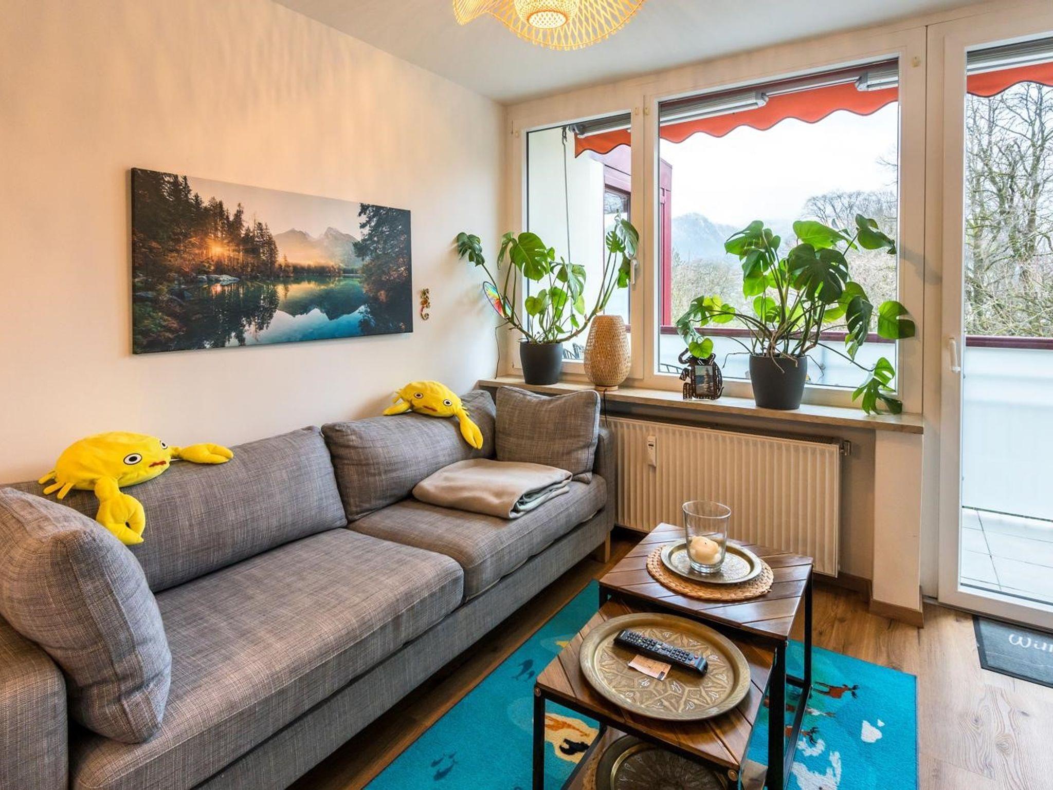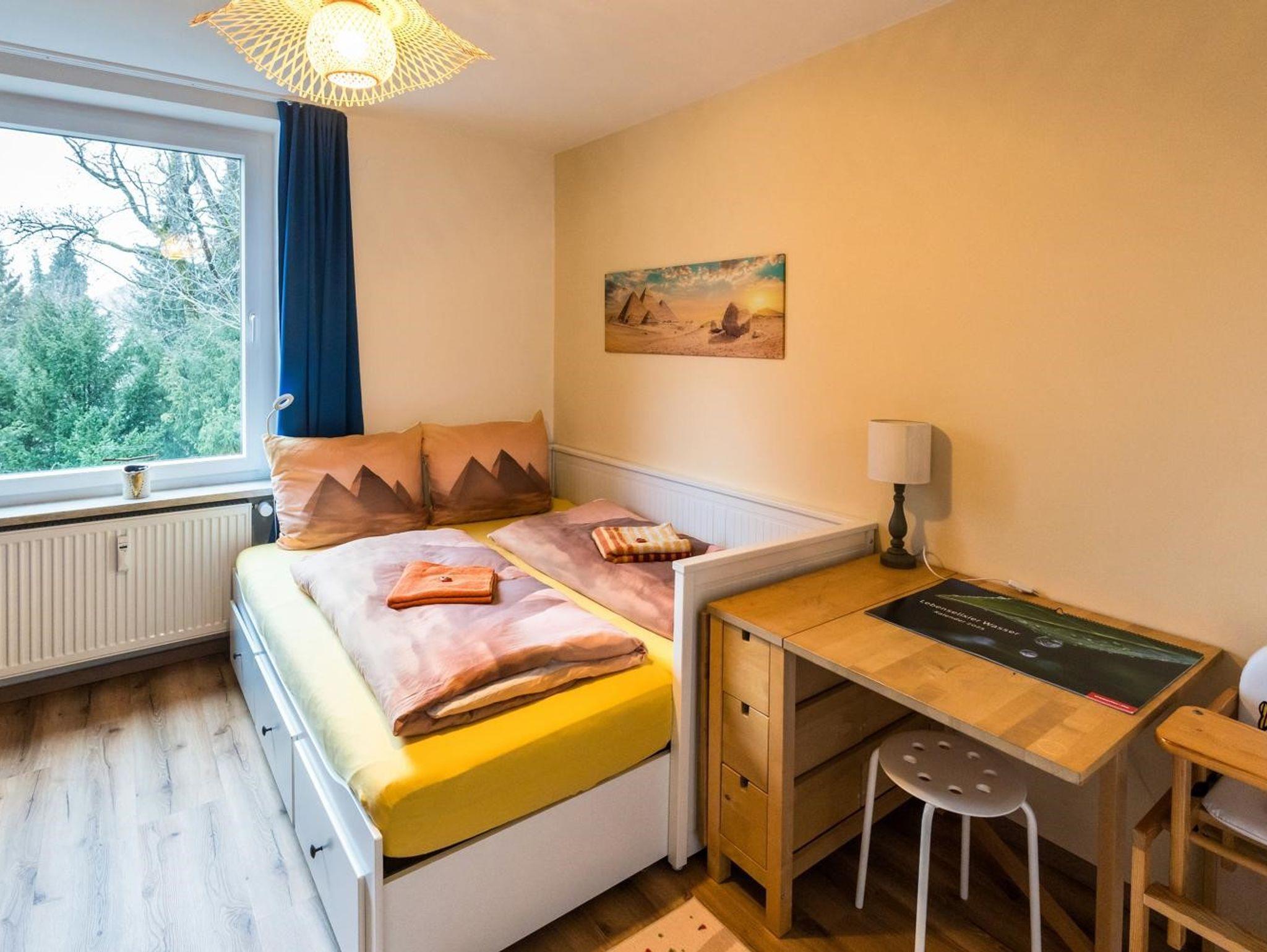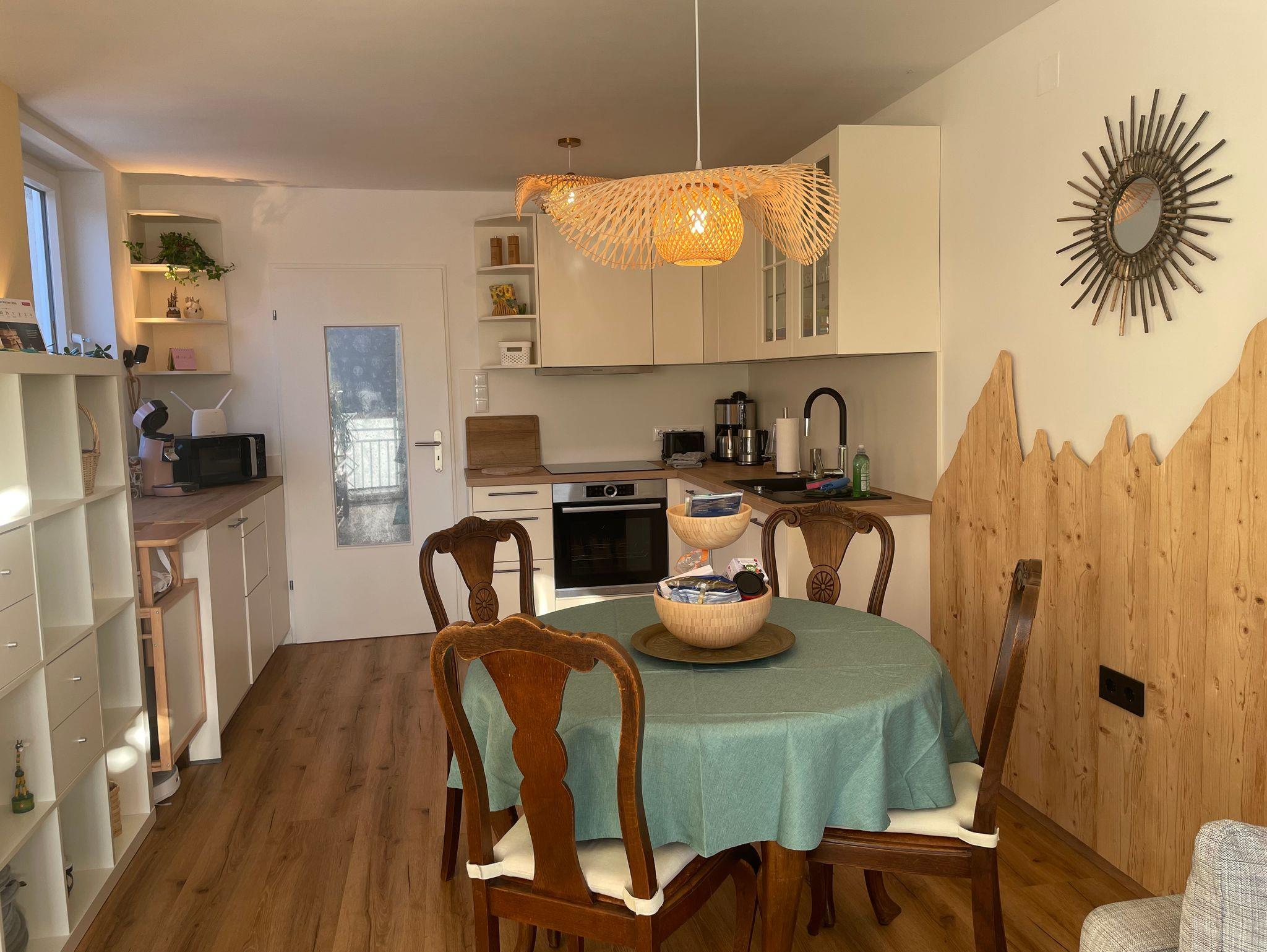 Sie haben die Möglichkeit, Ihr Auto direkt vor der Tür gratis zu parken. Gehen direkt in den dritten Stock des Mehrfamilienhauses, schlupfen in Ihre Leih-Hausschuhe und treten ein in Ihr neues Urlaubs-Zuhause. Es erwarten Sie zwei gemütliche Schlafzimmer, ein gepflegtes Badezimmer mit Dusche, Fön, Handtüchern und neuem Waschtrockner. Das WC ist separat. Das geräumige Wohn-/Esszimmer bietet eine voll ausgestattete neue Küche mit Backofen, Kühlschrank, Geschirrspüler, Mikrowelle, Kaffeemaschine, Wasserkocher. Kaffee und verschiedene Teesorten sind in einer Schublade zu finden. Sie können an dem Küchentisch in gemütlicher Runde zusammen sitzen oder auf der Couch entspannen. Fernseher sowie gratis W-Lan sind vorhanden. Vom Balkon aus können Sie die Aussicht auf den Park und das umliegende Bergland genießen. Außerdem gibt es Spielsachen für Familien und für Ihre Aktivitäten haben wir einen Leihrucksack vorbereitet.