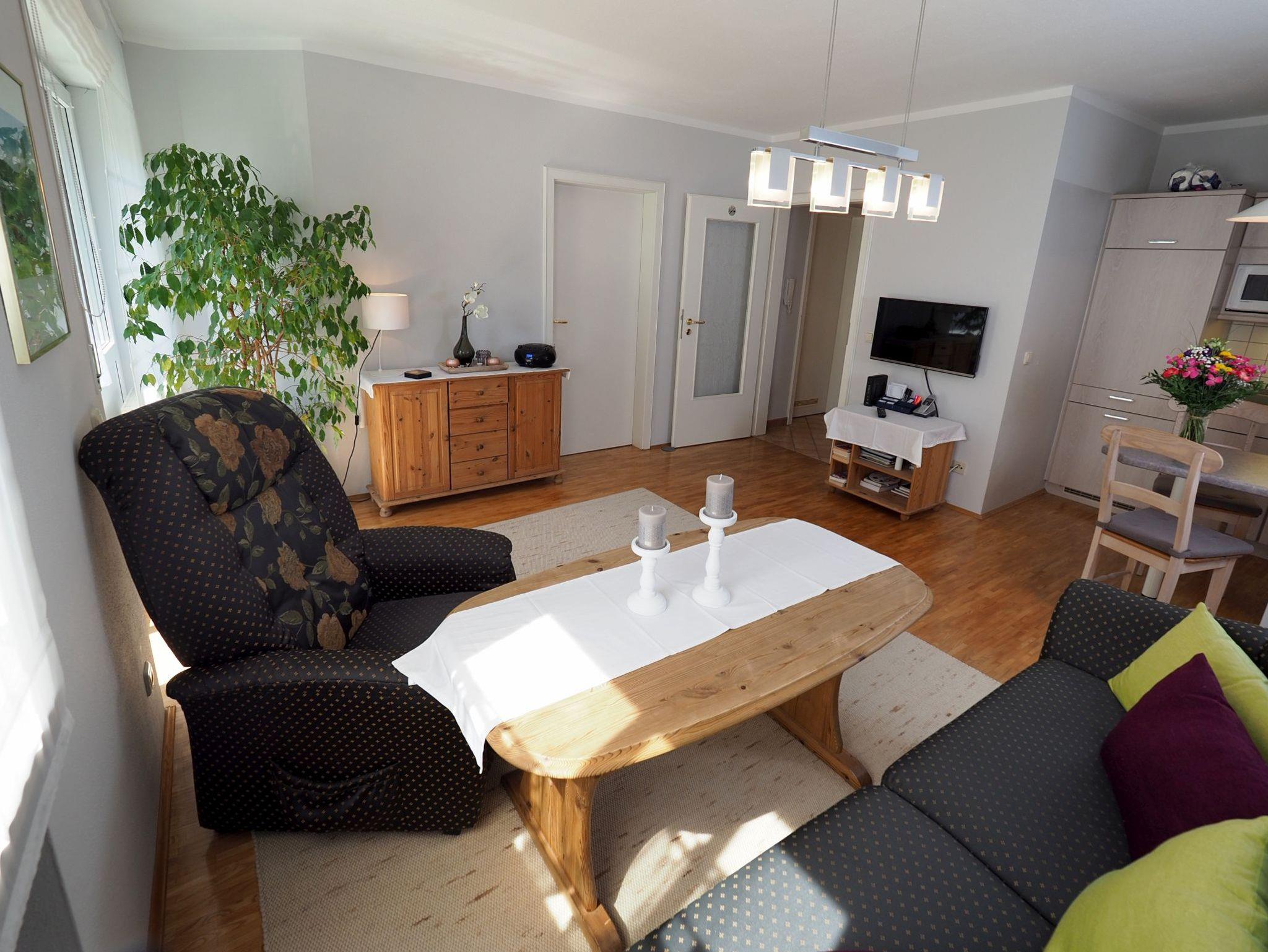 Unsere Ferienwohnung Mittendrin in 83435 Bad Reichenhall, Bahnhofstr. 7 A liegt nahe der Fußgängerzone und Kurpark, jedoch ruhig. Sie befindet sich im etwas zurückliegendem Haus im 1. OG Mitte, mit schönem Gebirgsblick. Die Ferienwohnung ist ca. 45,00 m² groß, Nichtraucher, separates Schlafzimmer, Parkettboden, Radio-CD, Kabel - TV, integrierte Küchenzeile. Waschmaschine und Trockner sind ebenfalls im Haus. Bettwäsche und Handtücher finden Sie in unserer Wohnung vor und sind im Preis enthalten. Die Wohnung verfügt über WLAN, Festnetztelefon und Radio mit CD-Player. Ihnen steht ein abschließbarer Fahrradkeller zur Verfügung. Sollten Sie mit dem PKW anreisen, steht Ihnen im Preis inbegriffen unser Tiefgaragenplatz Nr. 3 zur Verfügung direkt am Haus. Zufahrt von der Wittelsbacher Str. am AOK-Hochhaus. Die Betreuerin unserer Wohnung wohnt in Bad Reichenhall und regelt die Schlüsselübergabe und gibt gern Auskunft auf evtl. Fragen. Die Kontaktdaten werden Ihnen bei der Buchung mitgeteilt. Wir wünschen Ihnen im bezaubernden Bad Reichenhall, das hier und dort noch den Charme der Kurstadt ausstrahlt, einen angenehmen und erholsamen Aufenthalt.