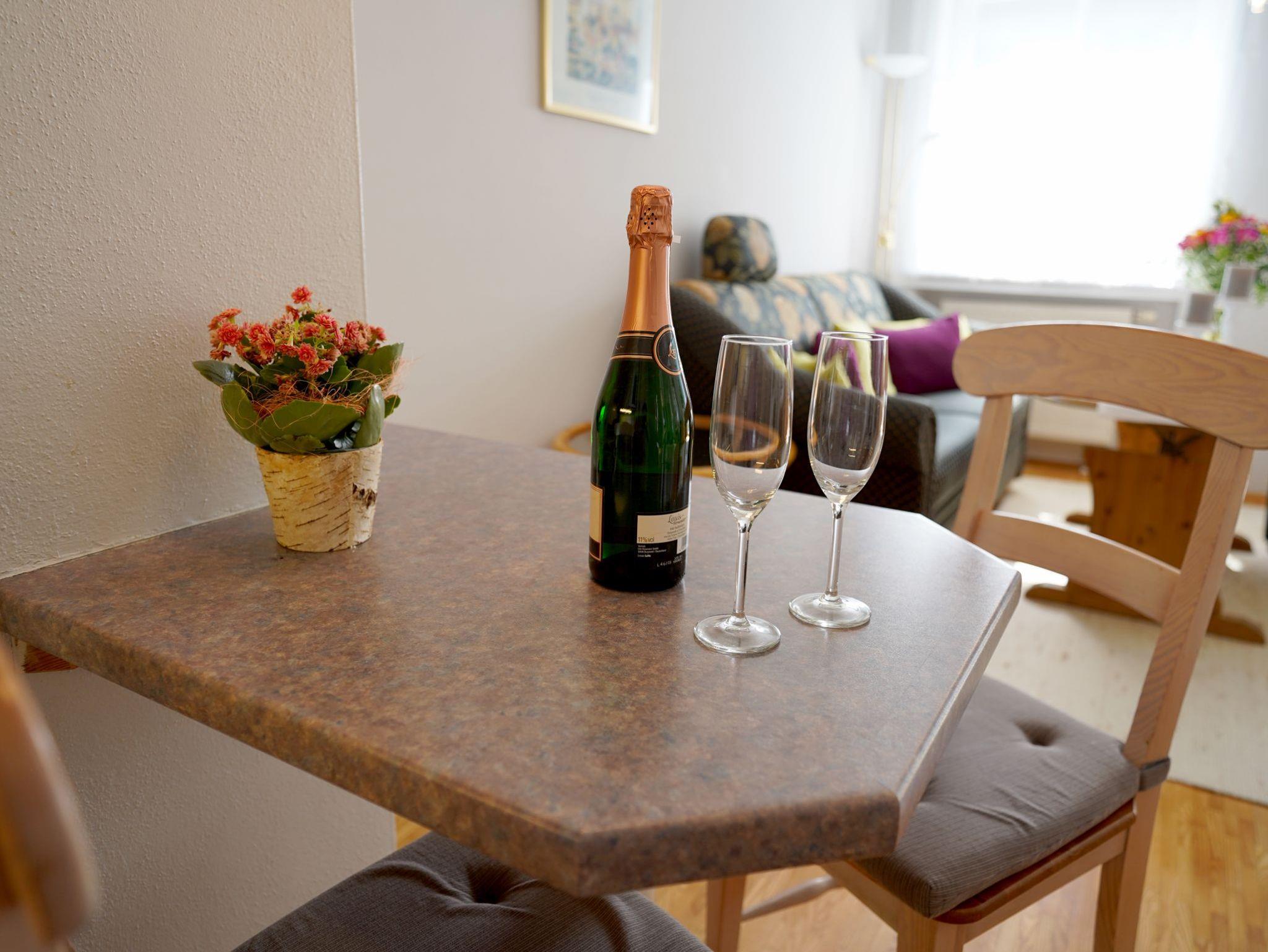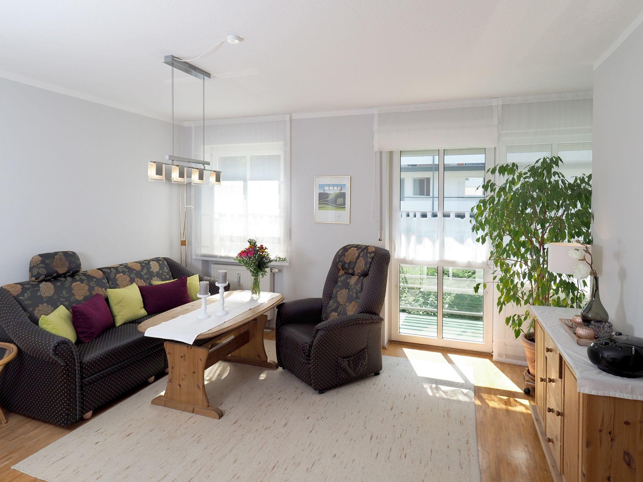 Unsere Nichtraucher Ferienwohnung Mittendrin liegt in der Kurzone I, direkt in der Nähe des Ortenauparks. Die Ferienwohnung ist ca. 45 m² groß und ausgestattet mit einem kleinen Flur, Wohnzimmer mit vollausgestatteter Küchenzeile, kleinem Essplatz und Balkon mit Gartenmöbeln und Sonnenschirm. Vom Wohnzimmer gelangen Sie in das Schlafzimmer mit zwei Liegeflächen von je 1,00 m x 2,00 m. Das Bad verfügt über eine Dusche mit Duschhocker und Pendeltüren zum leichten Ein- und Aussteigen. Wohnzimmer und Schlafzimmer sind mit Parkettfußboden, das Bad und der Flur mit Fliesen ausgestattet.