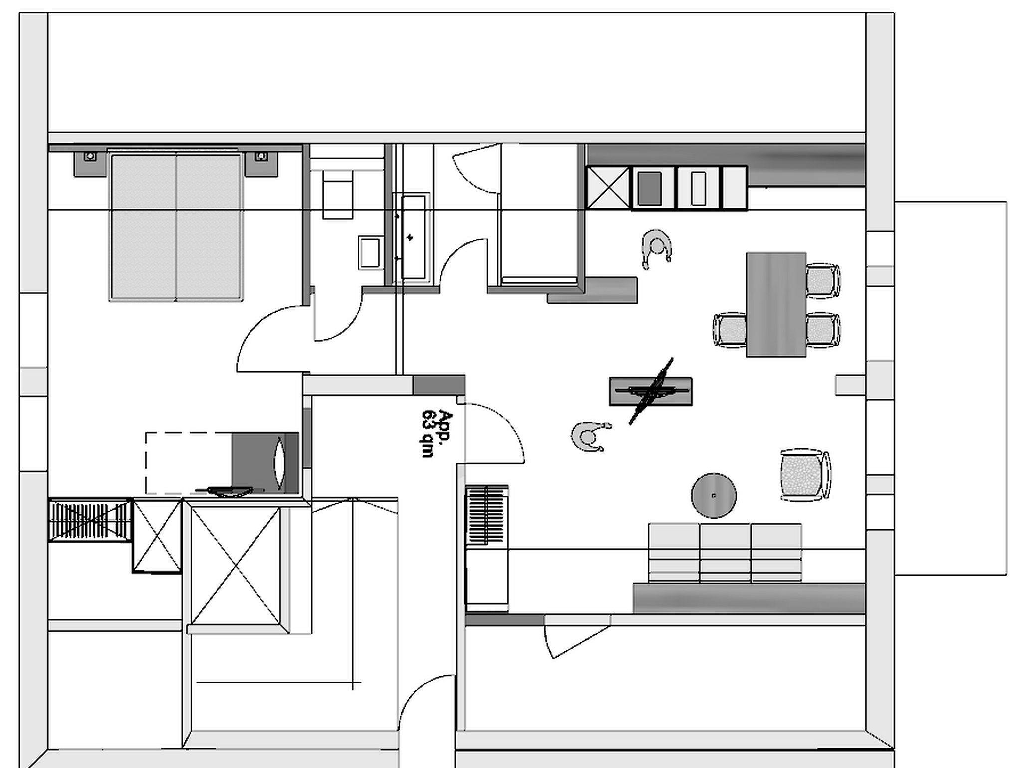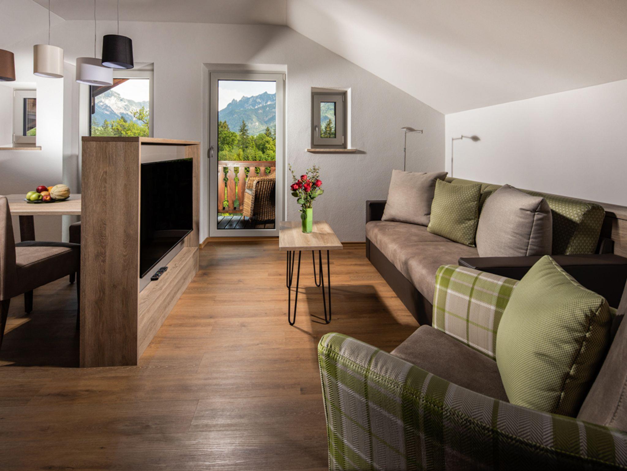 Großzügige, exklusive Wohnung mit lichtdurchflutetem, offenem Wohnraum im Obergeschoss (nicht mit dem Lift erreichbar), dafür aber mit dem besonderen Blick auf den Gablerweiher und den Predigtstuhl.