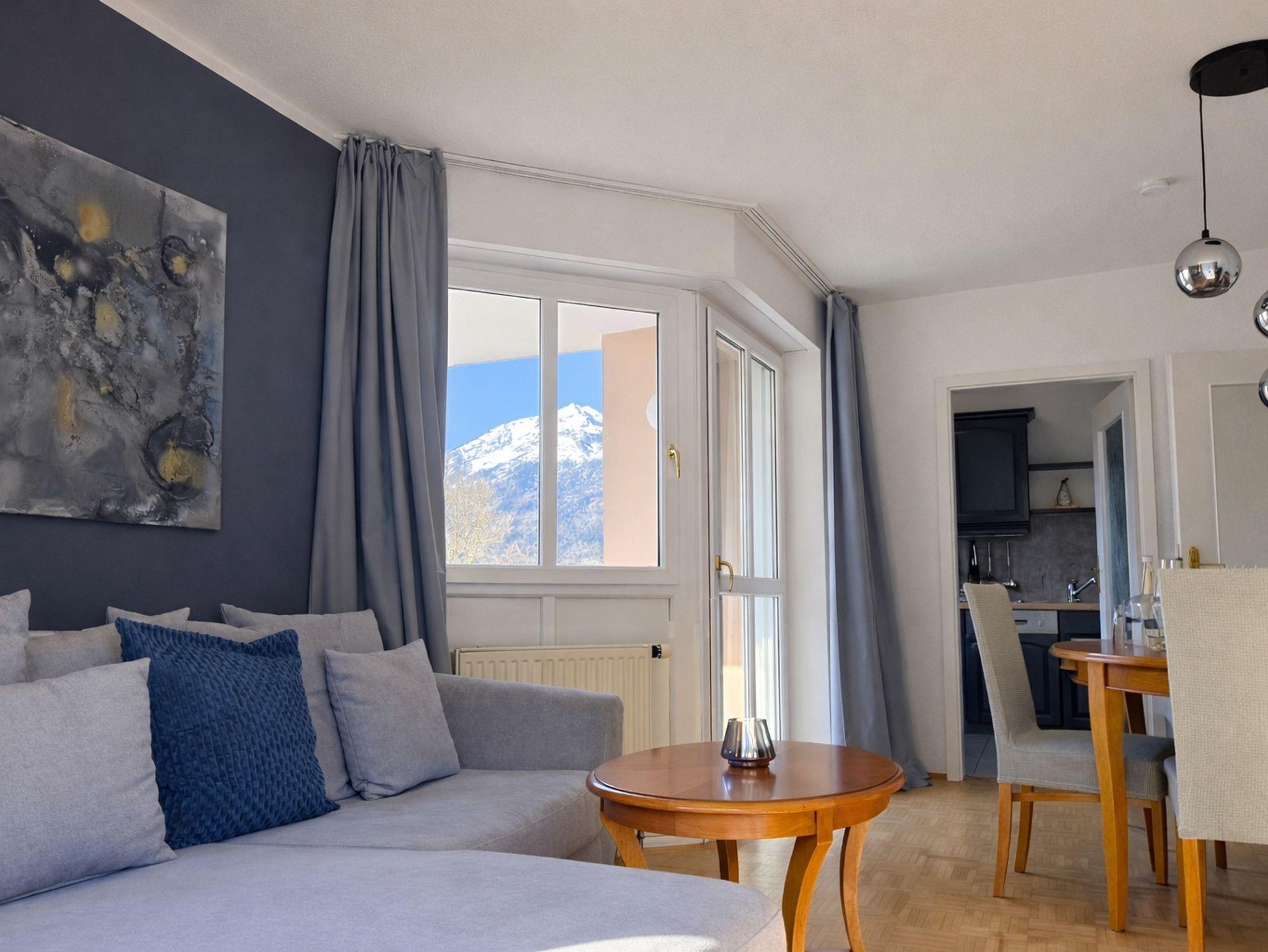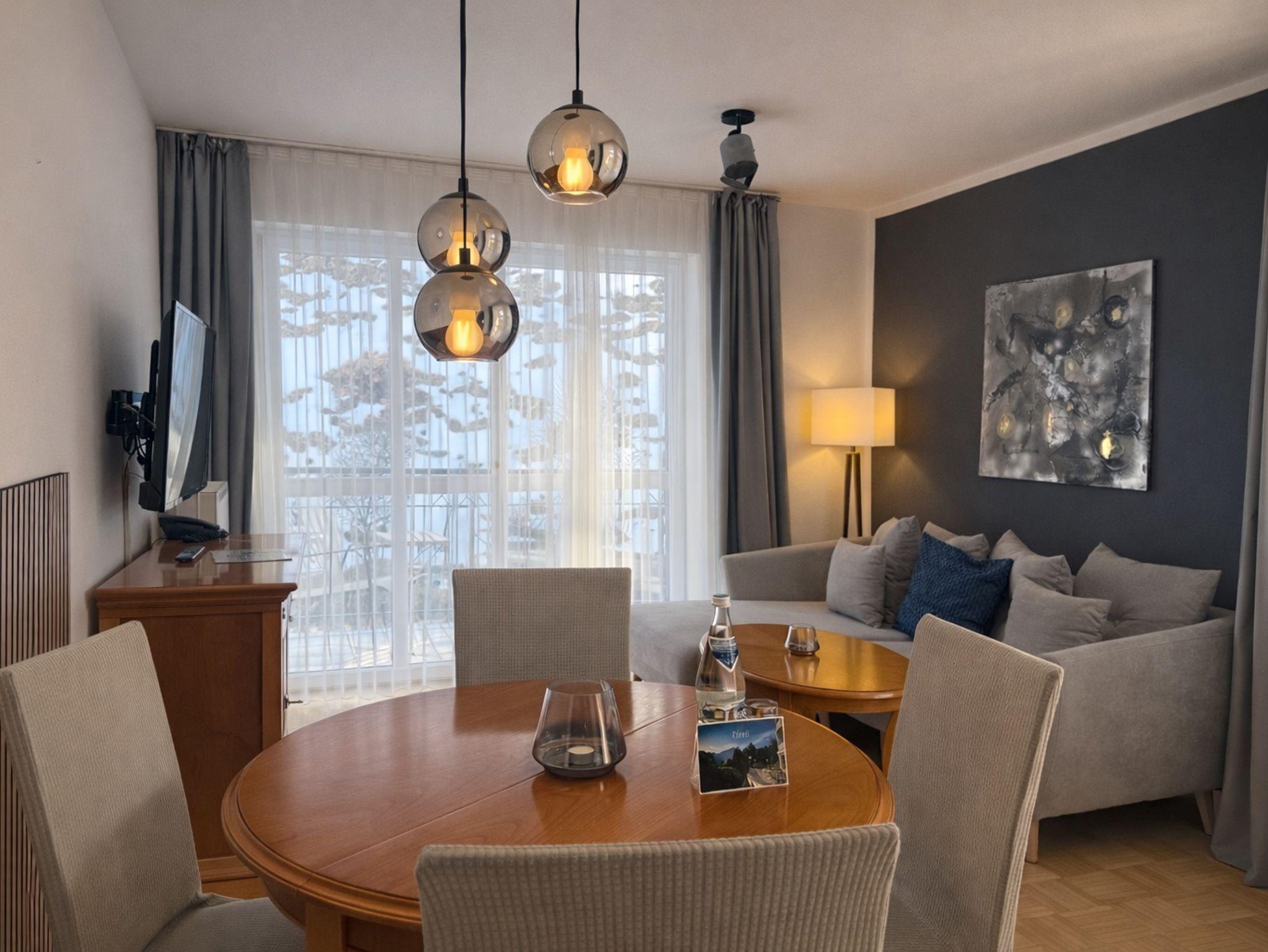 Unser schönes, gemütliches Appartement ist im klassisch- eleganten Stil eingerichtet. Die Wohnung befindet sich im 2. OG und verfügt über ein separates Schlafzimmer mit einem Doppelbett (Boxspringmatratzen - 1,80 x 2,00), ein Wohnzimmer mit Sofa und Essecke, eine gut ausgestattete Küche mit Geschirrspüler, sowie ein Bad mit Dusche/WC. Zur Wohnung gehören 2 Balkone, auf welchen Sie unter anderem auch auf unsere Alpenstadt mit Bergpanorama blicken können.