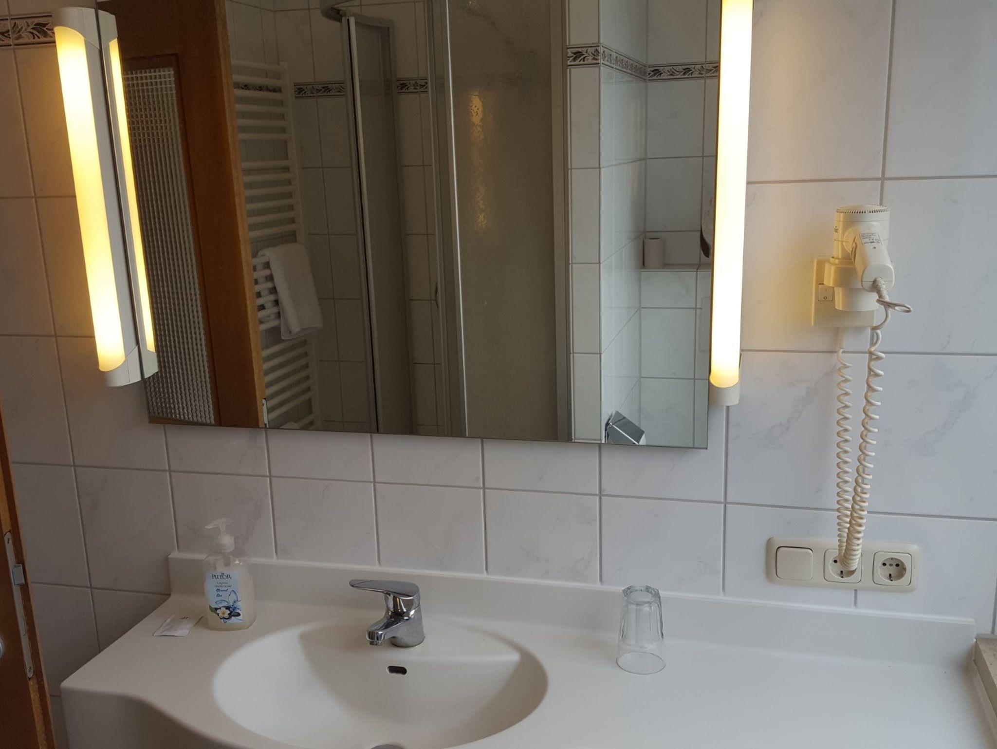 DAS EINZELZIMMER HAT KEINE KÜCHE! Gerne können wir Ihnen bei Bedarf einen kleinen Getränkekühlschrank und einen Wasserkocher hineinstellen. Das Bad verfügt über ein WC, Dusche, Haartrockner und ein Fenster.