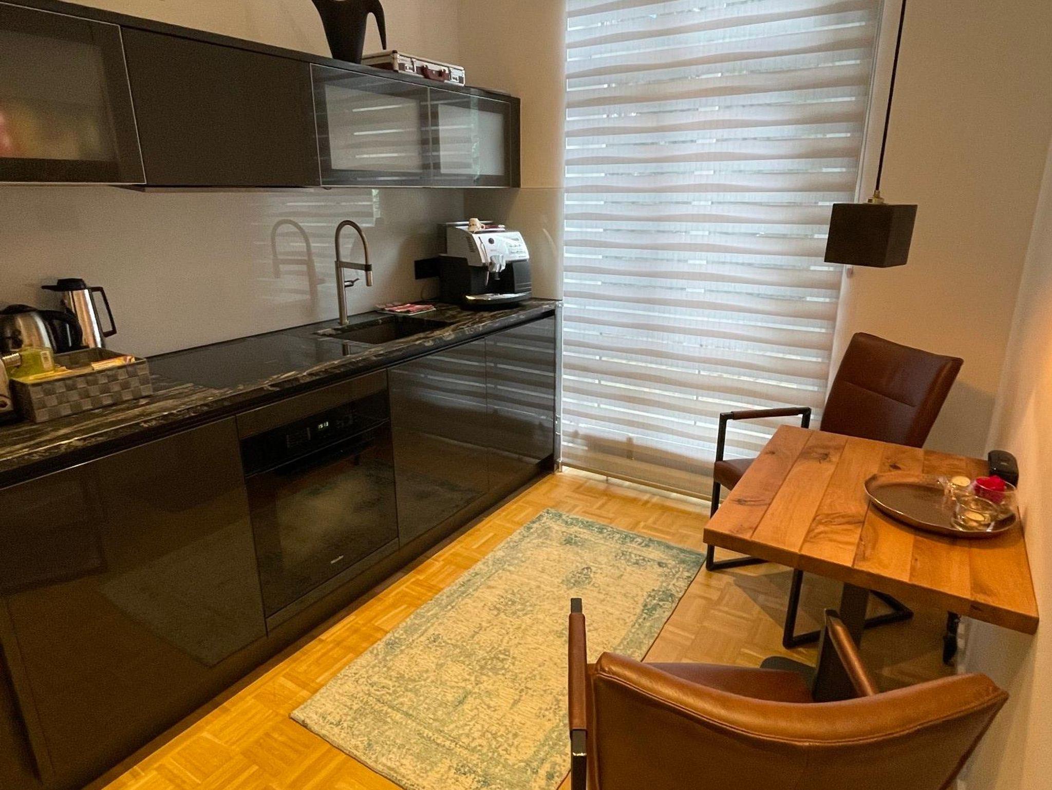 Die geräumige 70 qm große Ferienwohnung ist zentral und dennoch ruhig gelegen und befindet sich in der im Erdgeschoss. Sie ist mit Sorgfalt und Liebe zum Detail eingerichtet, um Ihnen einen Aufenthalt voller Komfort zu bieten. Sie verfügt über ein geräumiges Wohnzimmer mit einer Couch, einem Flachbild-TV und einem separaten Schlafzimmer mit Doppelbett. Die voll ausgestattete Küche mit einem Geschirrspüler, einem Backofen, einer Waschmaschine, einem Toaster und einem Kühlschrank lässt keine Wünsche offen. Von der Terrasse mit Möbeln genießen Sie Gartenblick und können den Abend gemütlich ausklingen lassen. Wir freuen uns, sie bei uns verwöhnen zu dürfen.