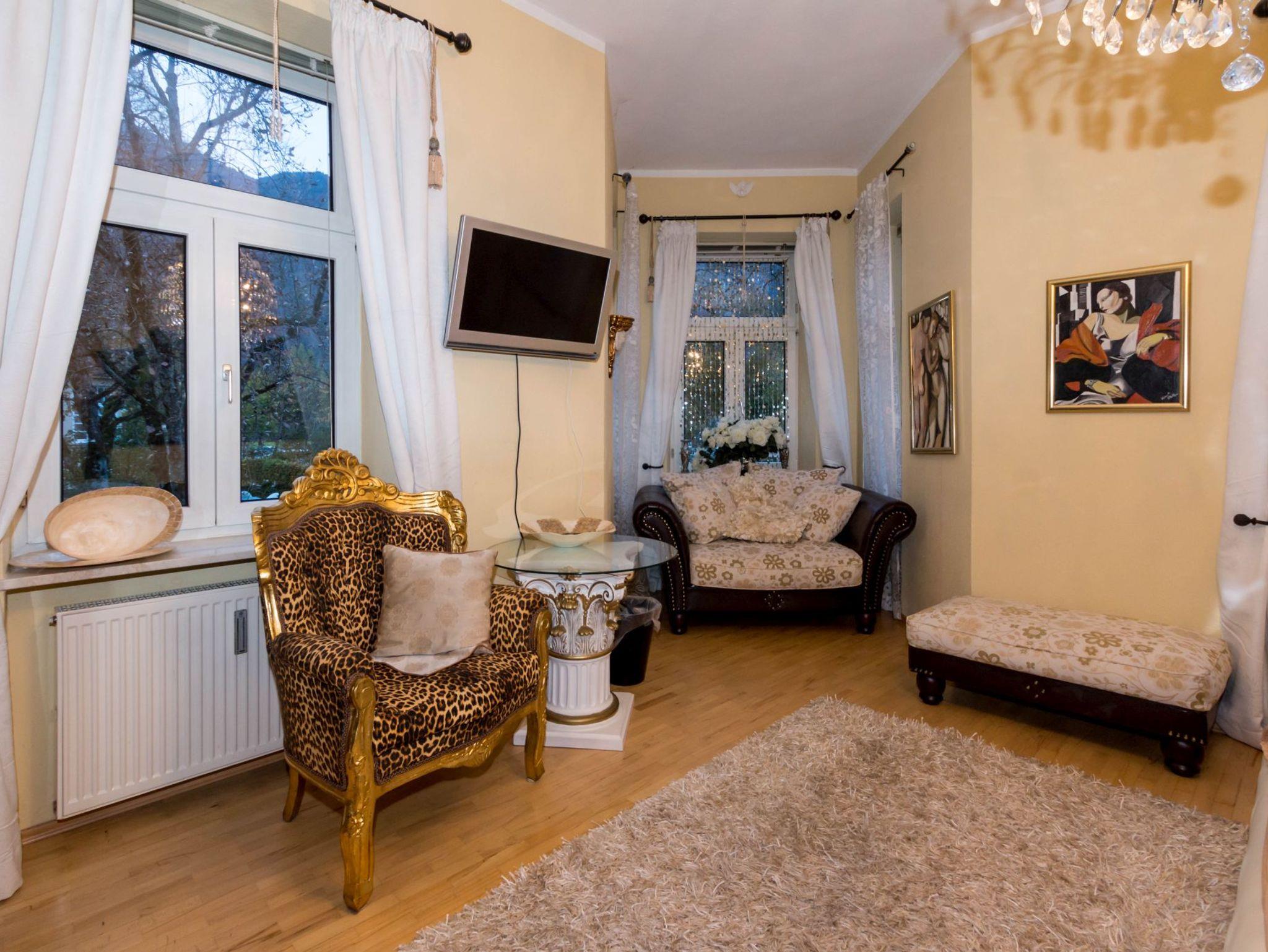 Die 80qm Wohnung im ersten Stock einer herrschaftlichen Villa bieten allen Komfort für Ruhe und Entspannung. Die Zweizimmerwohnung ist im modernen, barocken Stil außergewöhnlich eingerichtet. Die separate Küche ist reichlich ausgestattet, so dass Sie dort mühelos etwas leckeres auf den Tisch zaubern können. Die Betten sind zur Anreise bezogen und Handtücher liegen für Sie parat. Ein großer Fernseher und WLAN bieten Entspannung nach einem Ausflug und an Regentagen. Der Parkplatz steht Ihnen kostenlos auf dem Grundstück zur Verfügung. In nur einer Minute Entfernung gibt es eine Haltestelle für den Citybus, der Sie in die Reichenhaller Innenstadt oder zum Hauptbahnhof bringt. Mit Bus oder Bahn gelangen Sie auch ohne Verkehrs- oder Parkplatzprobleme in die Innenstadt von Salzburg.