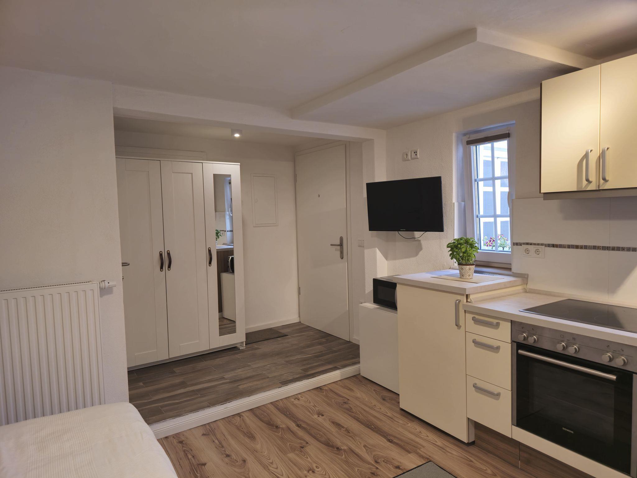 Unsere Ferienwohnung liegt in der historischen Altstadt, sehr zentral und nur vier Minuten zu Fuß von der Fußgängerzone und der Kunstakademie entfernt. Die Wohnung ist in einem historischen Haus aus dem 17. Jahrhundert im ersten Stock gelegen. Sie ist ca. 25 qm groß, mit zwei Fenstern zum ruhigen Innenhof. Man ist in Kürze in der Stadt, aber auch Bahn- und Bushaltestellen (4 Gehminuten) und Einkaufsmöglichkeiten (5 Gehminuten) sind nicht weit entfernt. Der Kurgarten (10 Gehminuten) und die Rupertus Therme (5 Autominuten) sind auch schnell erreichbar. Ebenso ist man in wenigen Minuten in der Natur, also ideal zum Joggen, Radfahren und auch Wandern. Die Ferienwohnung ist hervorragend für ein bis zwei Personen geeignet; auf Anfrage wird auch ein Babyreisebett und Kinderhochstuhl zur Verfügung gestellt. In zentraler und dennoch ruhiger Lage ist die Ferienwohnung somit perfekt für jeden Gast, egal ob Erholungsuchender, Aktivurlauber, oder Kurgast.