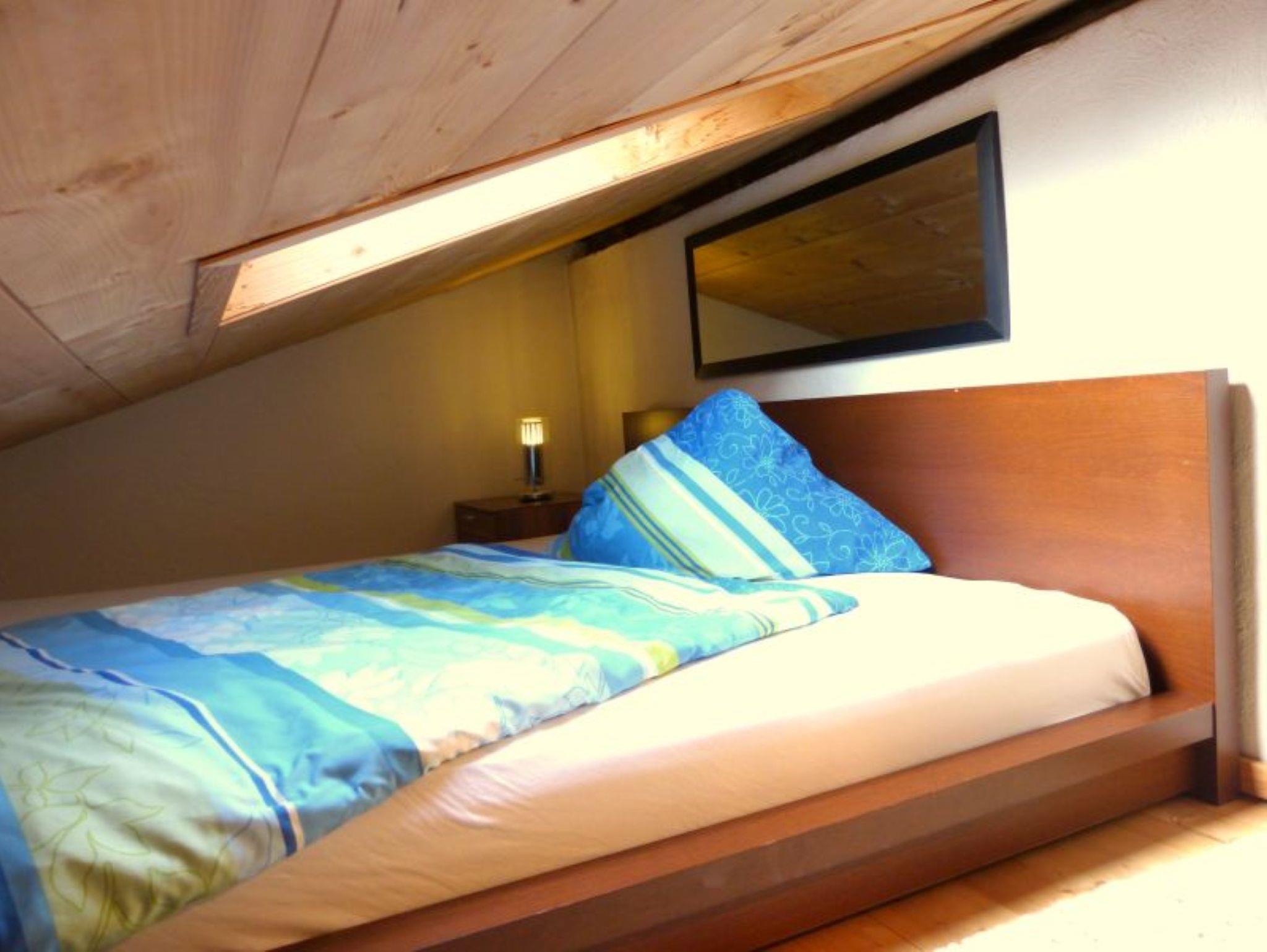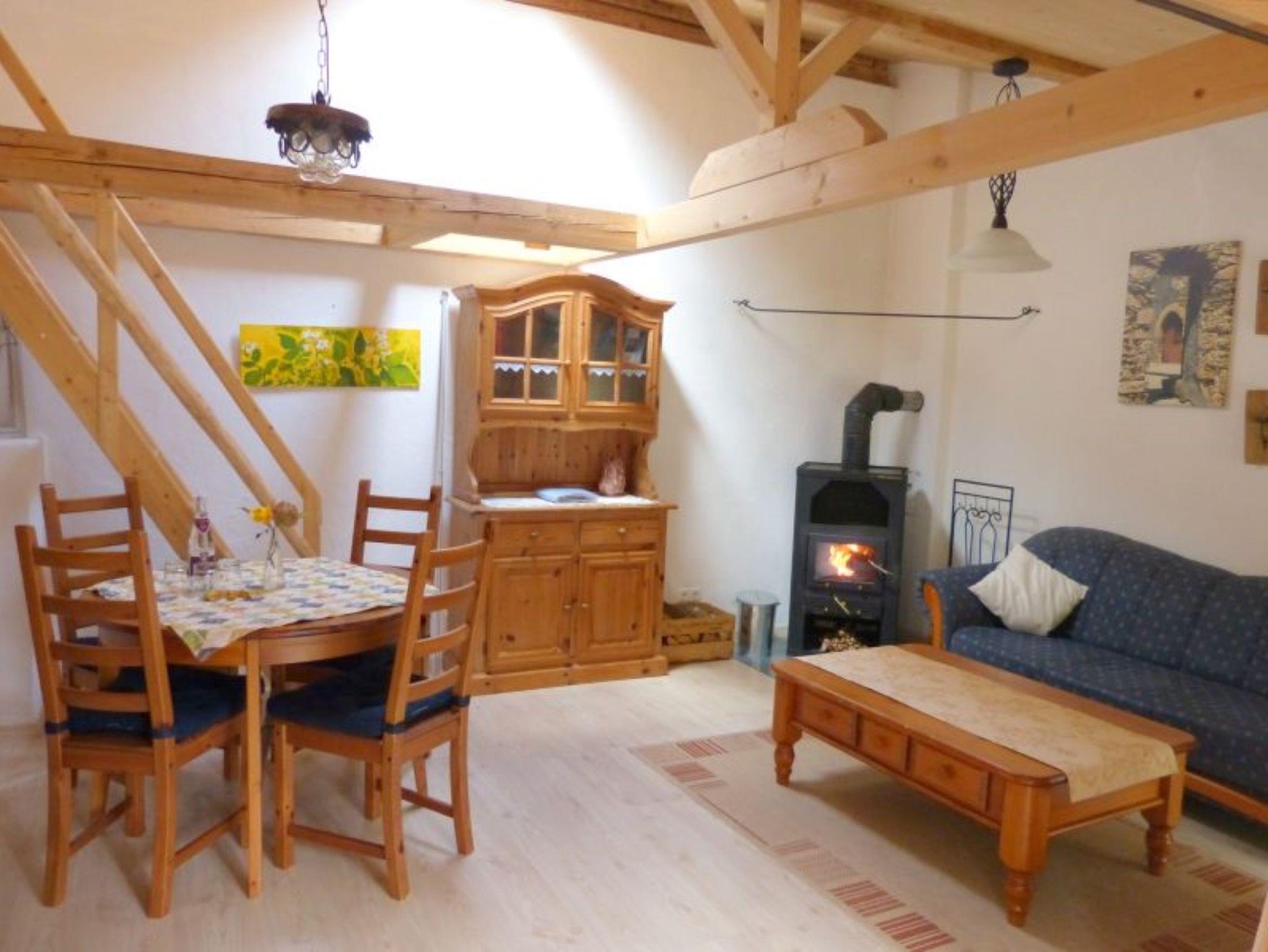 Diese steht Ihnen mit einer Sitzgelegenheit und Grillmöglichkeit zur freien Verfügung um den Blick auf die umliegende Bergwelt genießen zu können. Das gemütliche Wohnzimmer, in dem sich auch der Essbereich befindet, besticht durch eine Einrichtung im Landhausstil und dem Sichtdachstuhl. Der Wohn- und Schlafraum wird mit einer Zentralheizung beheizt. In der voll eingerichteten Küche mit Ceranfeld, Backofen können Sie sich alle Speisen selbst zubereiten. Das gut ausgestattete Bad besitzt eine Dusche, ein Waschbecken, WC und einen Fön. Im separaten Schlafzimmer sorgt ein Doppelbett mit hochwertigen Matratzen für einen erholsamen Schlaf. Ein weiterer Schlafplatz findet sich im großen Doppelbett auf der Empore unter dem Dach, welche über eine Treppe zu erreichen ist. Die Wohnung ist mit W-Lan ausgestattet.
