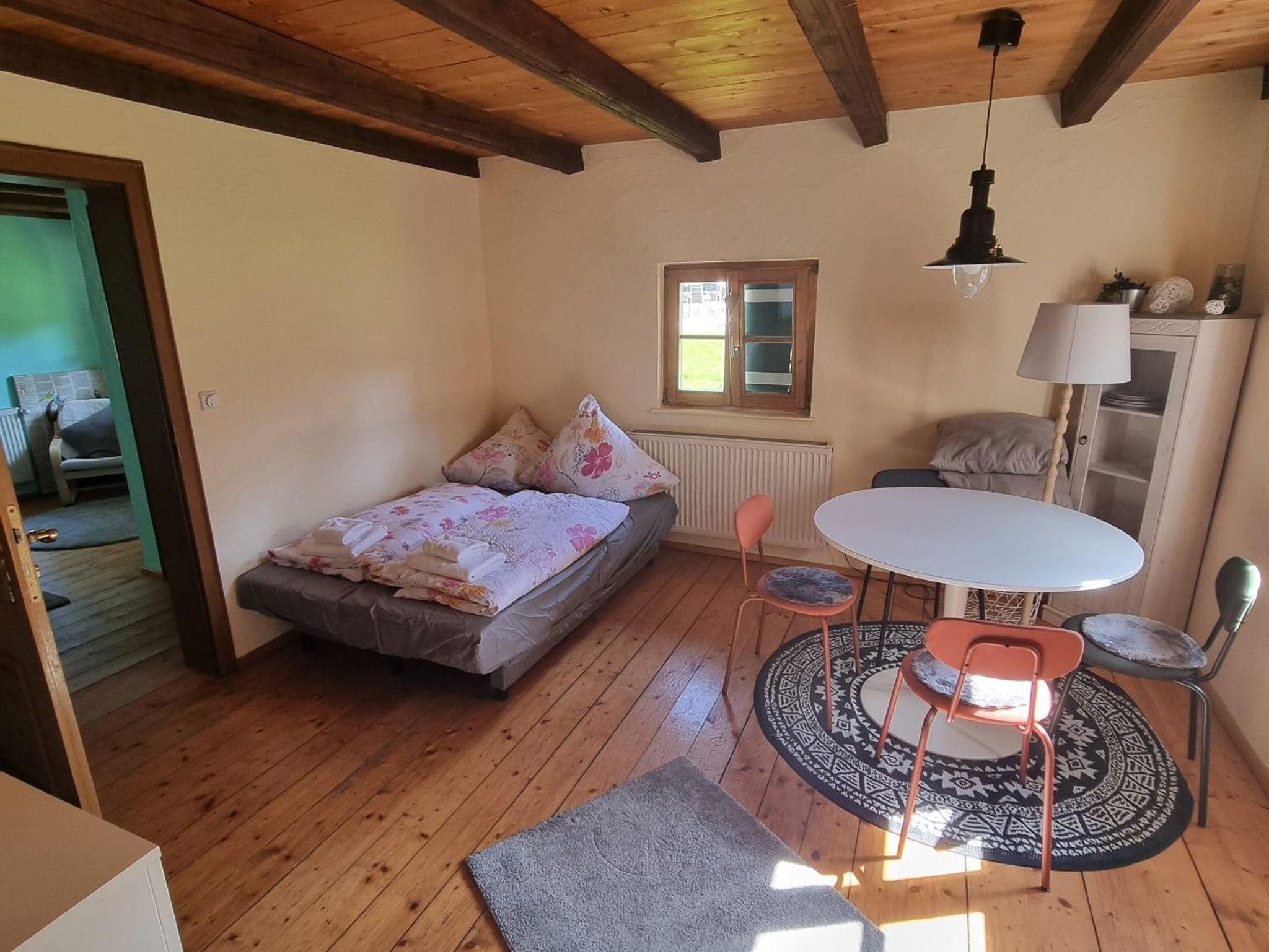 Willkommen in der Blockhütte der Niederalm! Diese Ferienwohnung bietet eine rustikale, gemütliche Atmosphäre in der Sie sich wohlfühlen werden. Genießen Sie die Ruhe und Erholung, die unsere Lage eingebettet in die Natur bietet. Ob beim Frühstück auf der Terrasse mit Blick auf Berge oder beim Entspannen nach einem erlebnisreichen Tag - hier finden Sie den perfekten Ort, um den Alltag hinter sich zu lassen. Es ist eine kleine Kochgelegenheit vorhanden. Aus Platzgründen ist keine Spüle eingebaut, aber das Geschirr kann im Bad gespült werden.