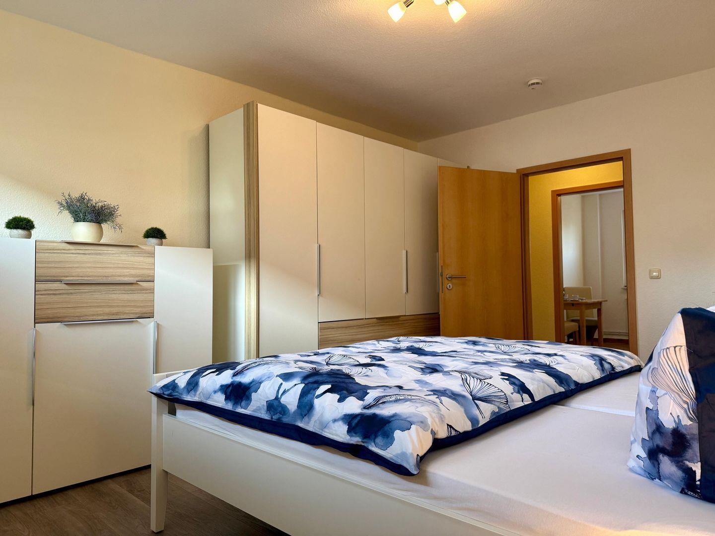 Die großzügig geschnittene Wohnung verfügt über zwei separate Schlafzimmer. Ausschließlich hochwertige Bettwäsche sowie Handtücher stehen für Sie bereit. Im lichtdurchfluteten Wohnzimmer erwartet Sie eine gemütliche Sofaecke, in der Sie nach einem erlebnisreichen Tag entspannen können. Ein TV, kostenloses WLAN und ein einladender Essbereich tragen zur Erholung und Unterhaltung während Ihres Aufenthaltes bei. Für Familien ist die Ferienwohnung ebenfalls bestens geeignet; entsprechende Annehmlichkeiten wie ein Esstisch, eine Garderobe und Sichtschutz an allen Fenstern bieten ein hohes Maß an Alltagstauglichkeit und Privatsphäre.