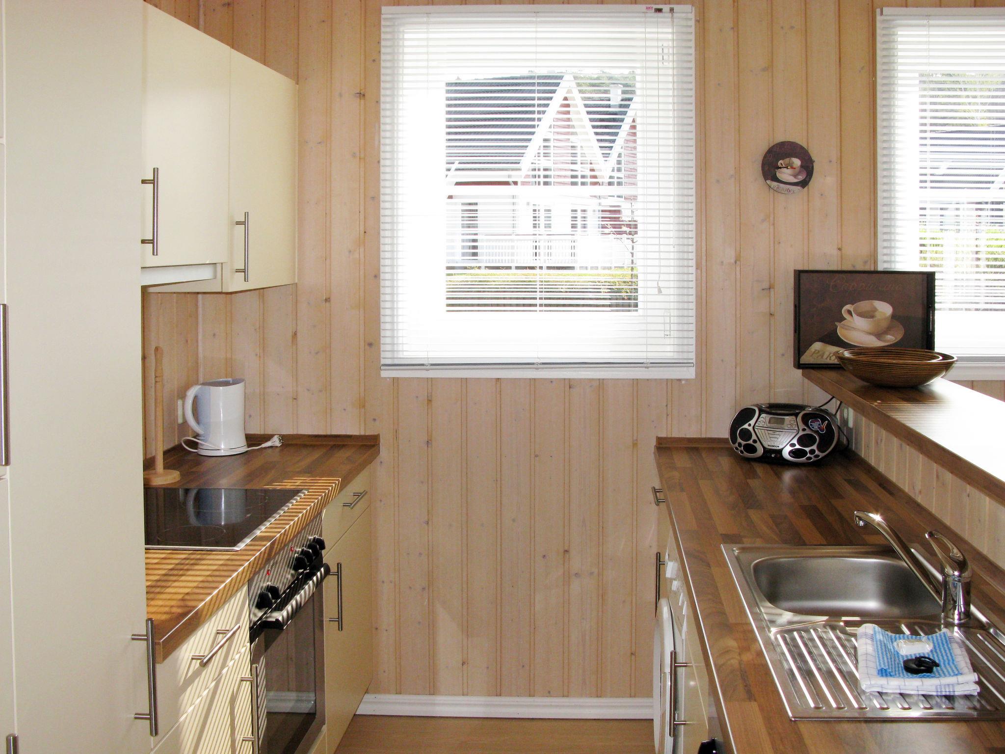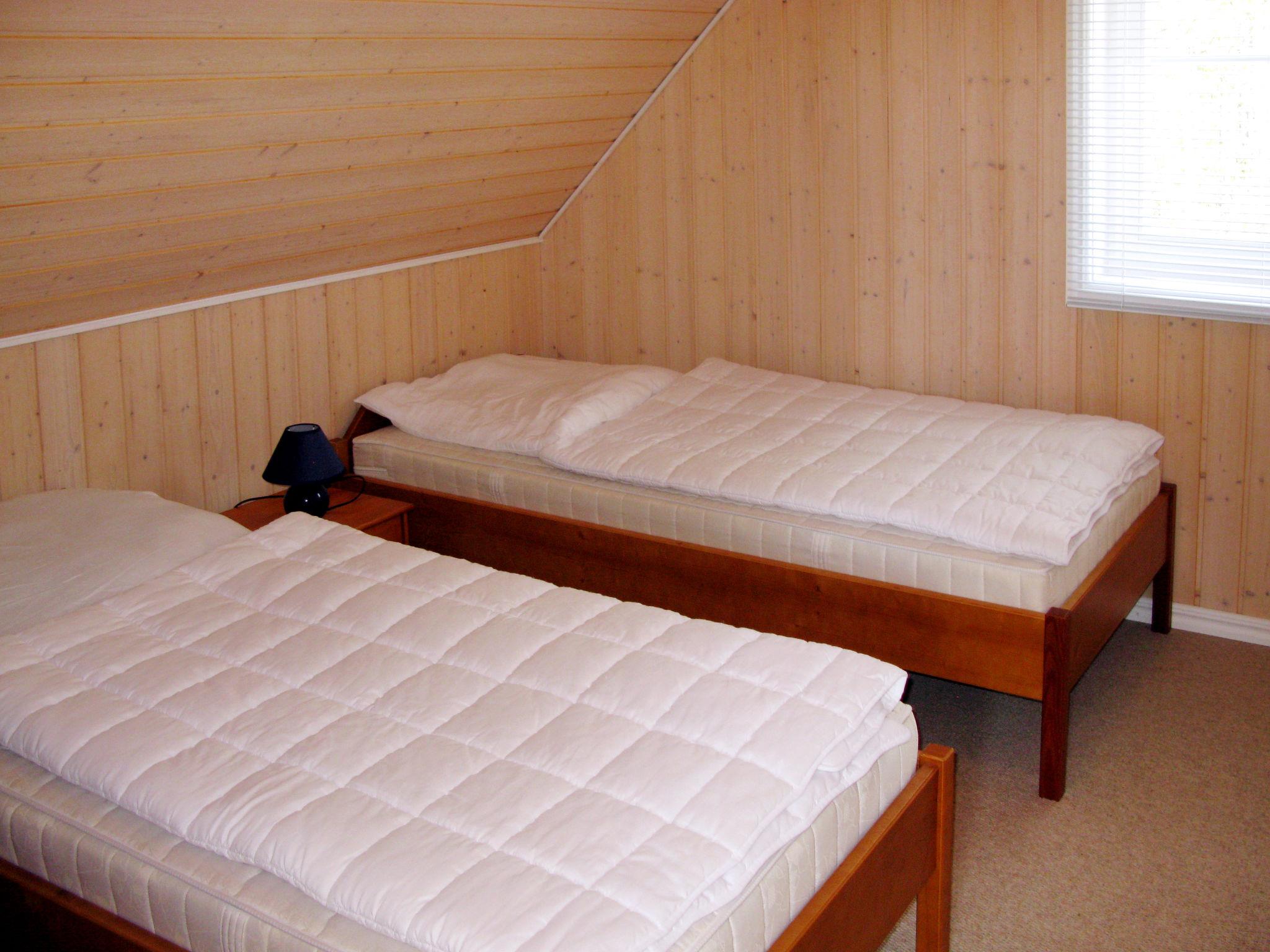 "Bornholm", 4-room terraced house 103 m2 on 2 levels. Object suitable for 6 adults. Tasteful and wooden furniture furnishings: upper floor: (exterior staircase) living/dining room with Scandinavian wood stove, cable TV, hi-fi system and DVD. Exit to the terrace. 1 double bedroom. Open kitchen (oven, dishwasher, 4 ceramic glass hob hotplates, toaster, kettle, microwave, electric coffee machine). Shower/WC, hydro massage bath, Sauna. 2nd upper floor: 1 double bedroom with sloping ceilings. 1 room with sloping ceilings with 2 beds. Shower/WC. Electric heating, underfloor heating. Carpet. Terrace. Terrace furniture, box-room. Facilities: washing machine, children's high chair, baby cot (extra). Parking at the house. Please note: non-smoking house. Maximum 2 pets/ dogs allowed. Smoke alarm. On the ground floor: separate holiday flat DE9007.603.4.