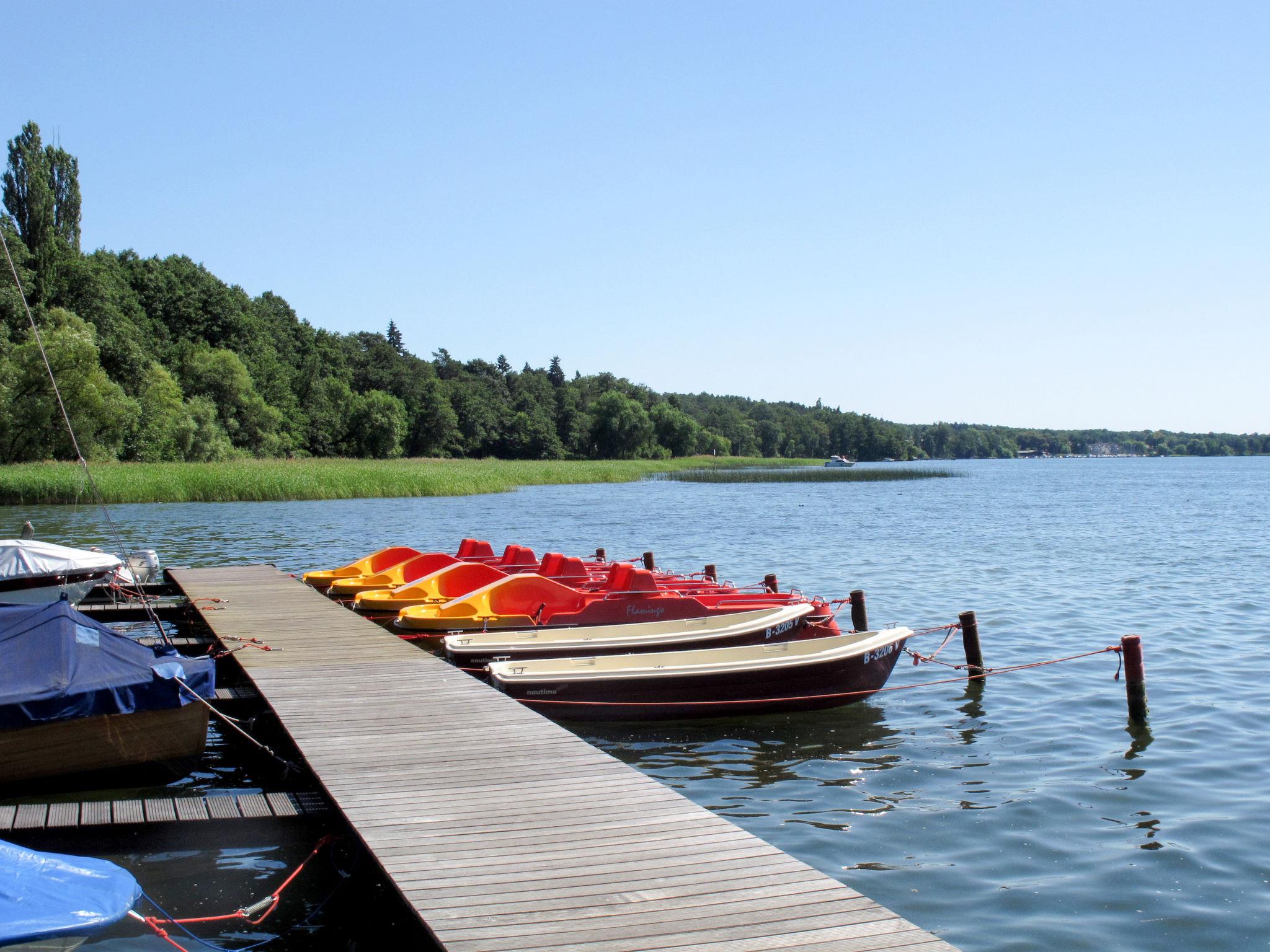 Resort "Schlosspark Bad Saarow". 138 houses in the resort. 4 km from the centre of Bad Saarow, on the outskirts, 10 km from the centre of Fürstenwalde, 75 km from the centre of Berlin, in an elevated position, 200 m from the lake, direct access to the beach. For shared use: property with lawn for sunbathing. Children's playground. In the complex: reception, bistro, internet access, bicycle rental. (extra). Central parking spaces. Supermarket 800 m, bus stop "Theresienhof, Bad Saarow" 100 m, grass beach 200 m. The photo is just an example. Internet access only in the reception area.