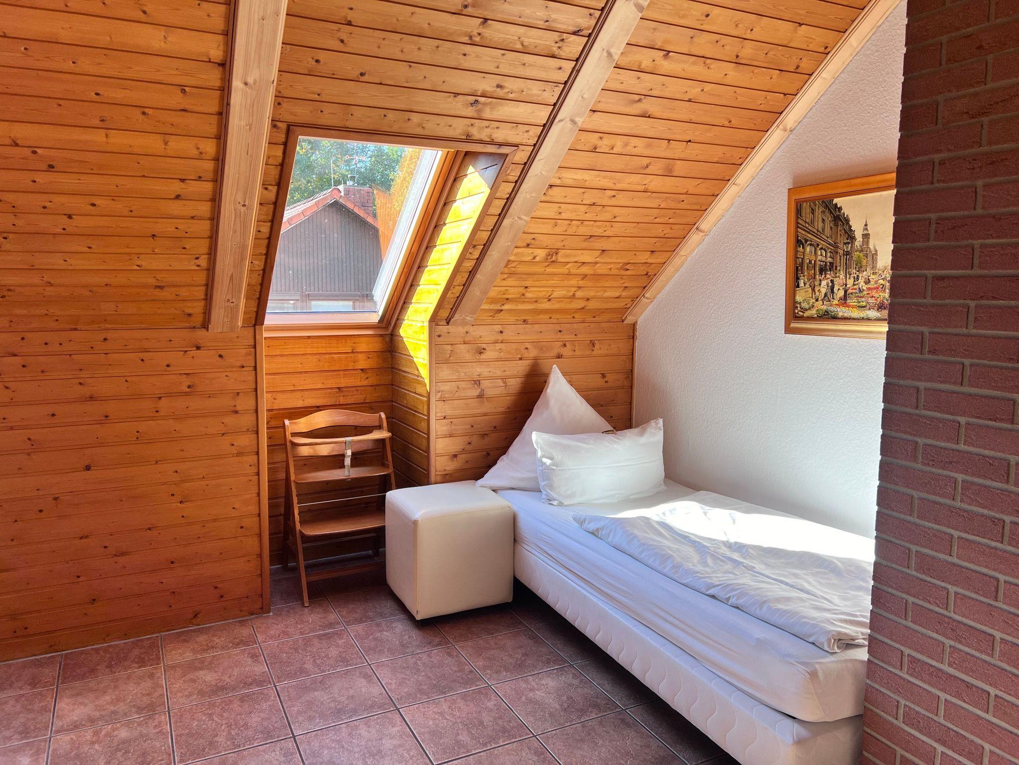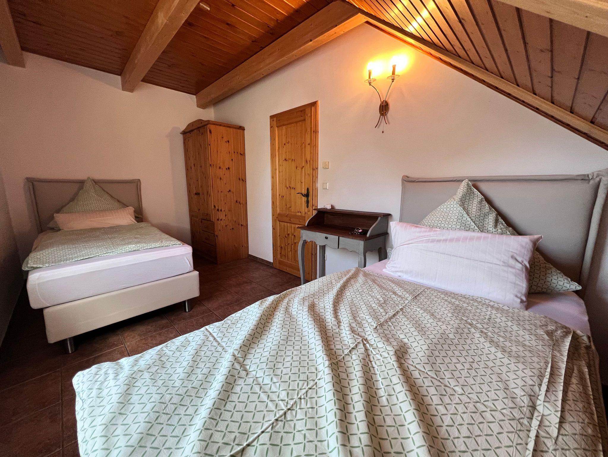 Oben unter dem charmanten Holzgiebel findest du zwei liebevoll eingerichtete Schlafzimmer mit komfortablen Betten. Zwei Badezimmer (eins auf jeder Etage) sorgen für extra Komfort ideal für Familien oder mehrere Gäste.