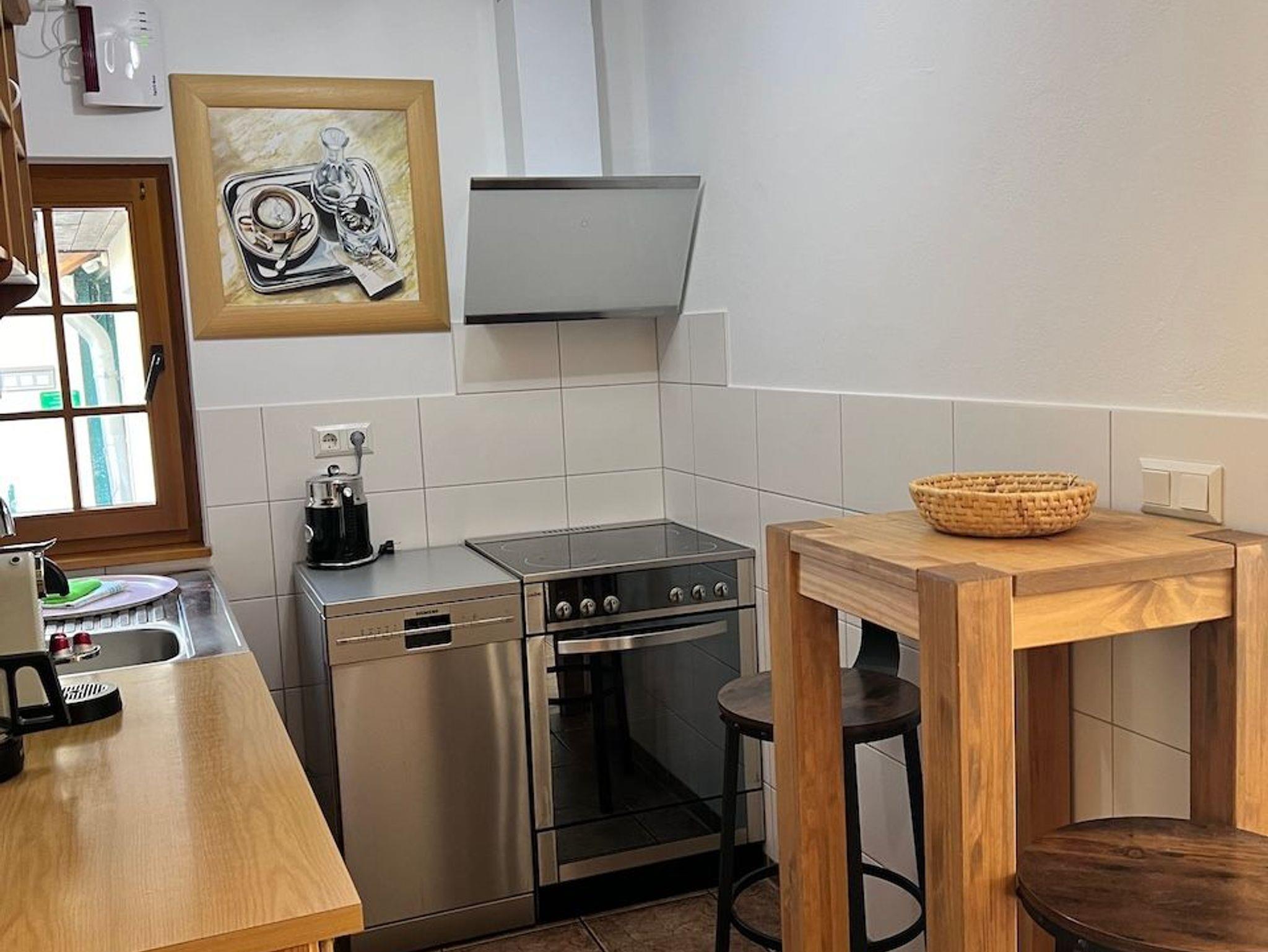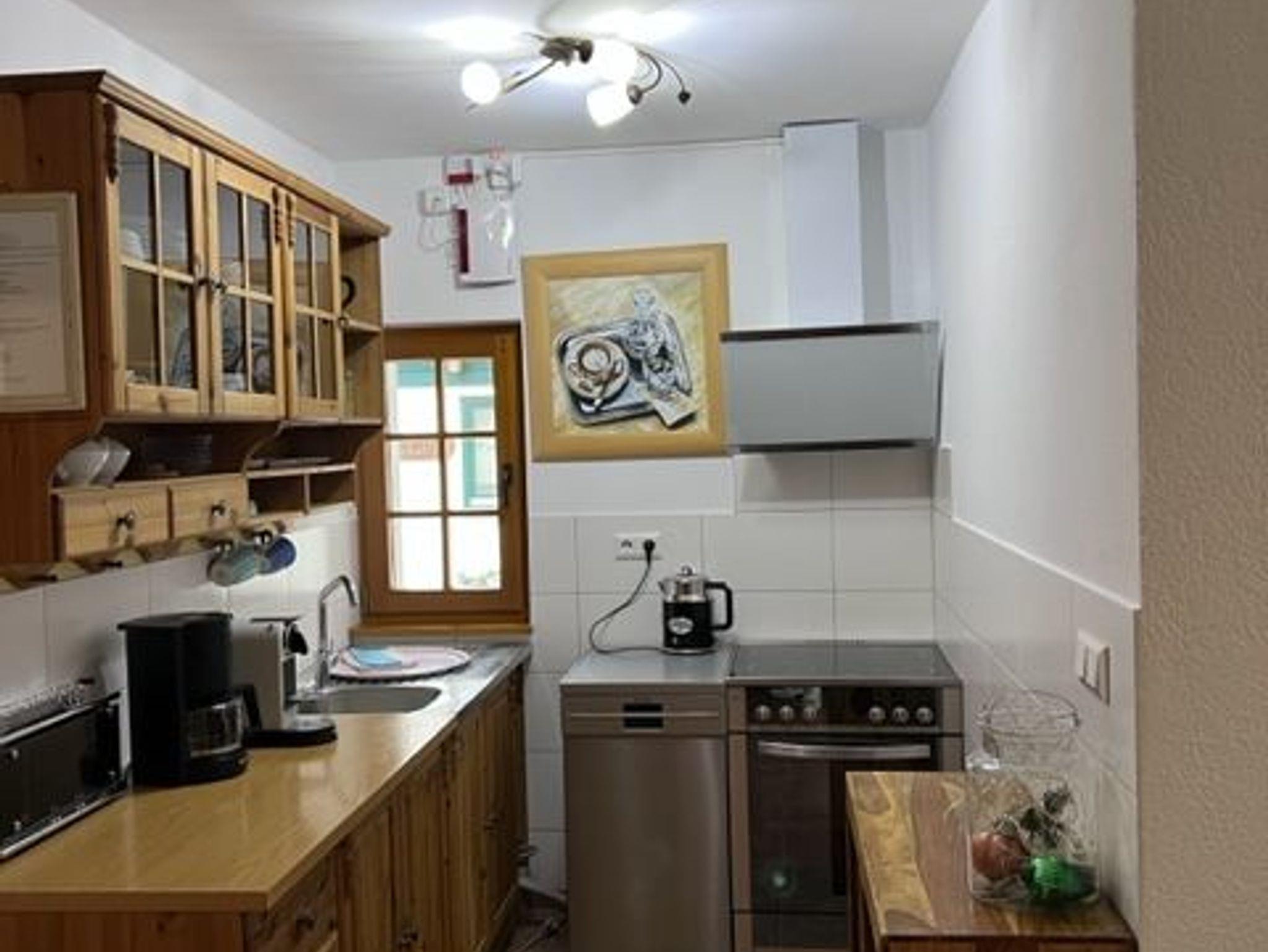 Die voll ausgestattete Küche im Landhausstil bietet alles, was du brauchst, um dich wie zuhause zu fühlen.