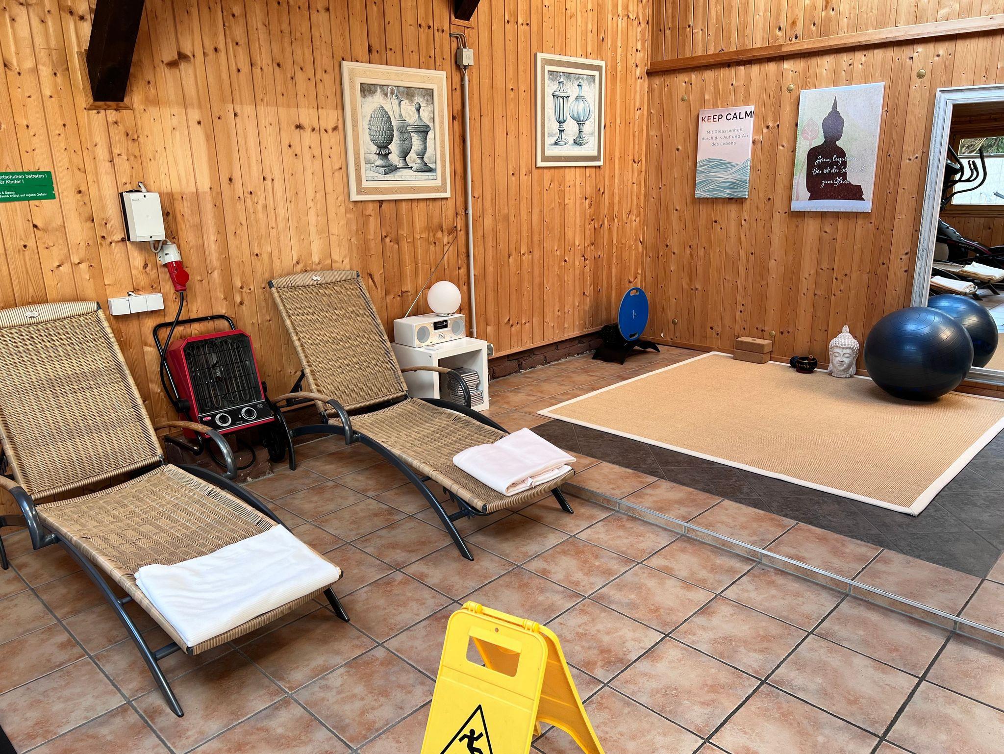 Zusätzlich kannst du unseren liebevoll gestalteten Spa- und Sportraum mit Sauna für Dich buchen ideal zum Entspannen nach einem erlebnisreichen Tag.