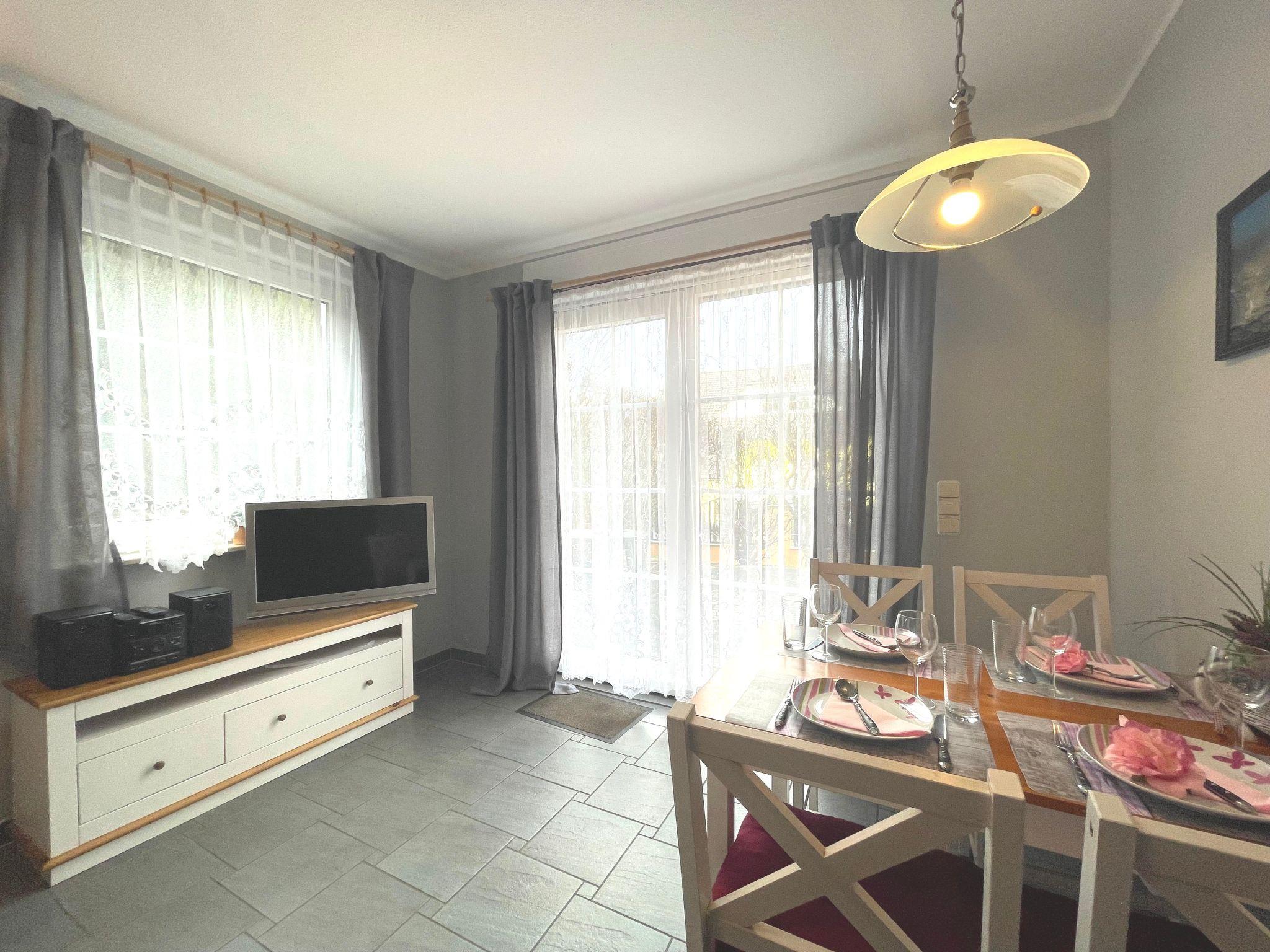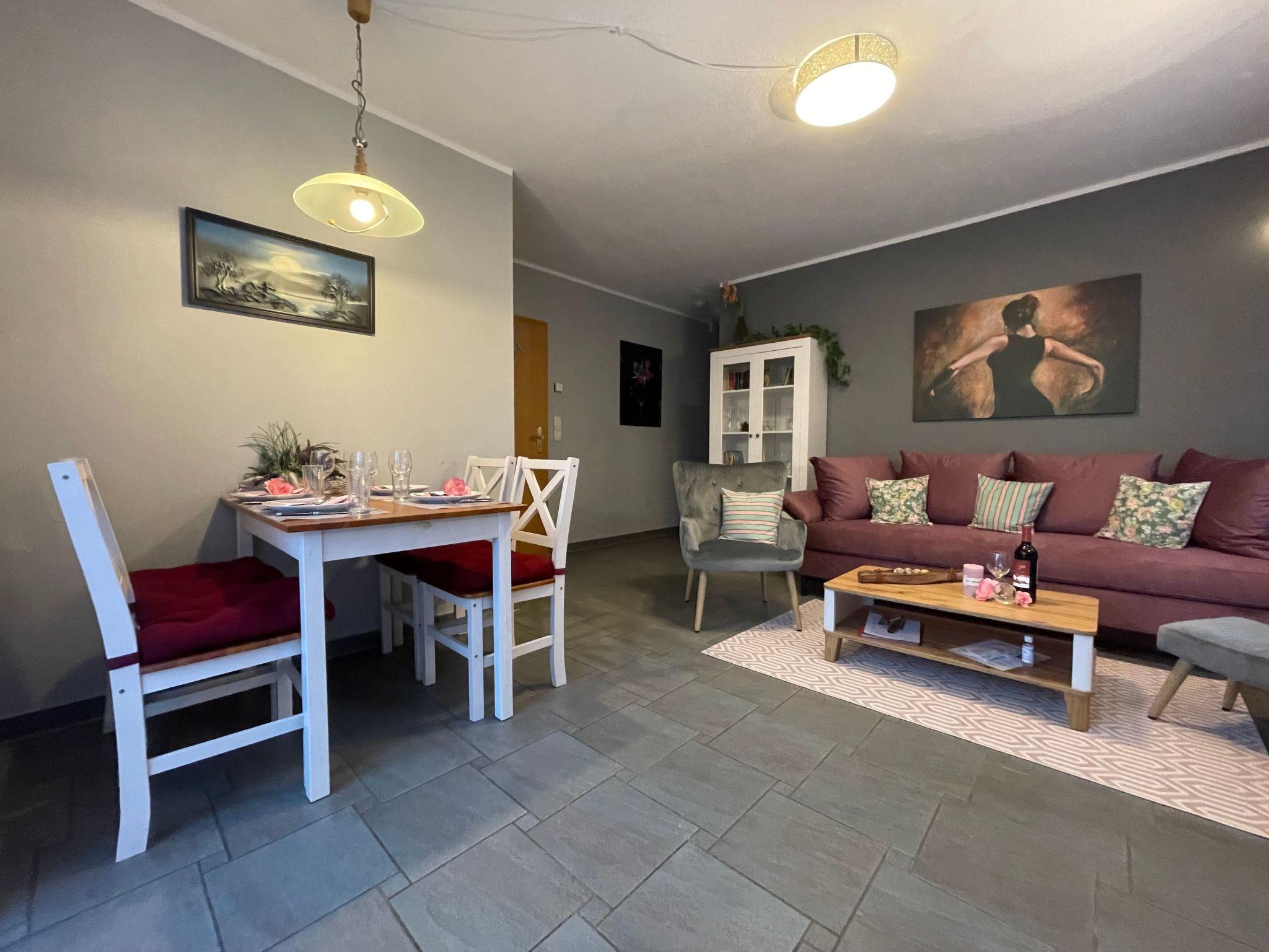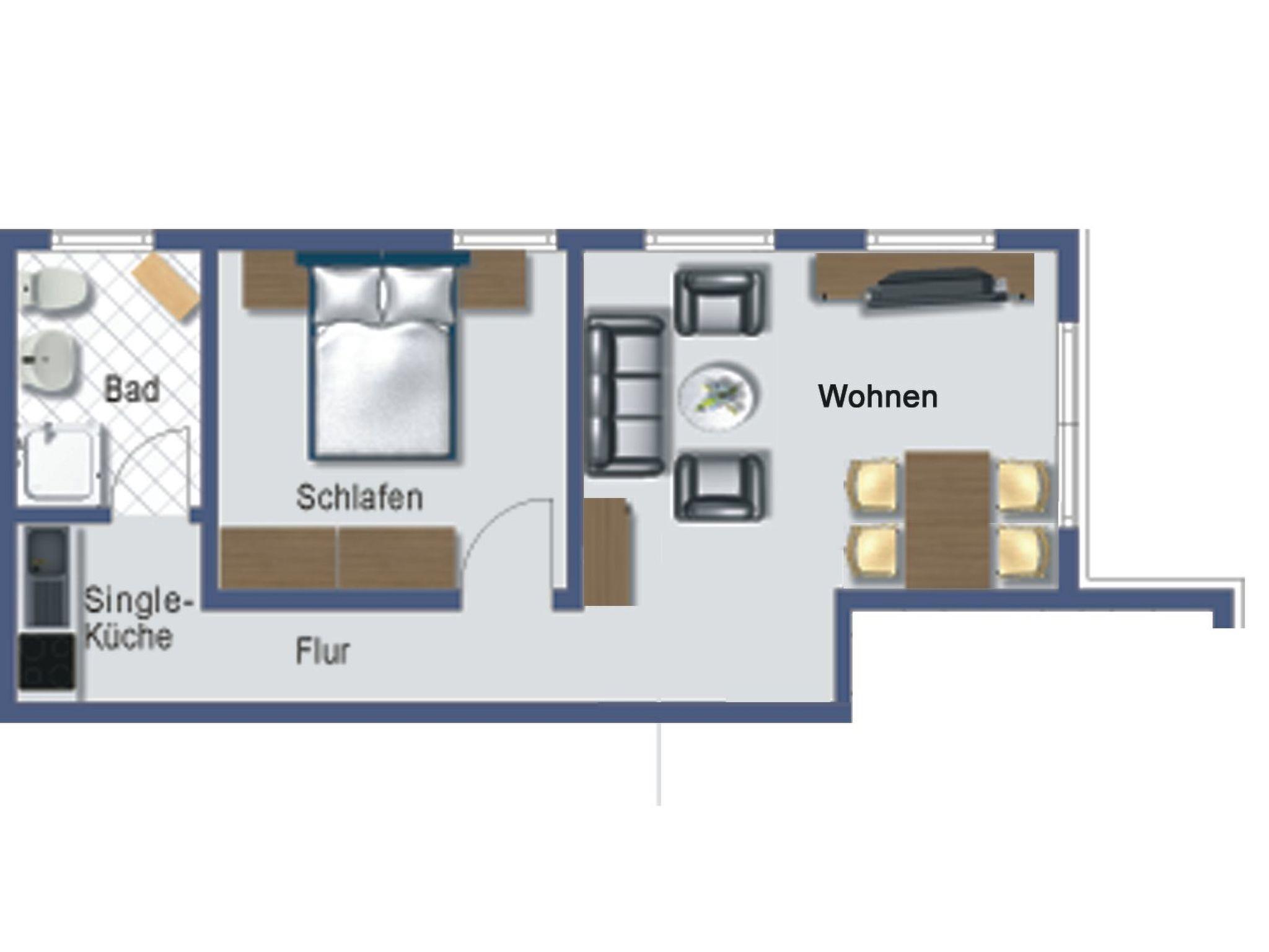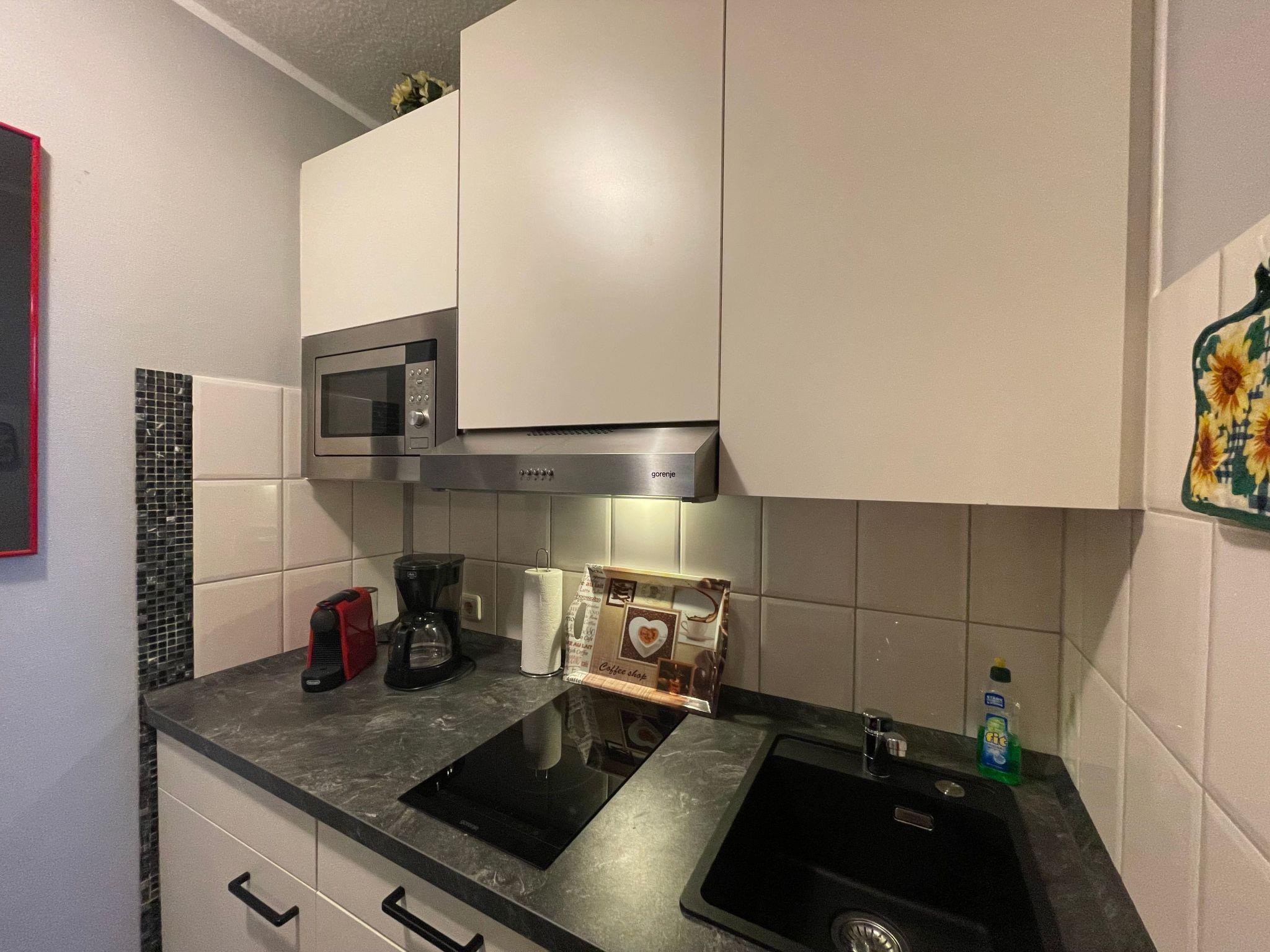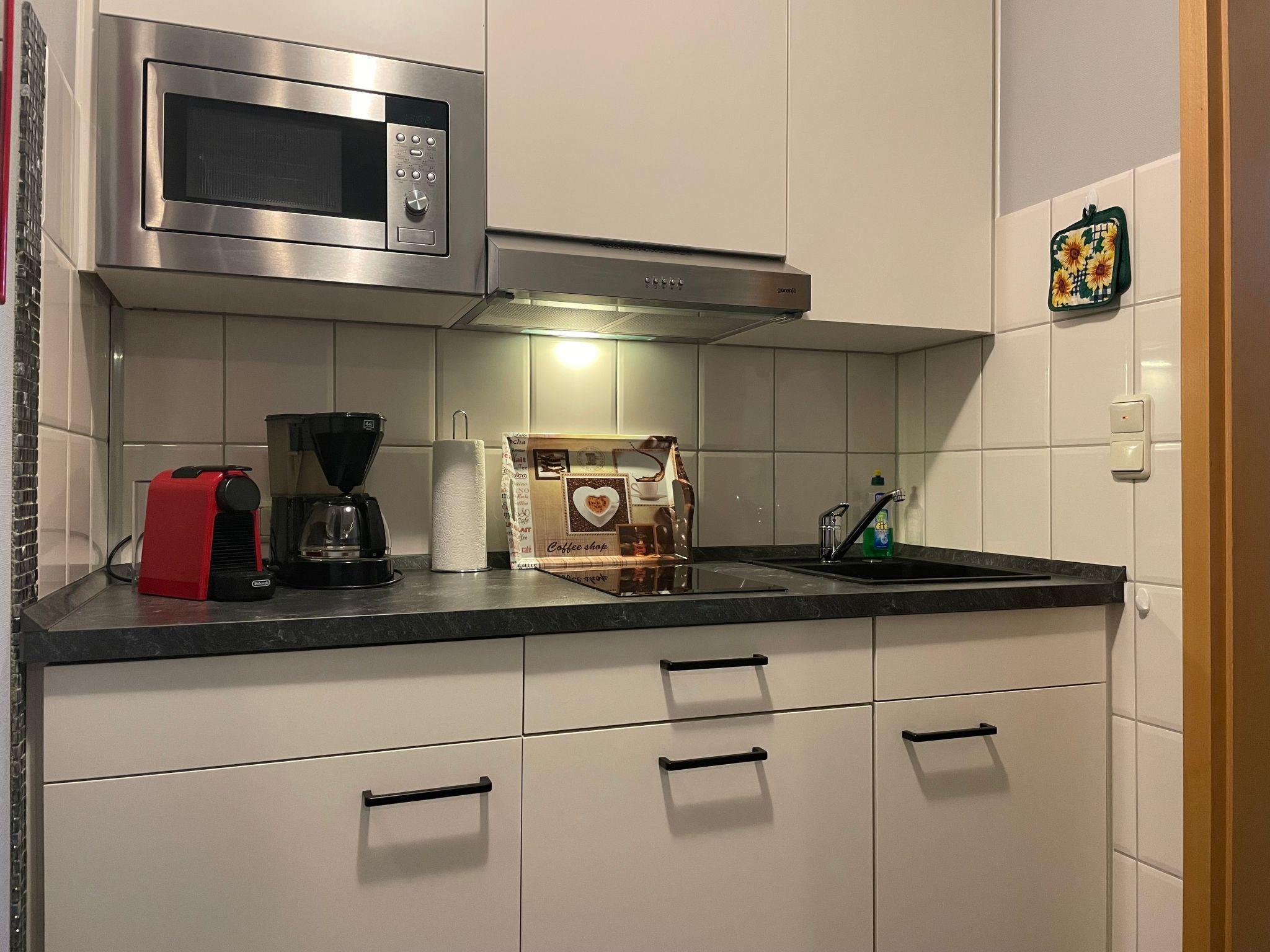 The flat on the ground floor has a bedroom that can be darkened for your undisturbed nights and a bathroom with shower that leaves nothing to be desired. Thanks to the underfloor heating, which is available throughout the flat, there is always a pleasant warmth. The kitchen equipment with a two-ring hob, a filter coffee machine, a capsule coffee machine and a dishwasher offers everything you need to prepare your favourite dishes.