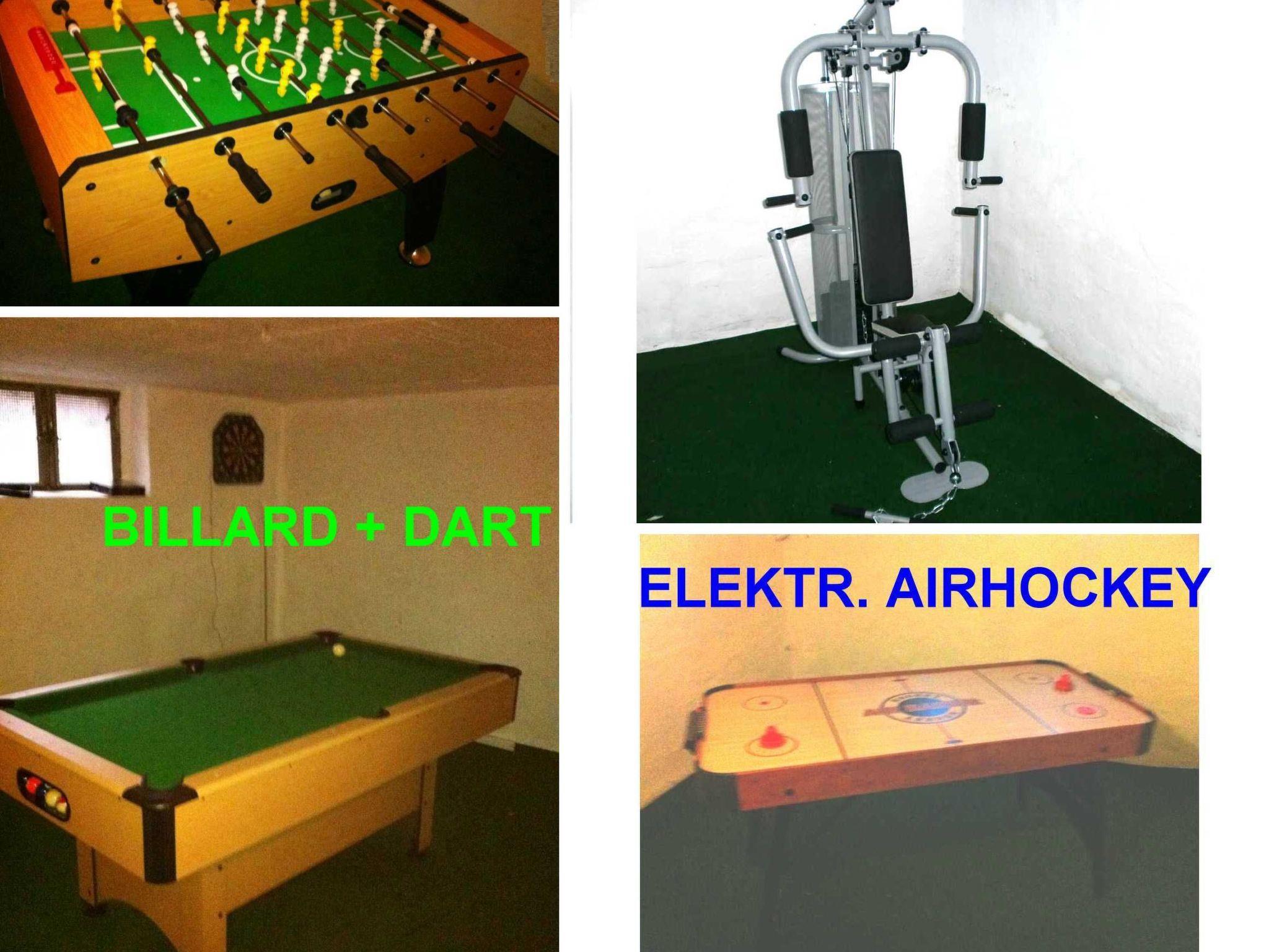 Simple, solid furnishings. Play facilities in the basement table football billiards fitness and air hockey and in the house one of the four flats is permanently inhabited by another owner who has nothing to do with the letting.