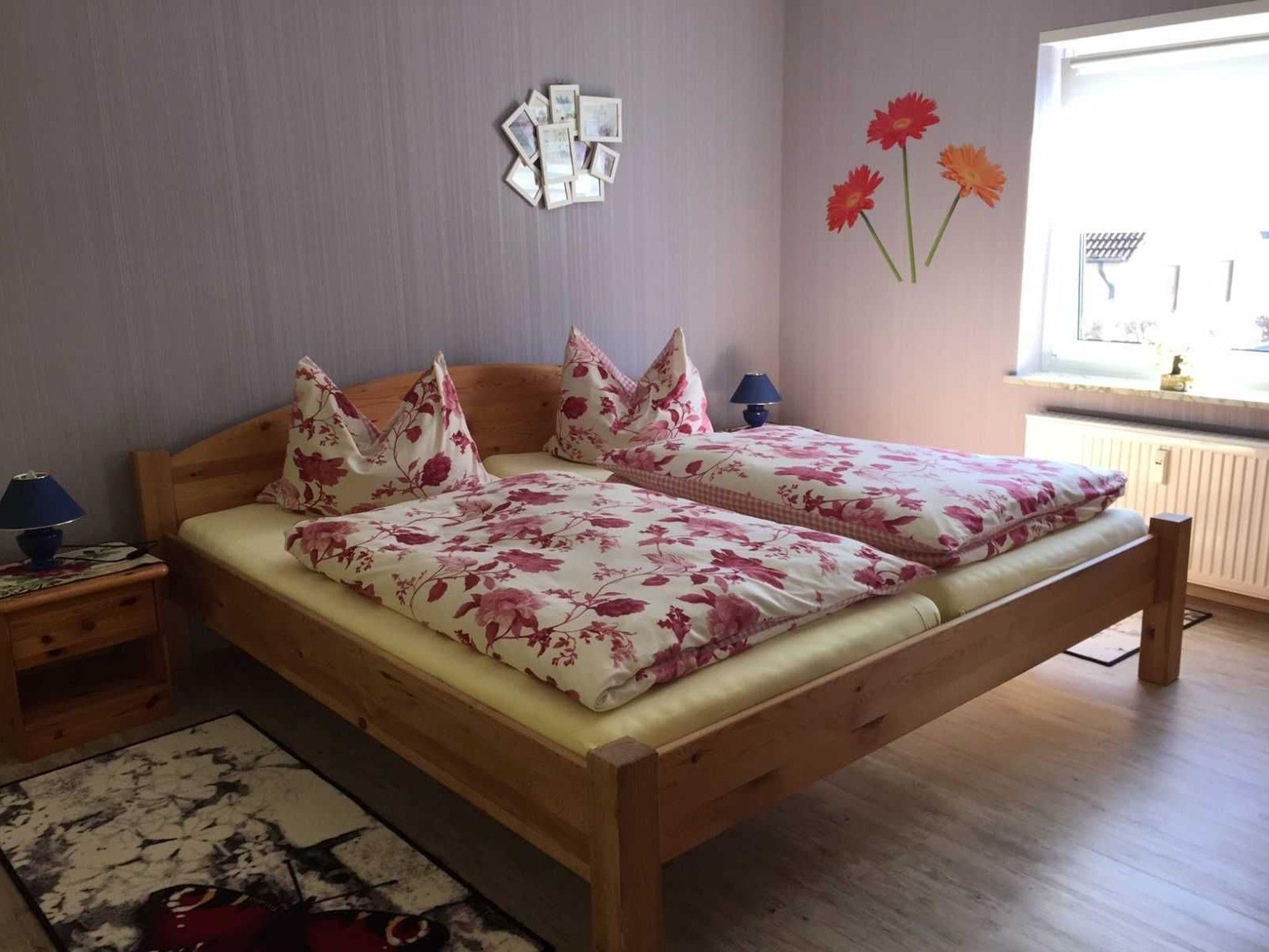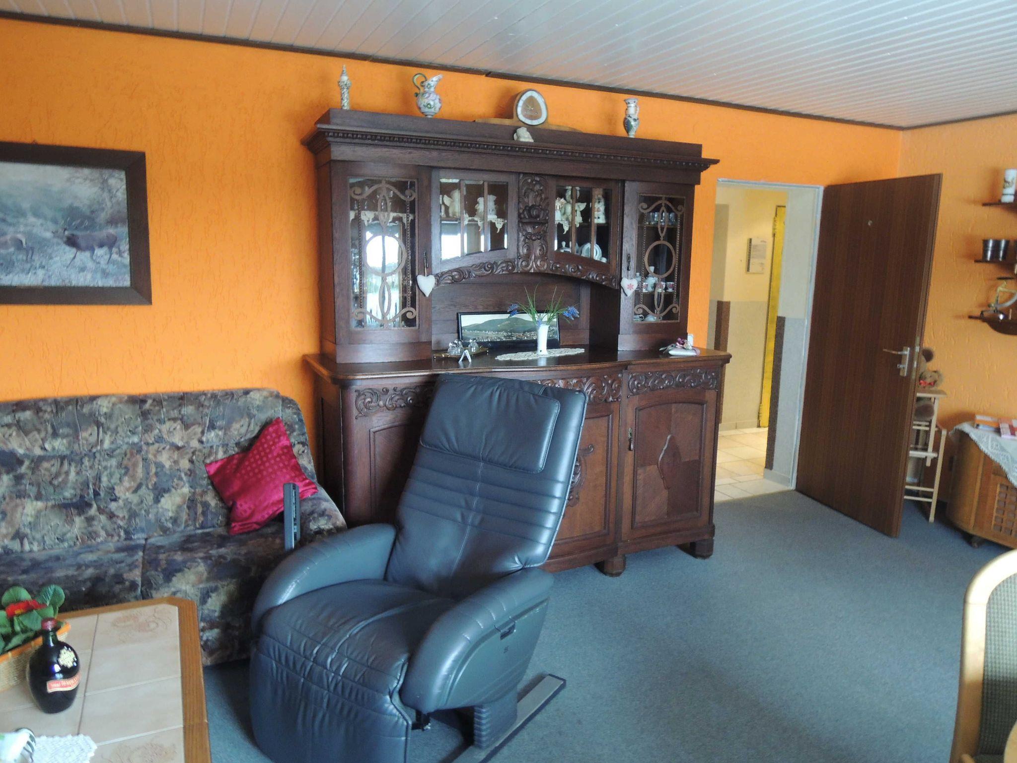 Die familiäre eingerichtete Ferienwohnung ist ebenerdig von außen erreichbar. Die Ferienwohnung verfügt über ein gemütliches, großzügiges Wohnzimmer mit Couch, Massagesessel und Esstisch. Auf Anfrage kann ein Kindereisebett zur Verfügung gestellt werden. Vom Wohnzimmer aus haben Sie einen fantastischen Blick auf das Pfaffenholz.