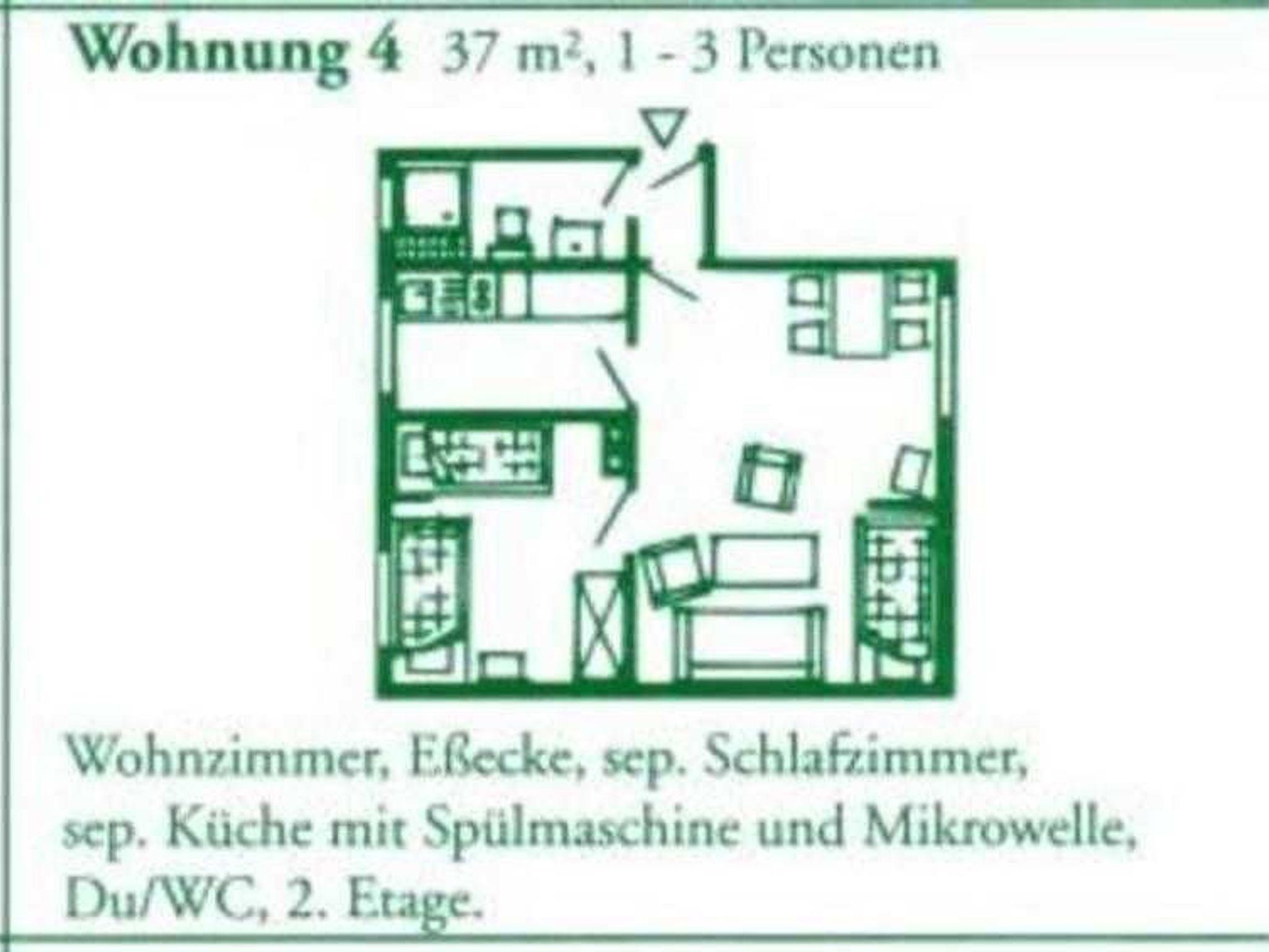 Die Wohnung liegt in der 2.Etage. Die Wohnung besteht aus Wohnraum, Schlafraum, Küche, Flur und Du/WC. Sie ist ausgestattet mit Couchgarnitur (Schlafcouch) einem Eßtisch mit 4 Stühlen, Radio und Kabel-TV. Die Küche ist ausgestattet mit 4 Kochplatten, Mikrowelle, Spülmaschine, Kühlschrank,Toaster, Kaffeemaschine und Geschirr und Bestecke für mindestens 6 Personen.